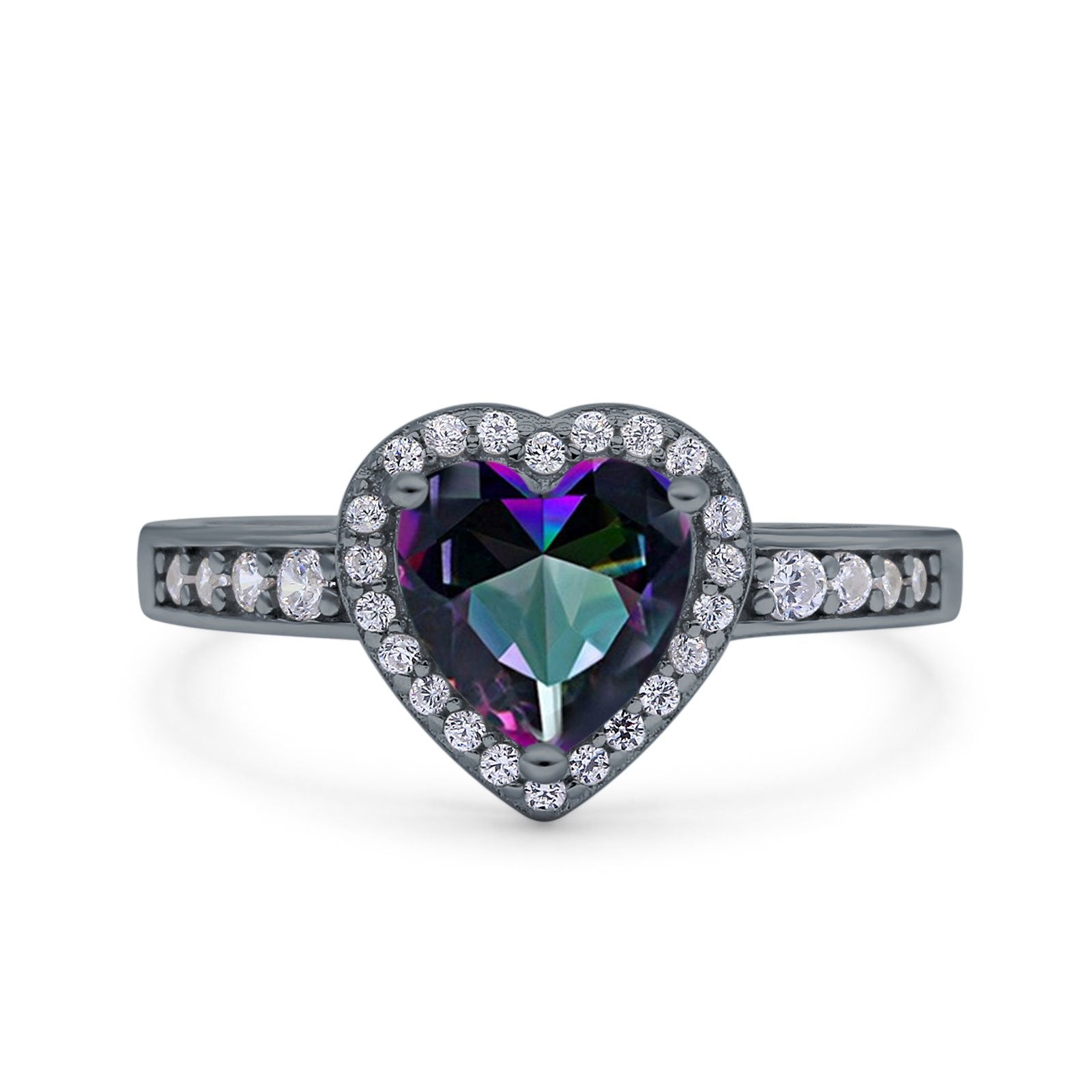 CZ & Blue Sapphire CZ Black Tone Silver
