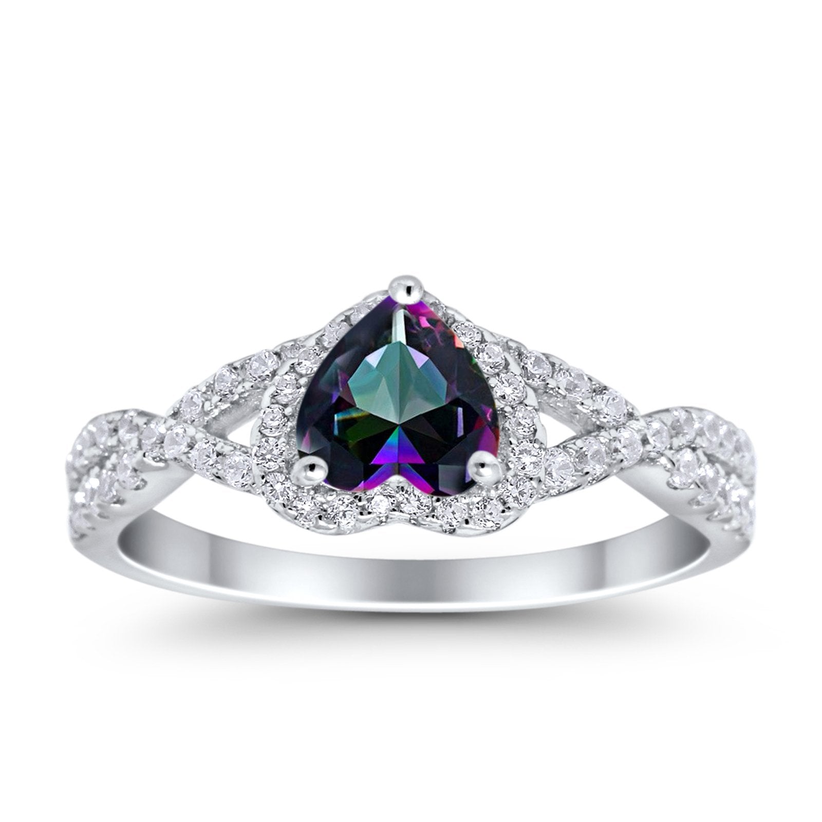 CZ & Blue Sapphire CZ Rose Tone Silver