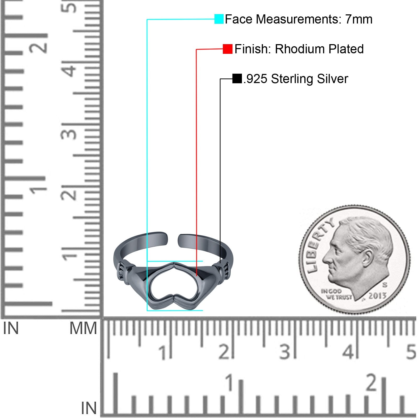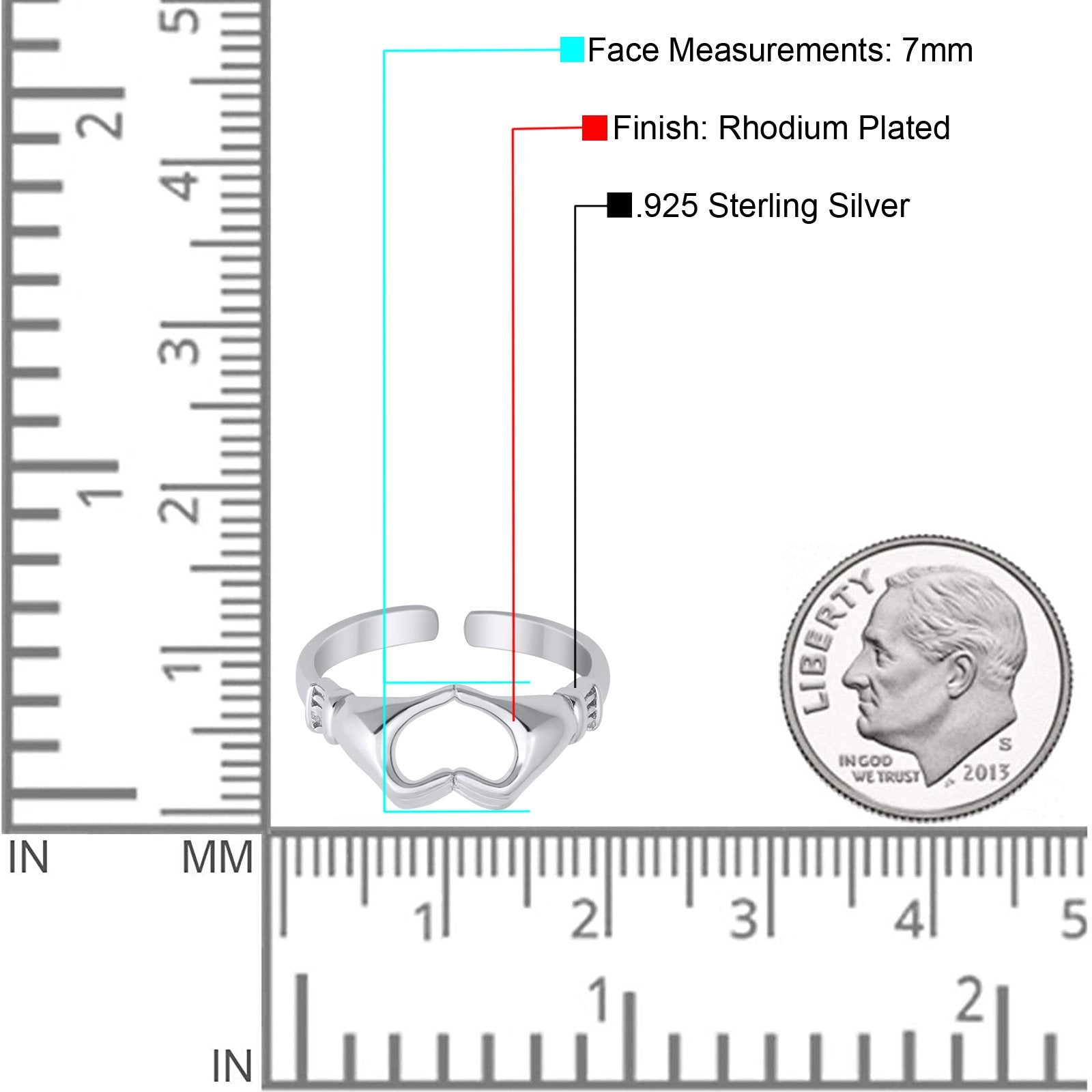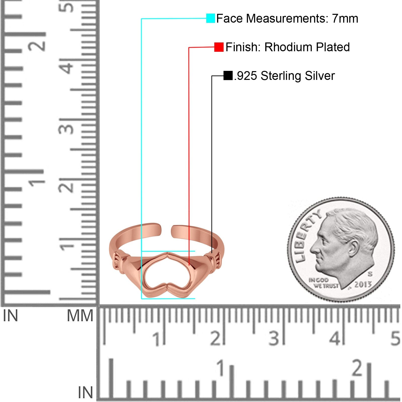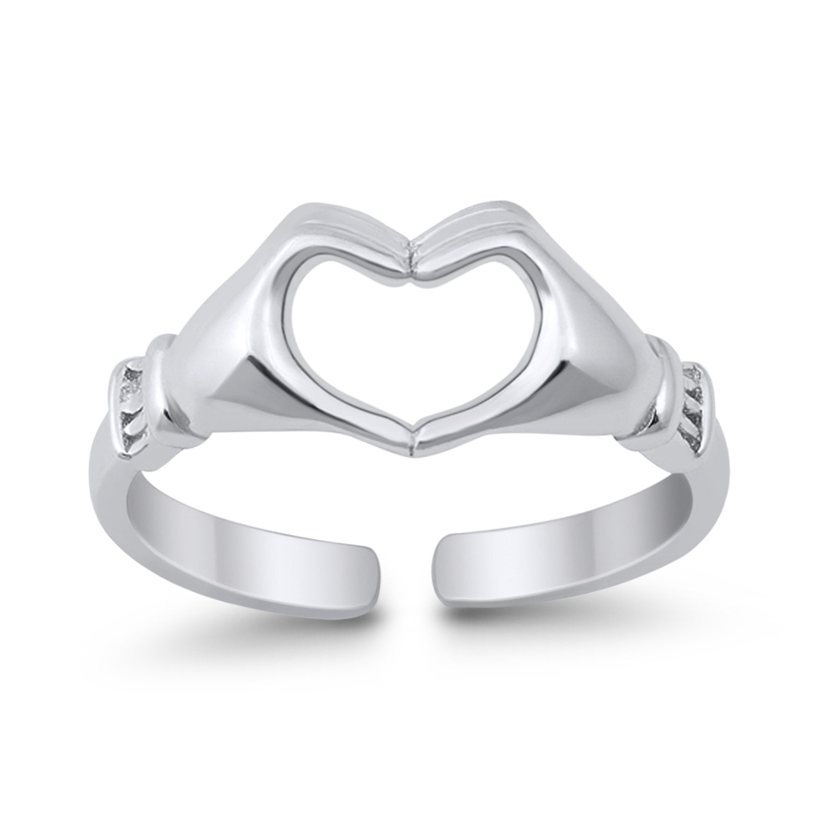 Hearts Hands Toe Ring Band 925 Sterling Silver for Women (7mm)