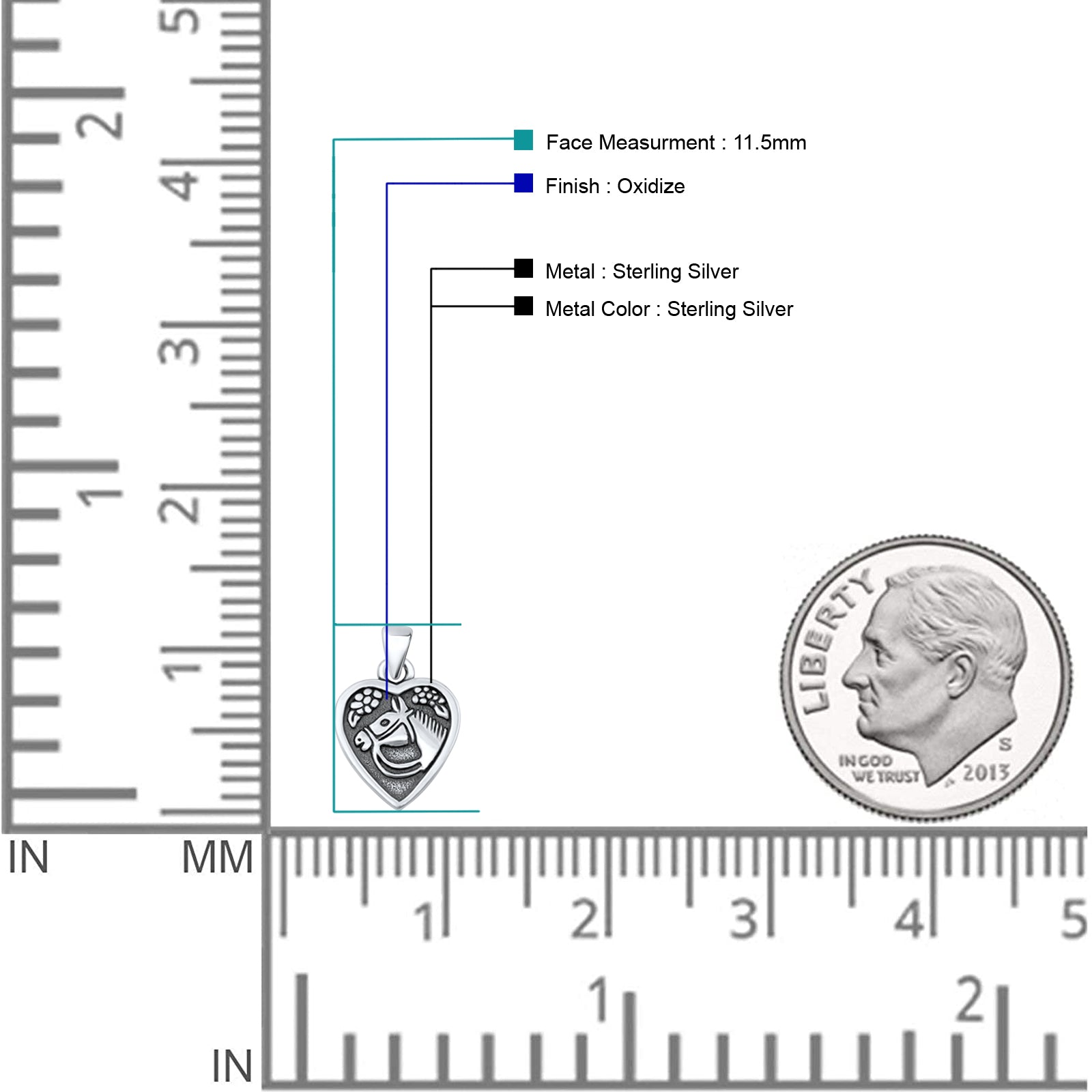Horse Heart Pendant Bead Chain Necklace Oxidized 925 Sterling Silver