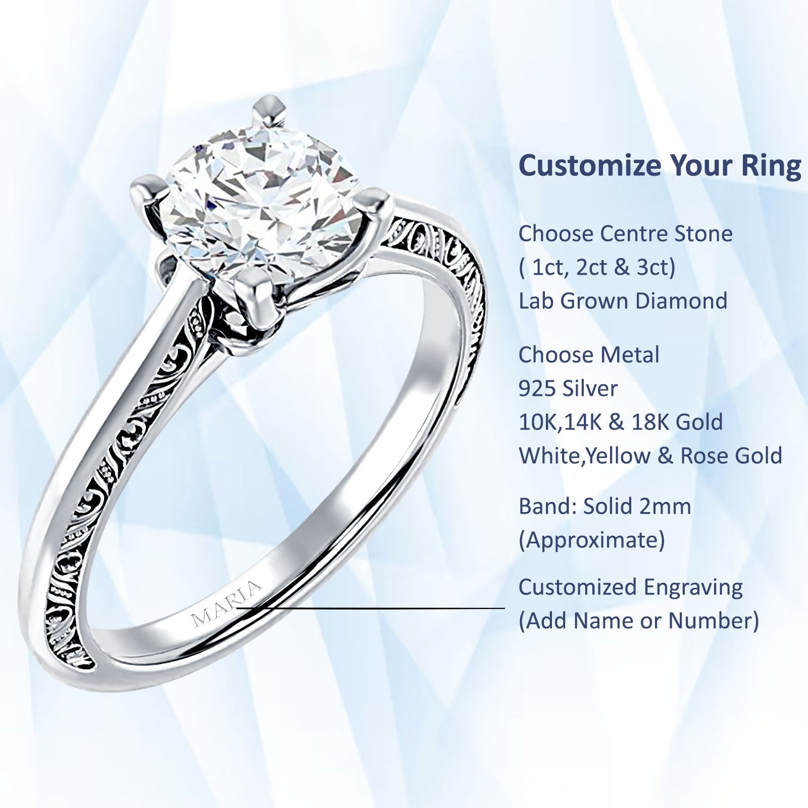 This lab grown diamond ring is available in three different carat weights and also comes in a choice of various metal types.(10K Gold, 14K Gold & 18K Gold)