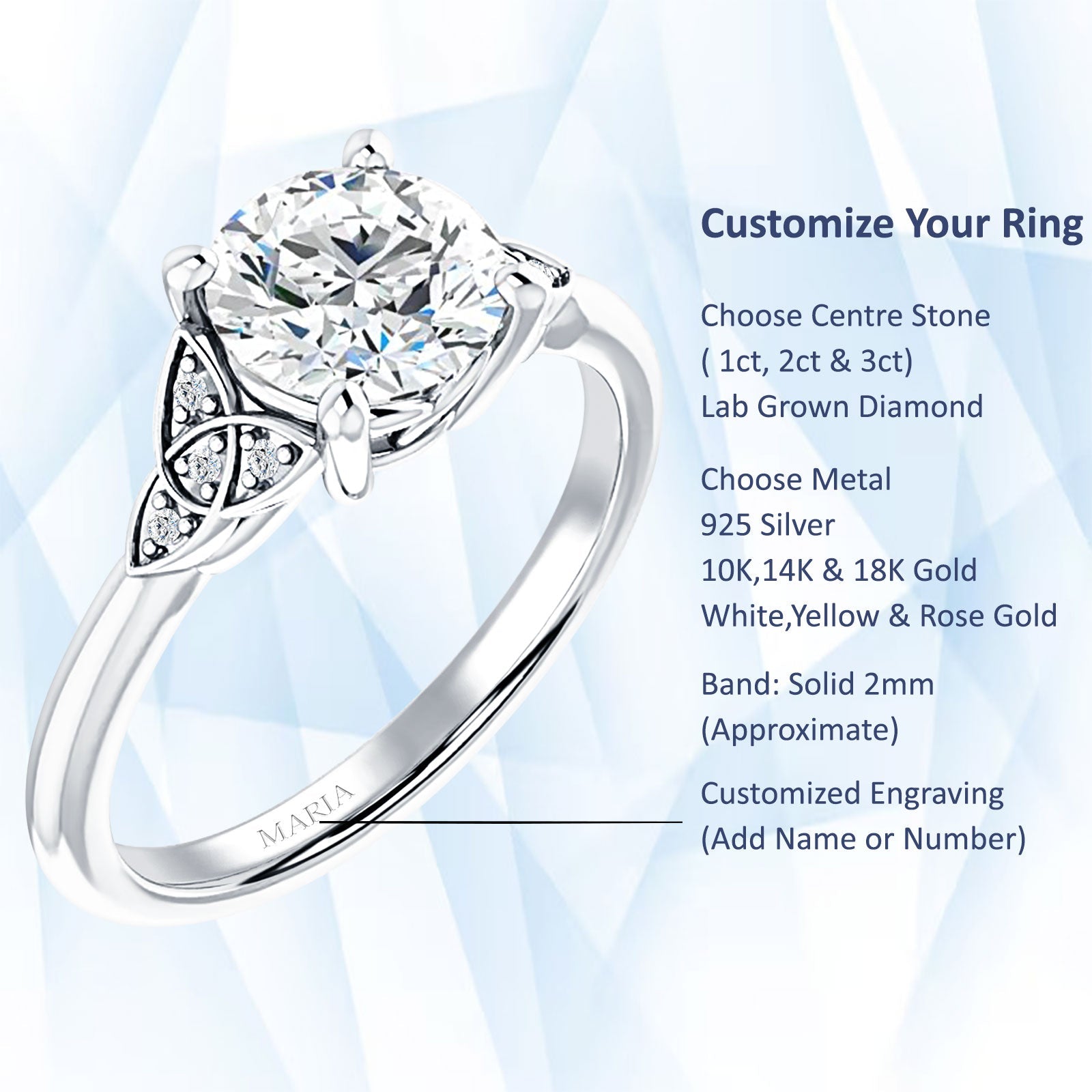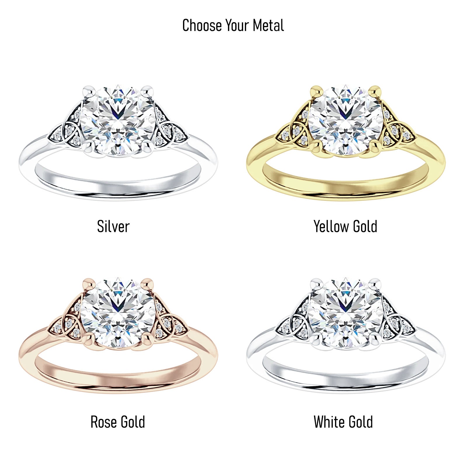 This lab grown diamond ring is available in three different carat weights and also comes in a choice of various metal types.(Tarnish Resistant Sterling Silver, 18K Gold & 10K Gold)