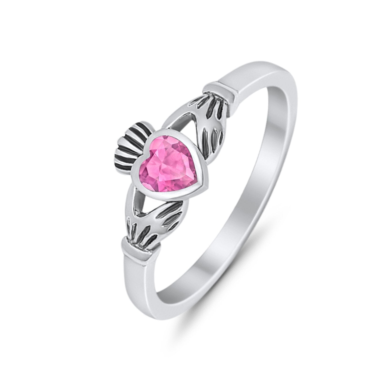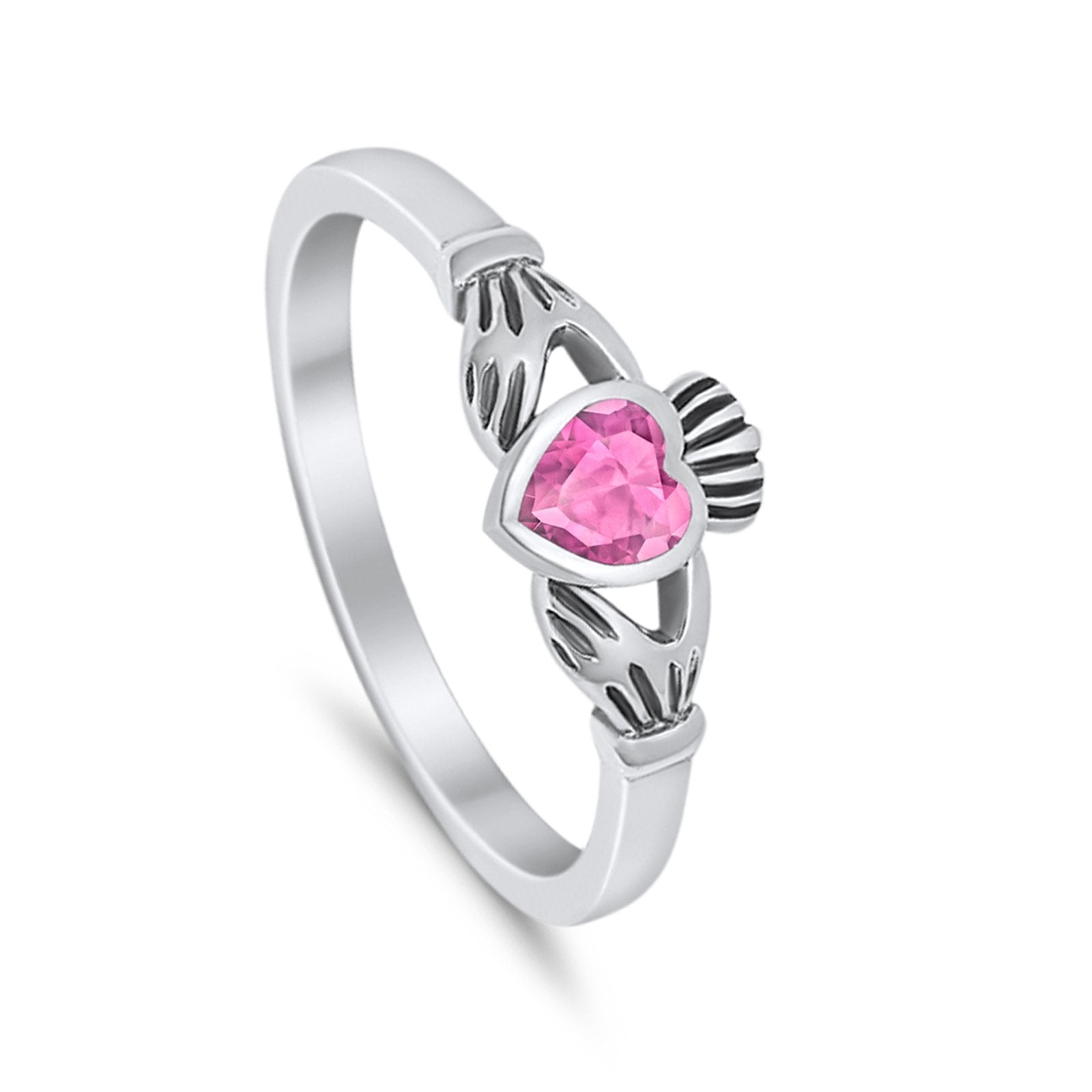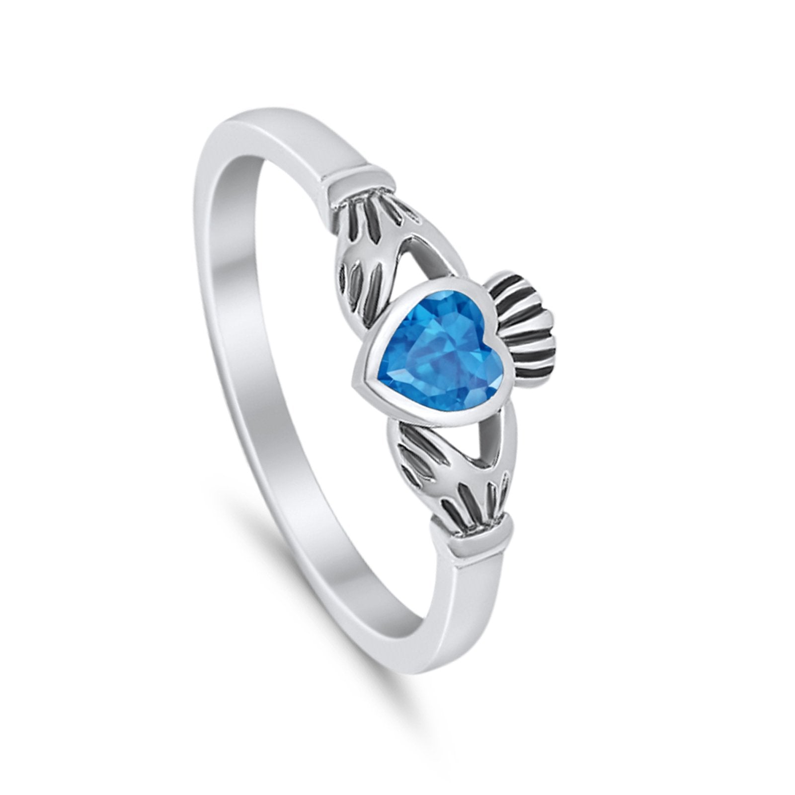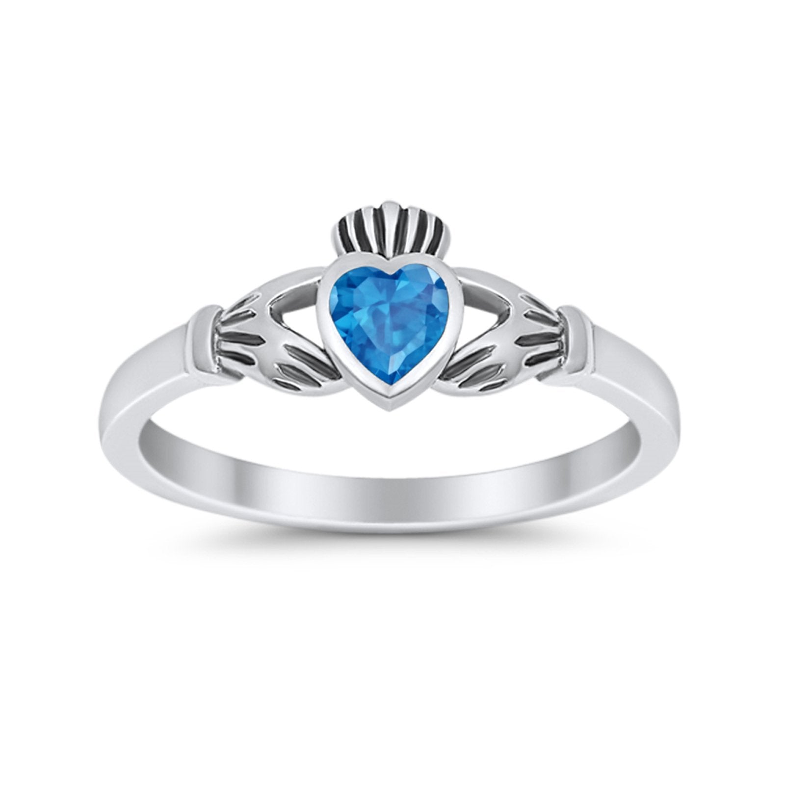 Irish Claddagh Heart Promise Ring Simulated Cubic Zirconia 925 Sterling Silver