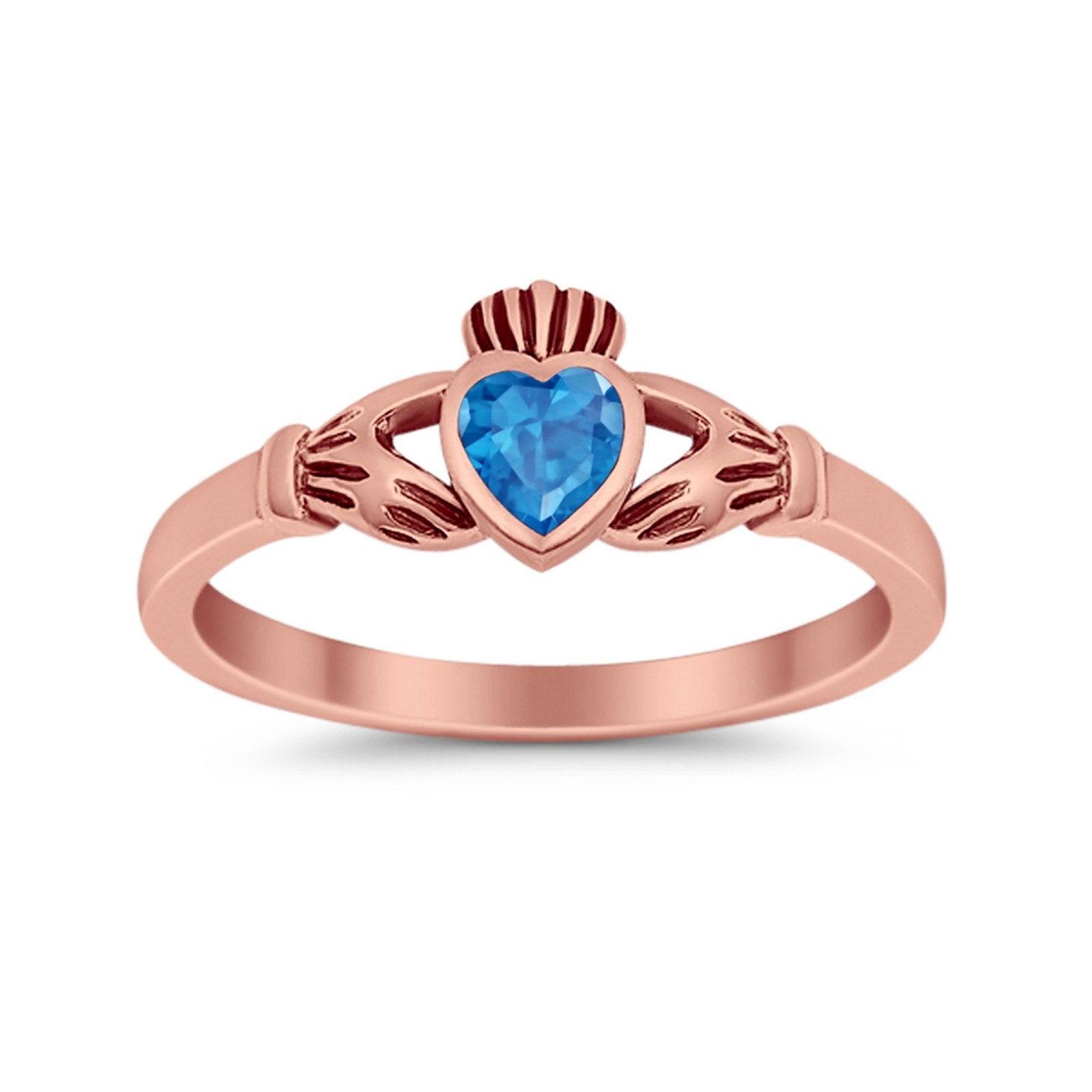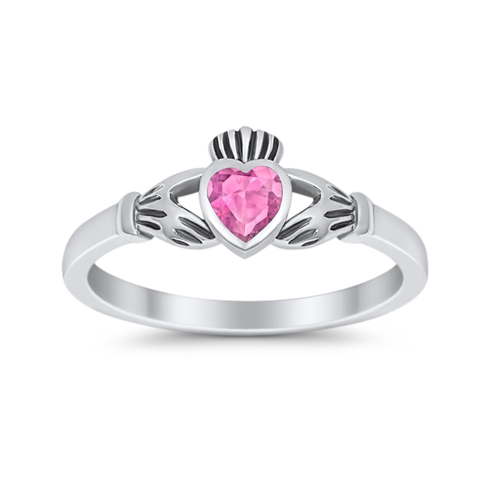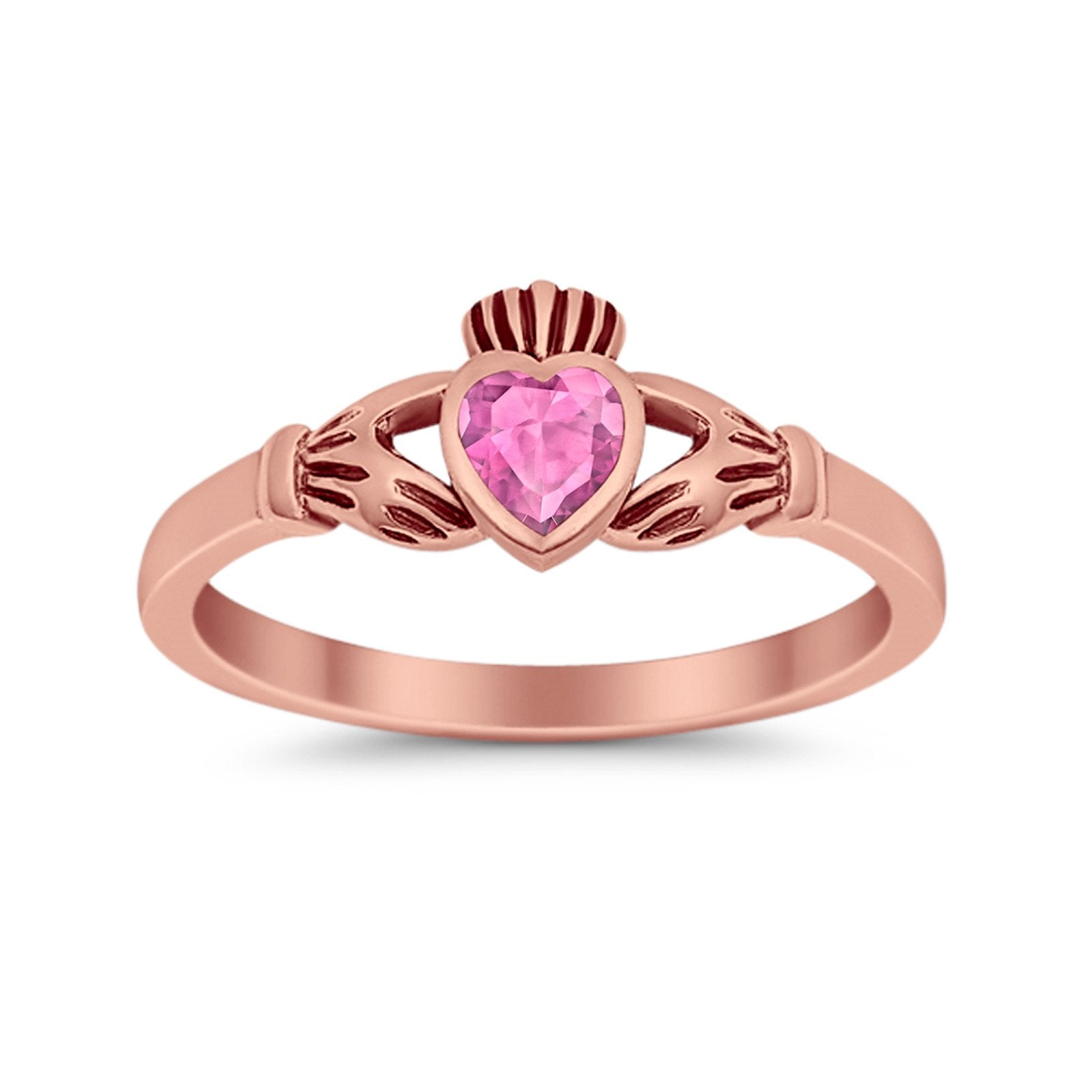 Irish Claddagh Heart Promise Ring Simulated Cubic Zirconia 925 Sterling Silver