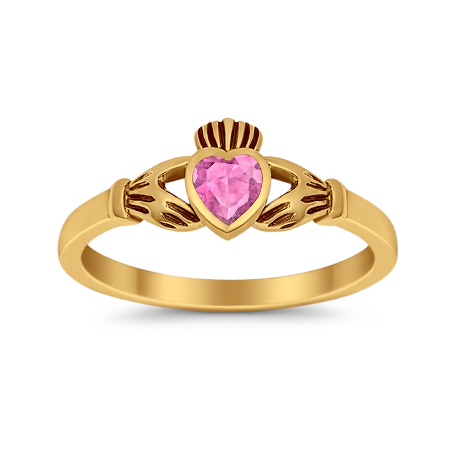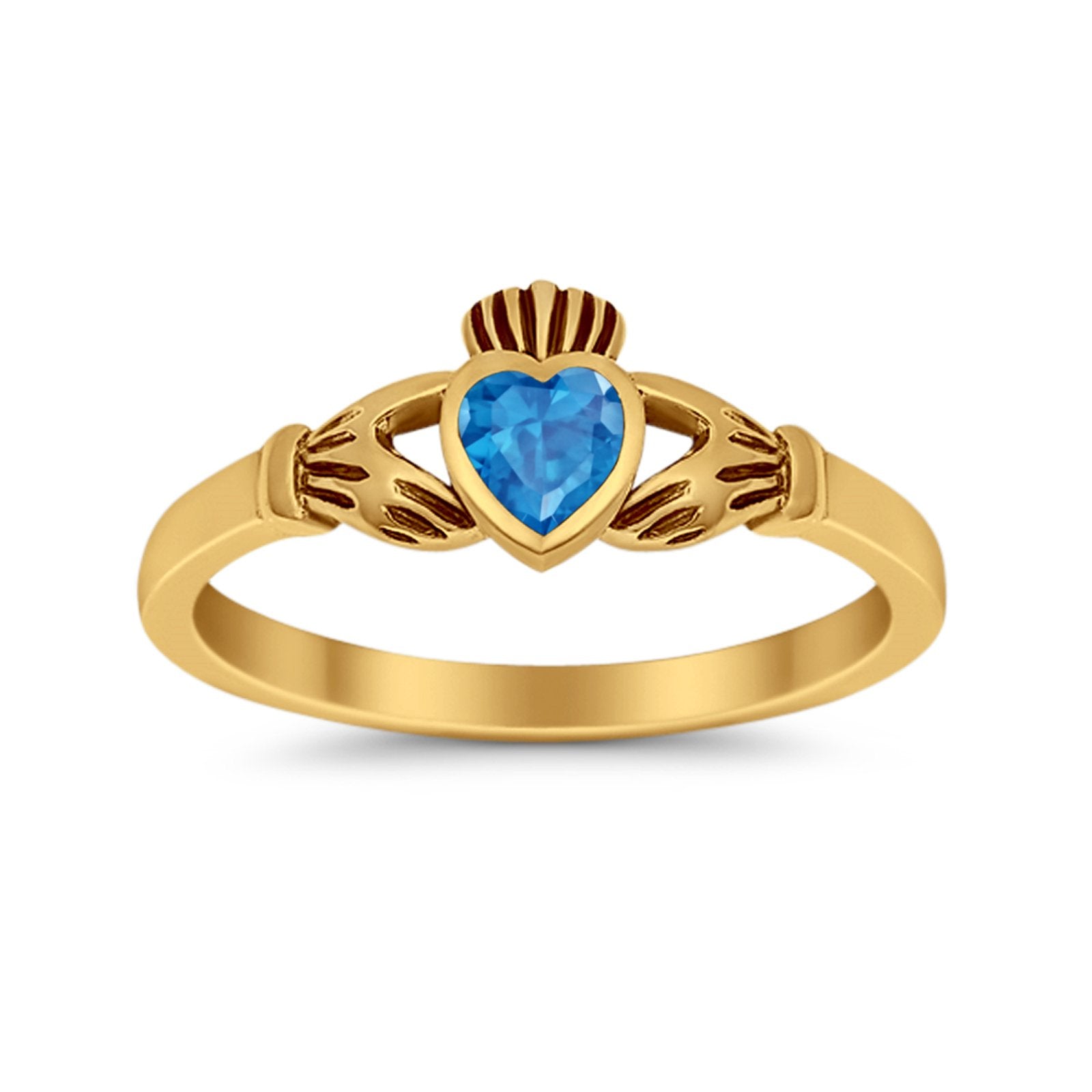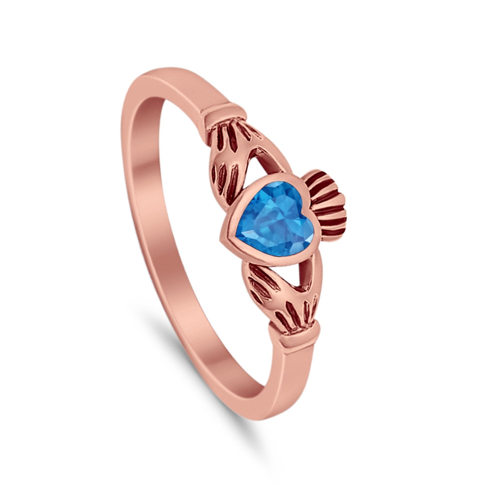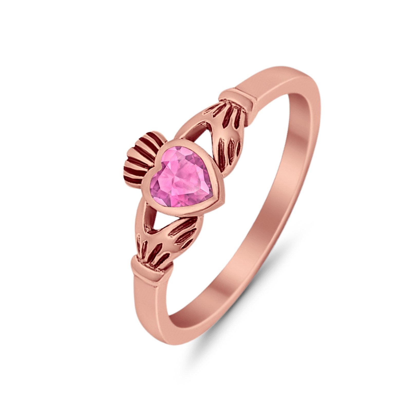 Irish Claddagh Heart Promise Ring Simulated Cubic Zirconia 925 Sterling Silver