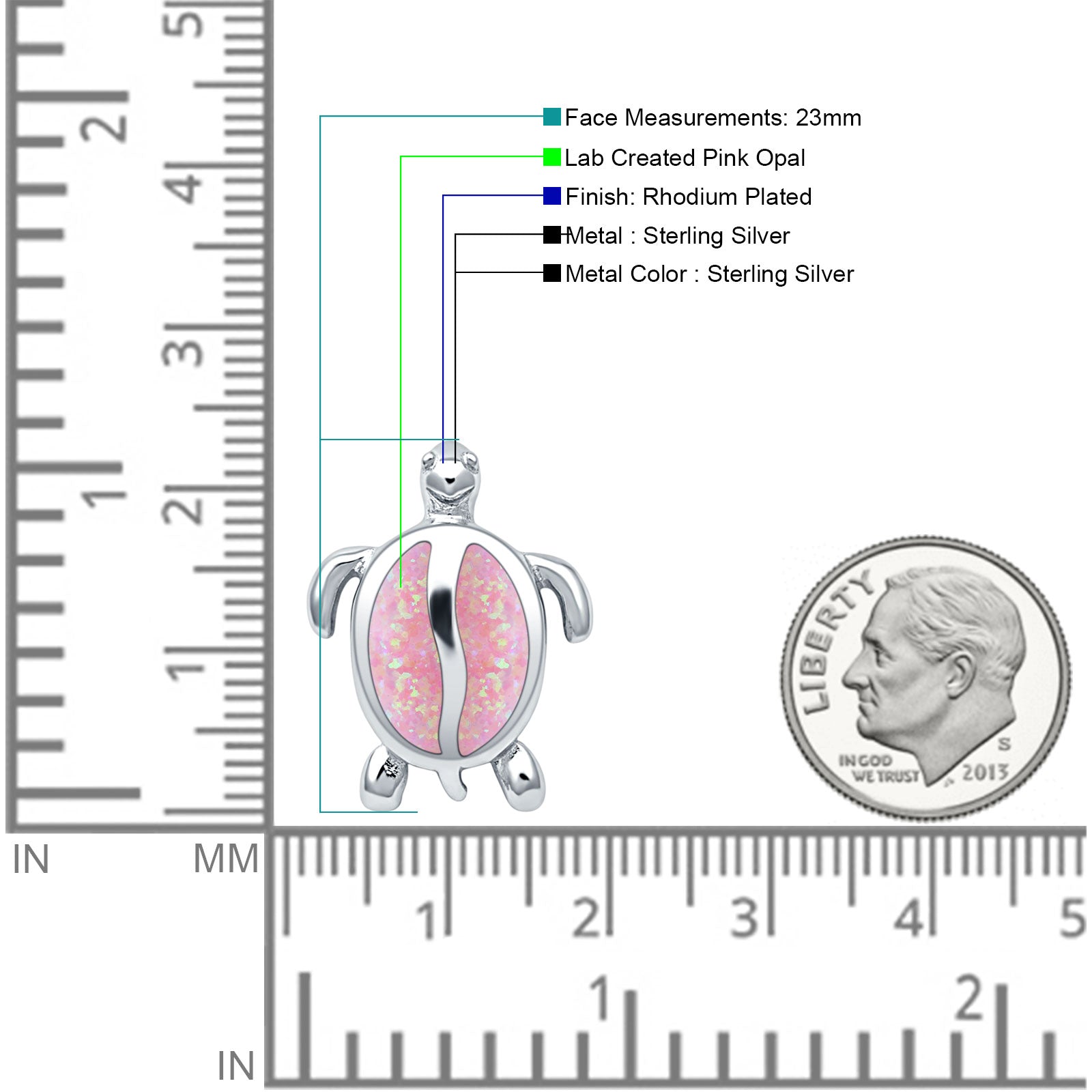 Style: Lab Created Pink Opal Turtle Pendant Necklace