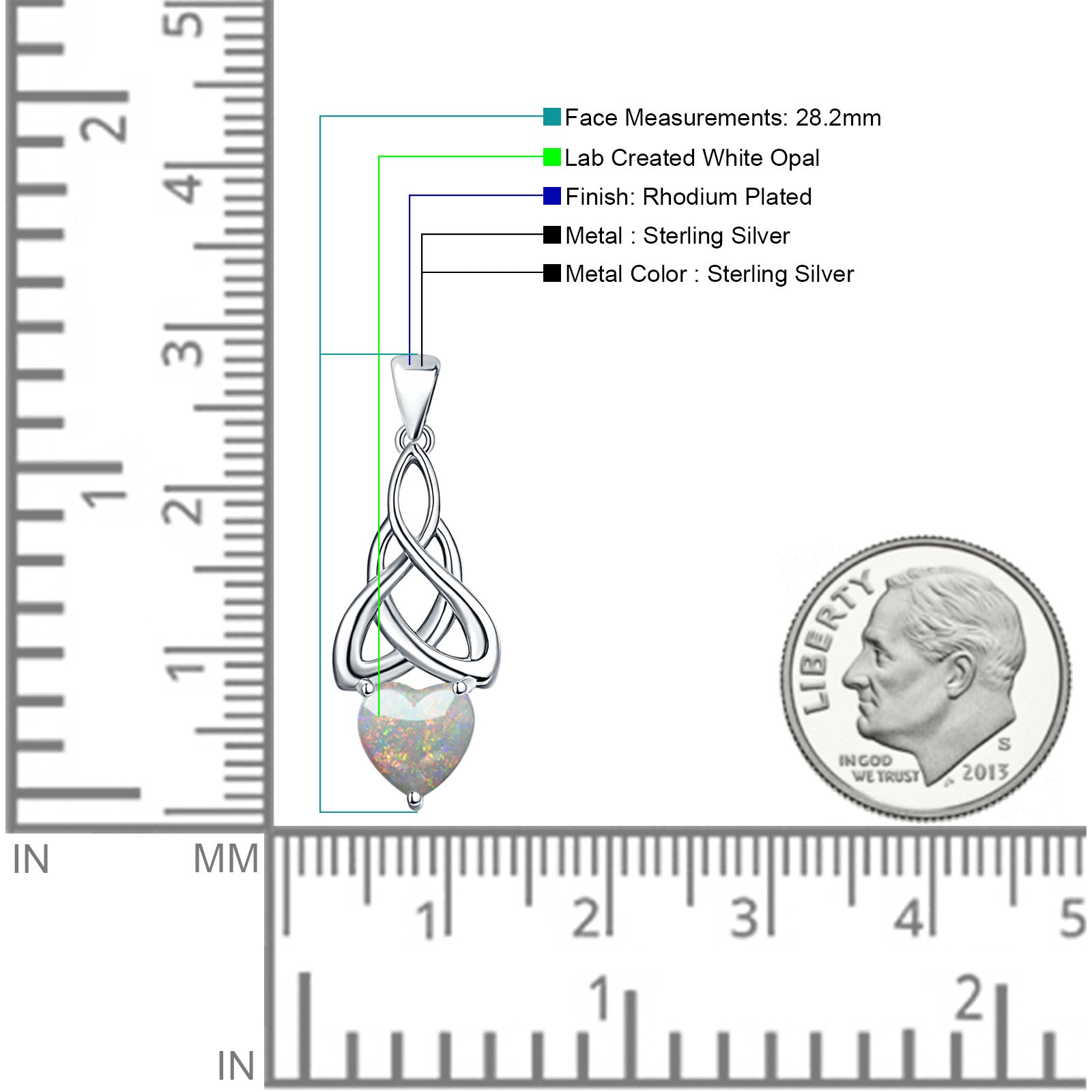 Style: Lab Created White Opal Celtic Heart Pendant