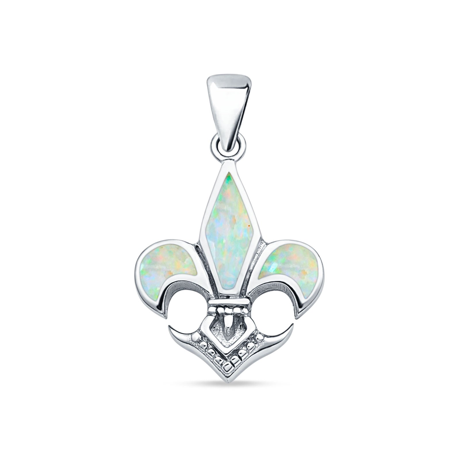 Style: Lab Created White Opal Fleur De Lis Pendant Necklace