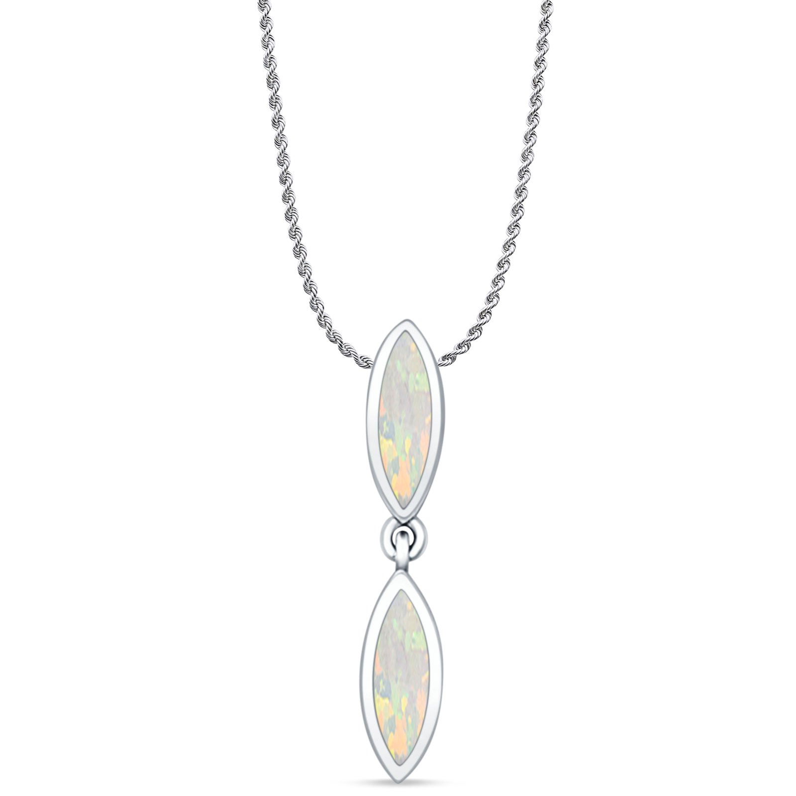 Style: Lab Created White Opal Marquise Dangle Pendant Necklace