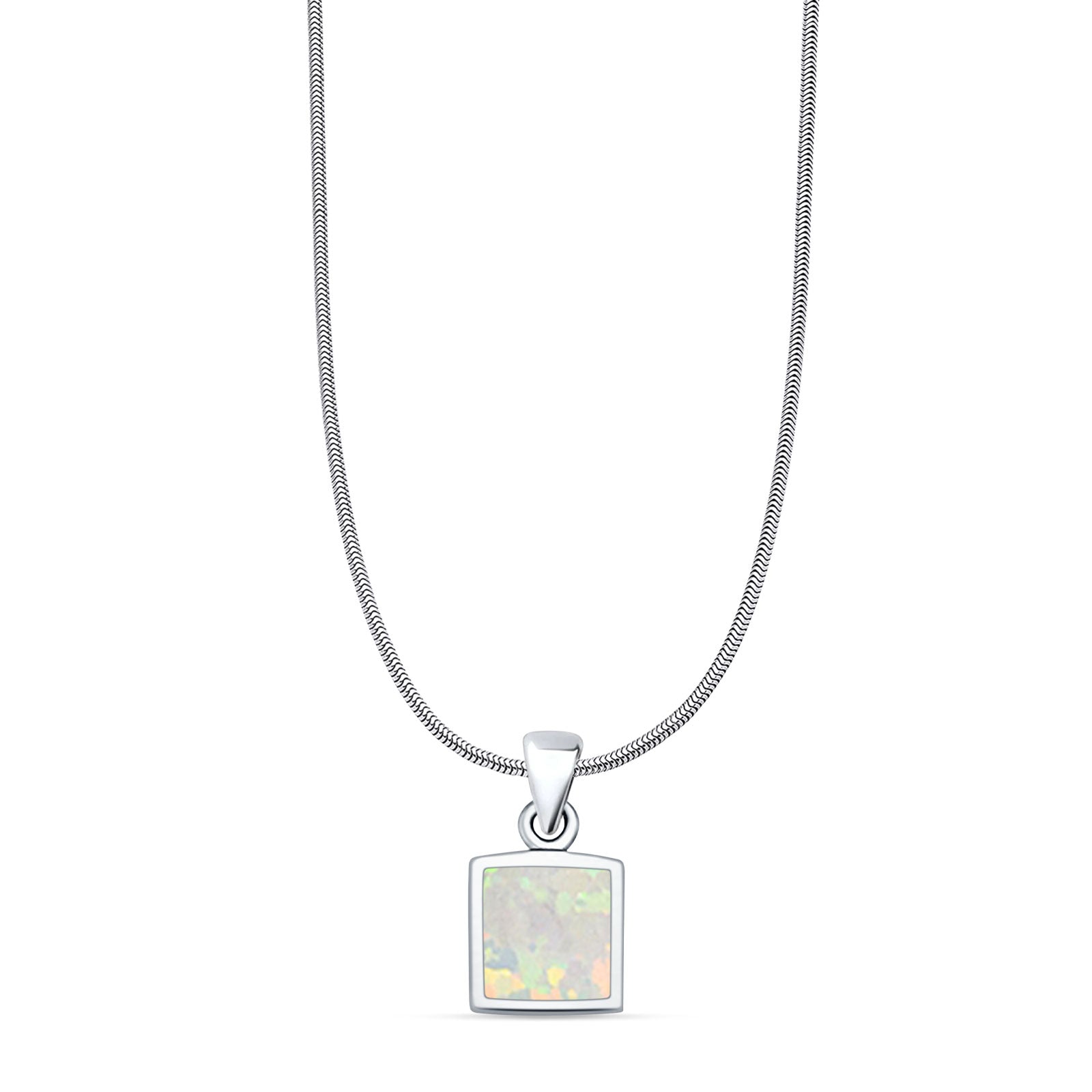 Lab Created White Opal Square Pendant Snake Chain Necklace 925 Sterling Silver