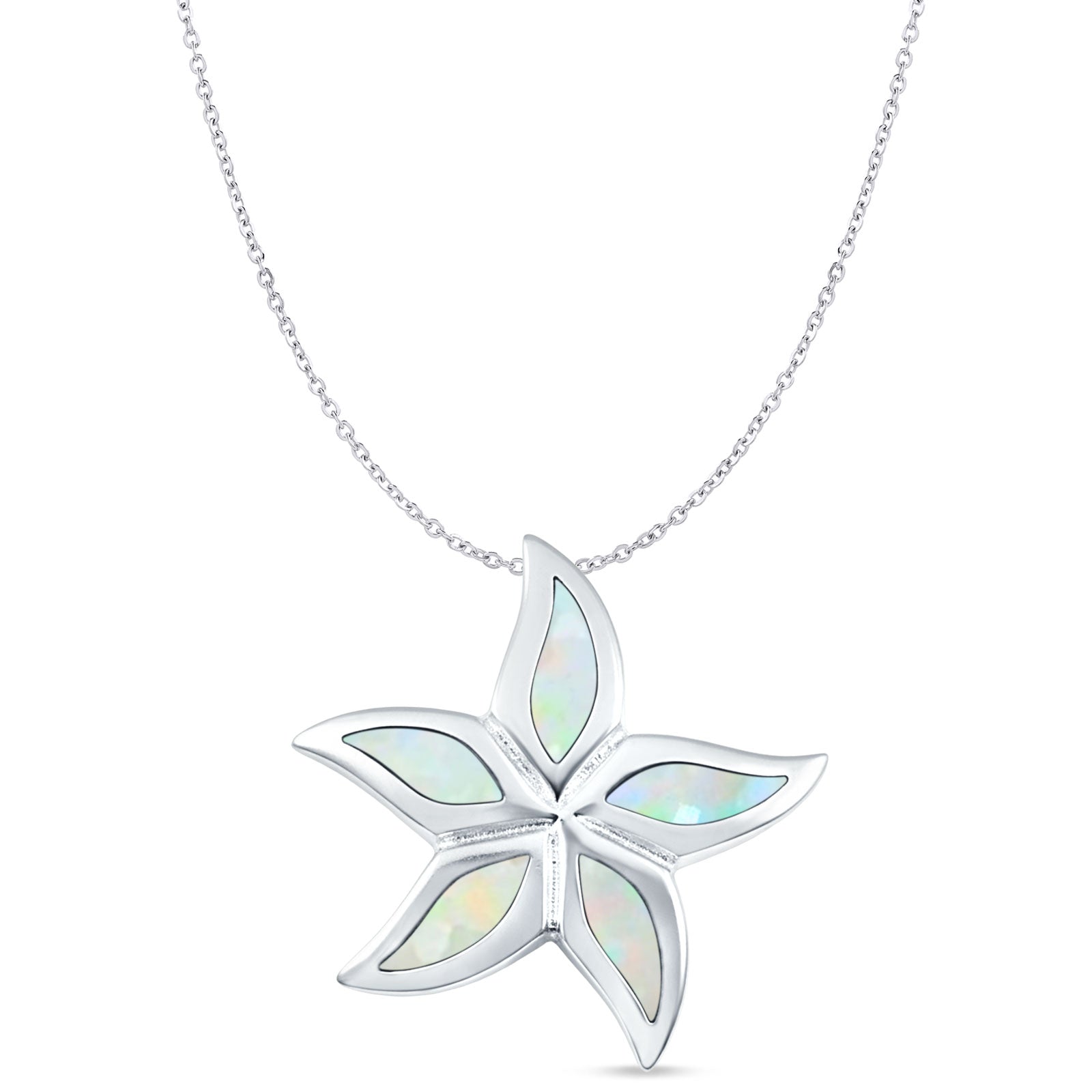 Style: Lab Created White Opal Starfish Pendant Necklace