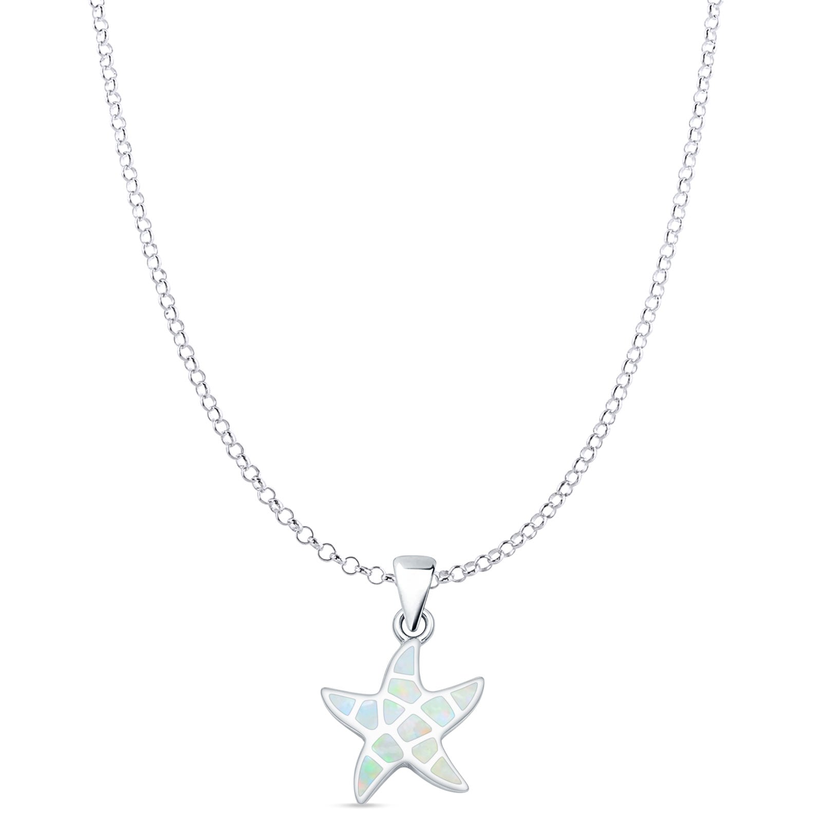 Style: Lab Created White Opal Starfish Pendant Necklace