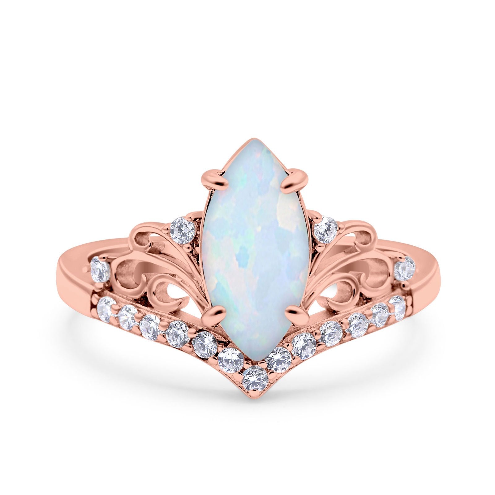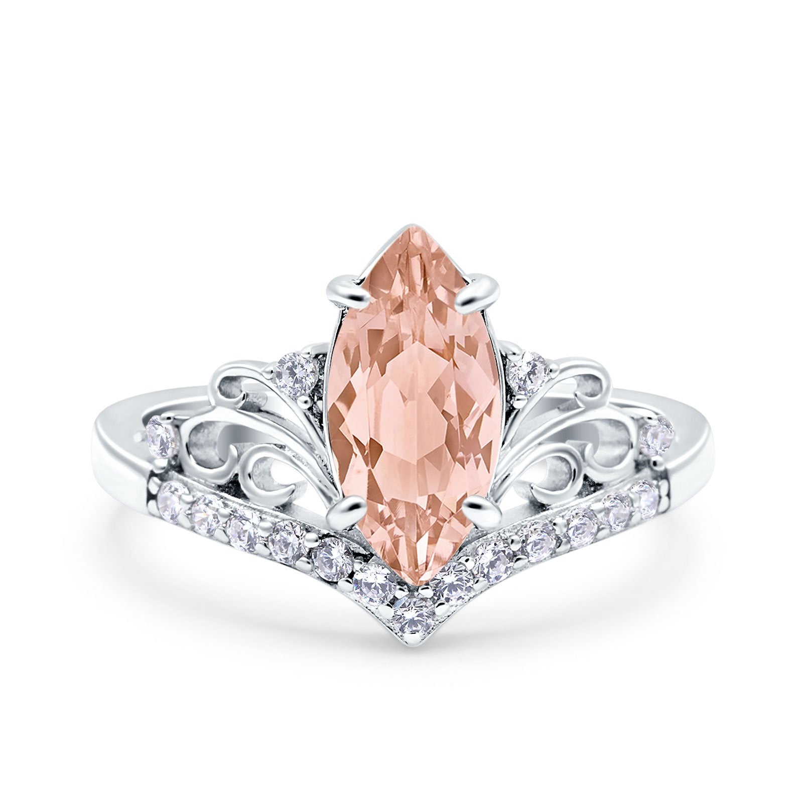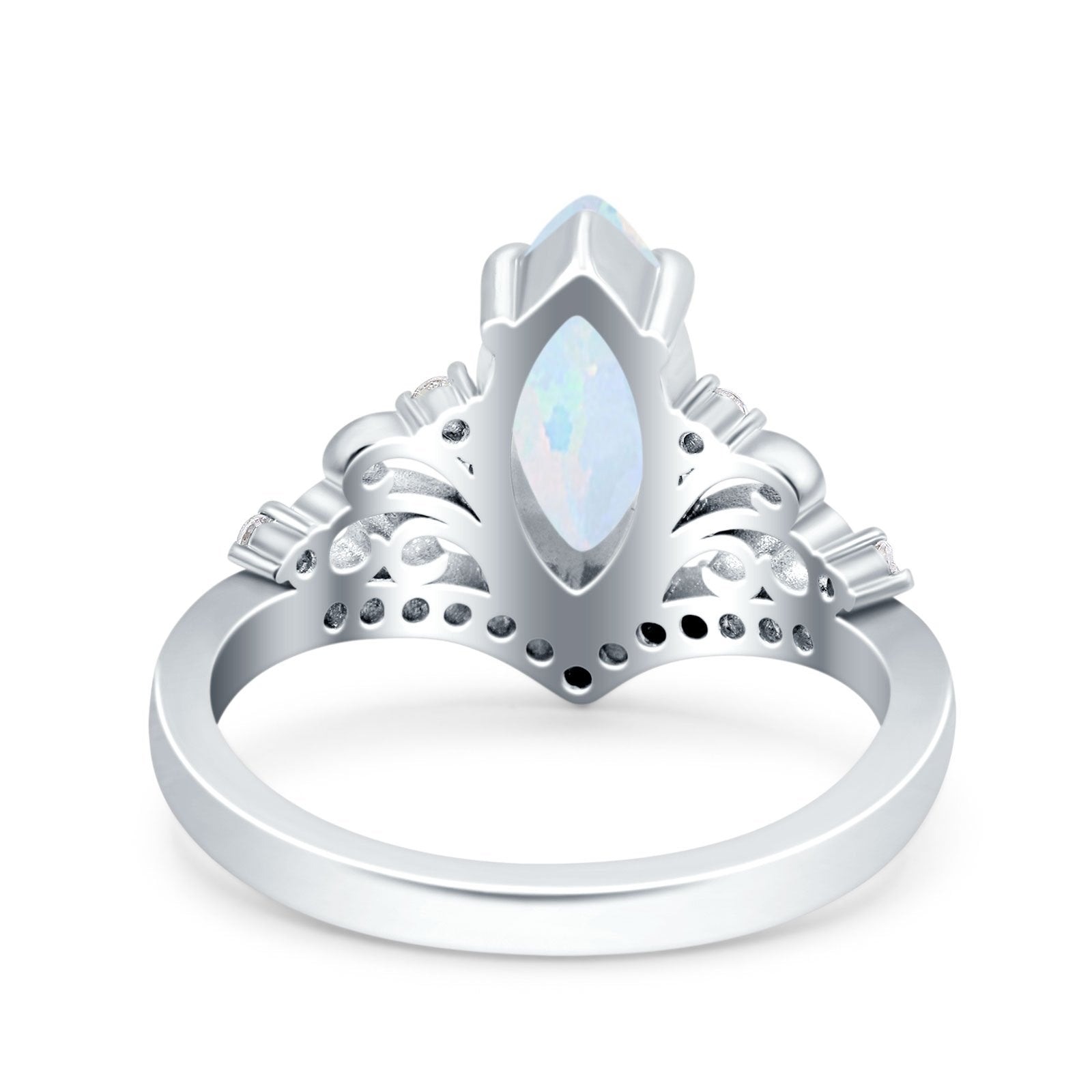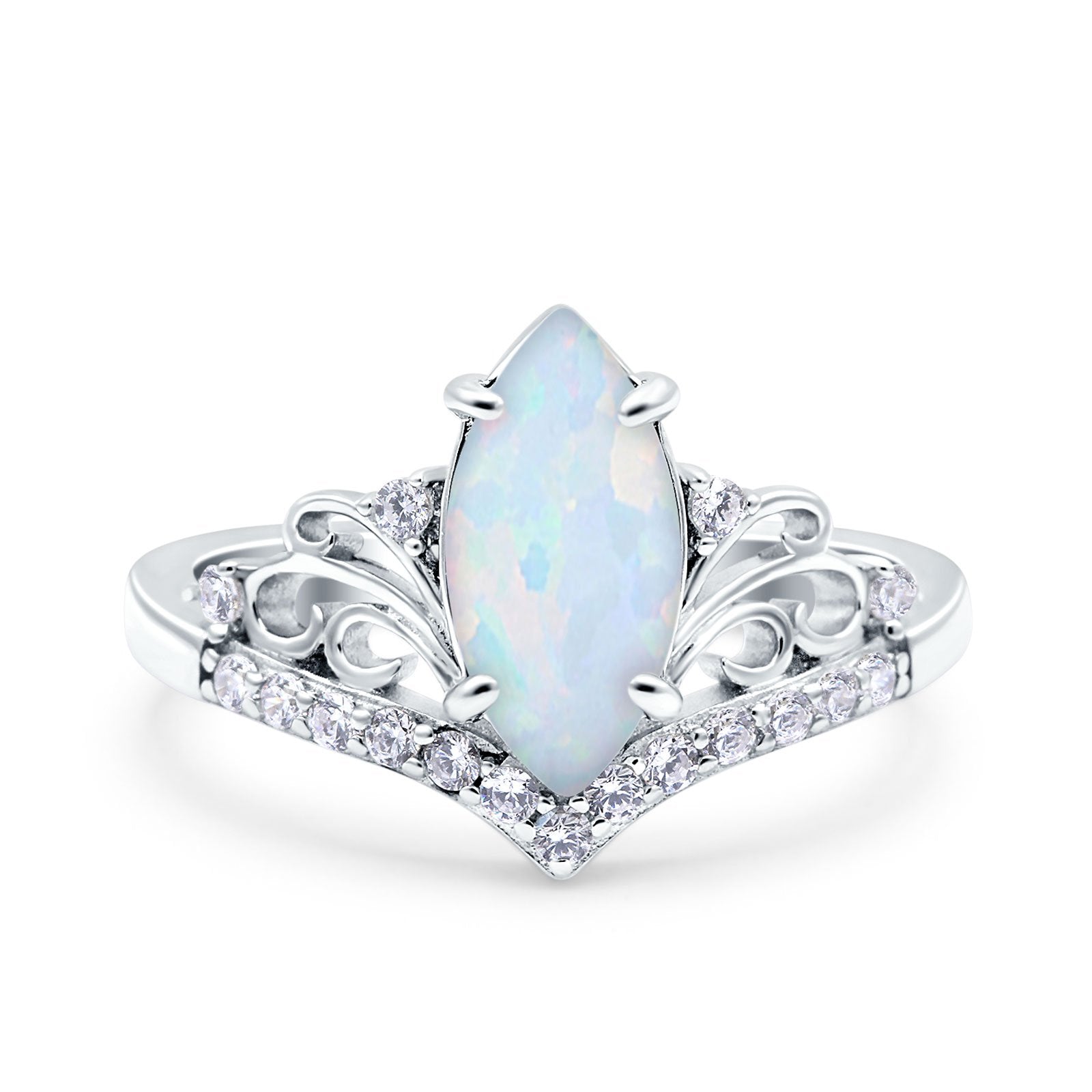 Marquise Art Deco Wedding Engagement Bridal Ring Round Simulated Cubic Zirconia 925 Sterling Silver