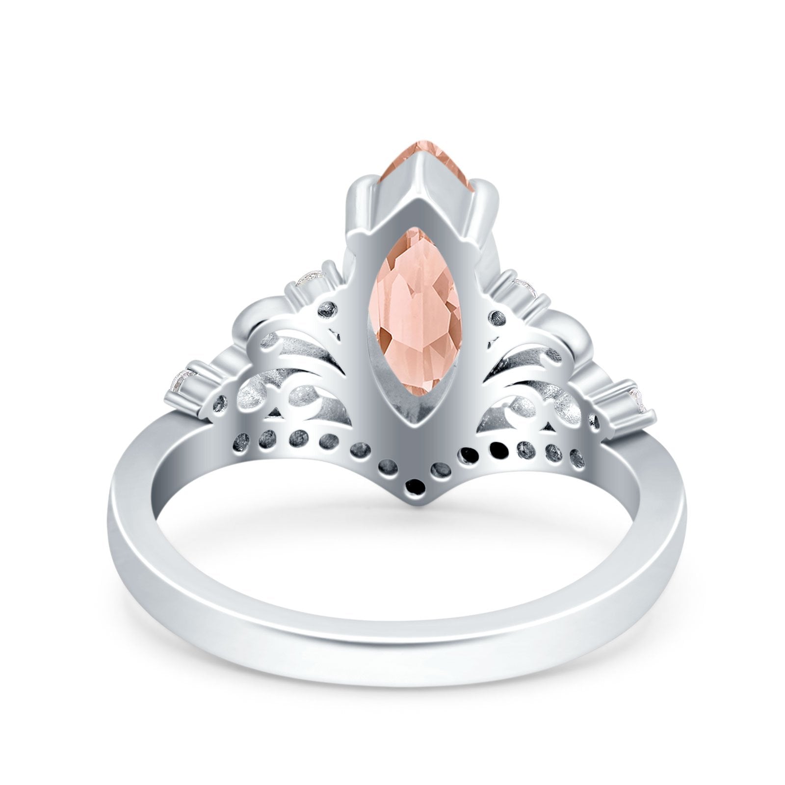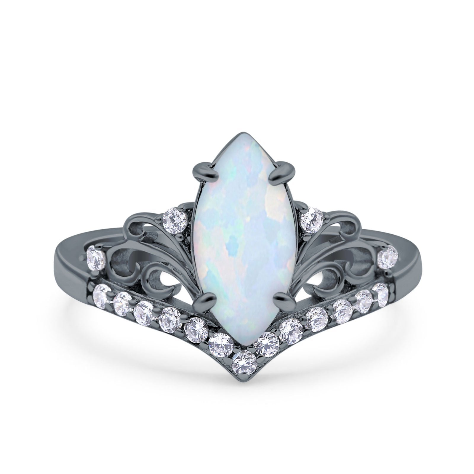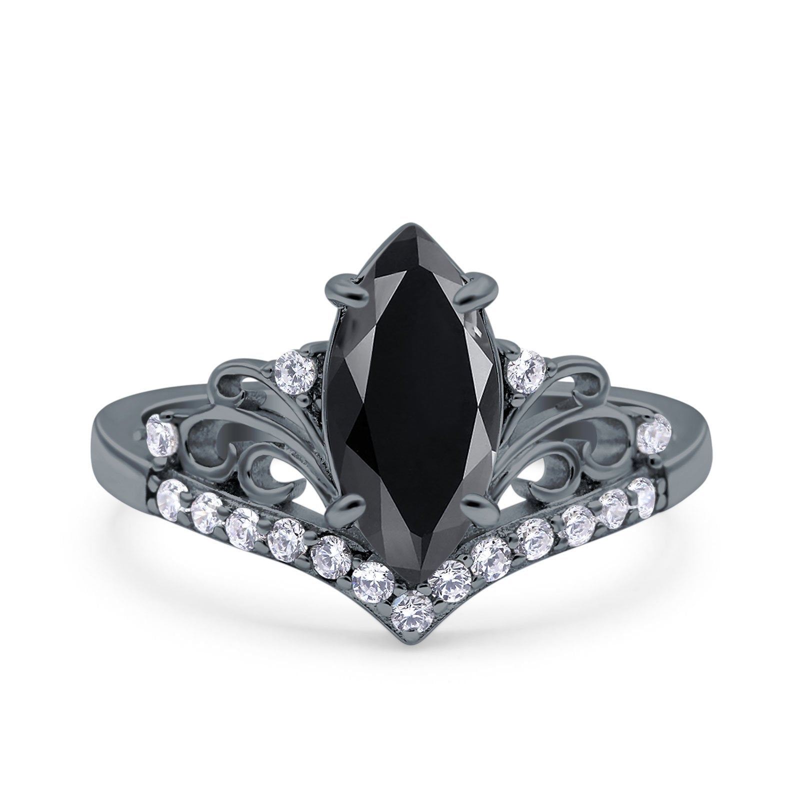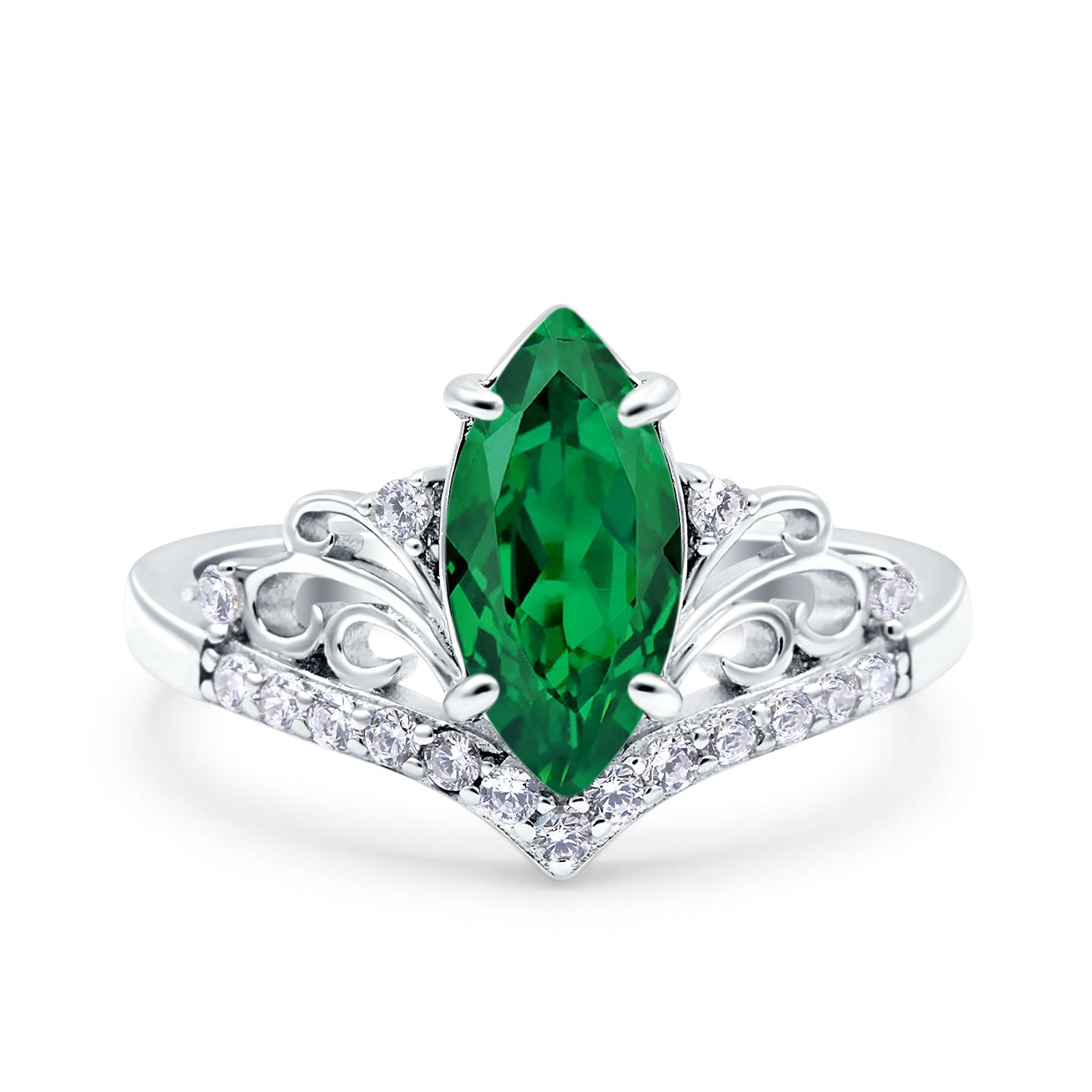 Marquise Art Deco Wedding Engagement Bridal Ring Round Simulated Cubic Zirconia 925 Sterling Silver
