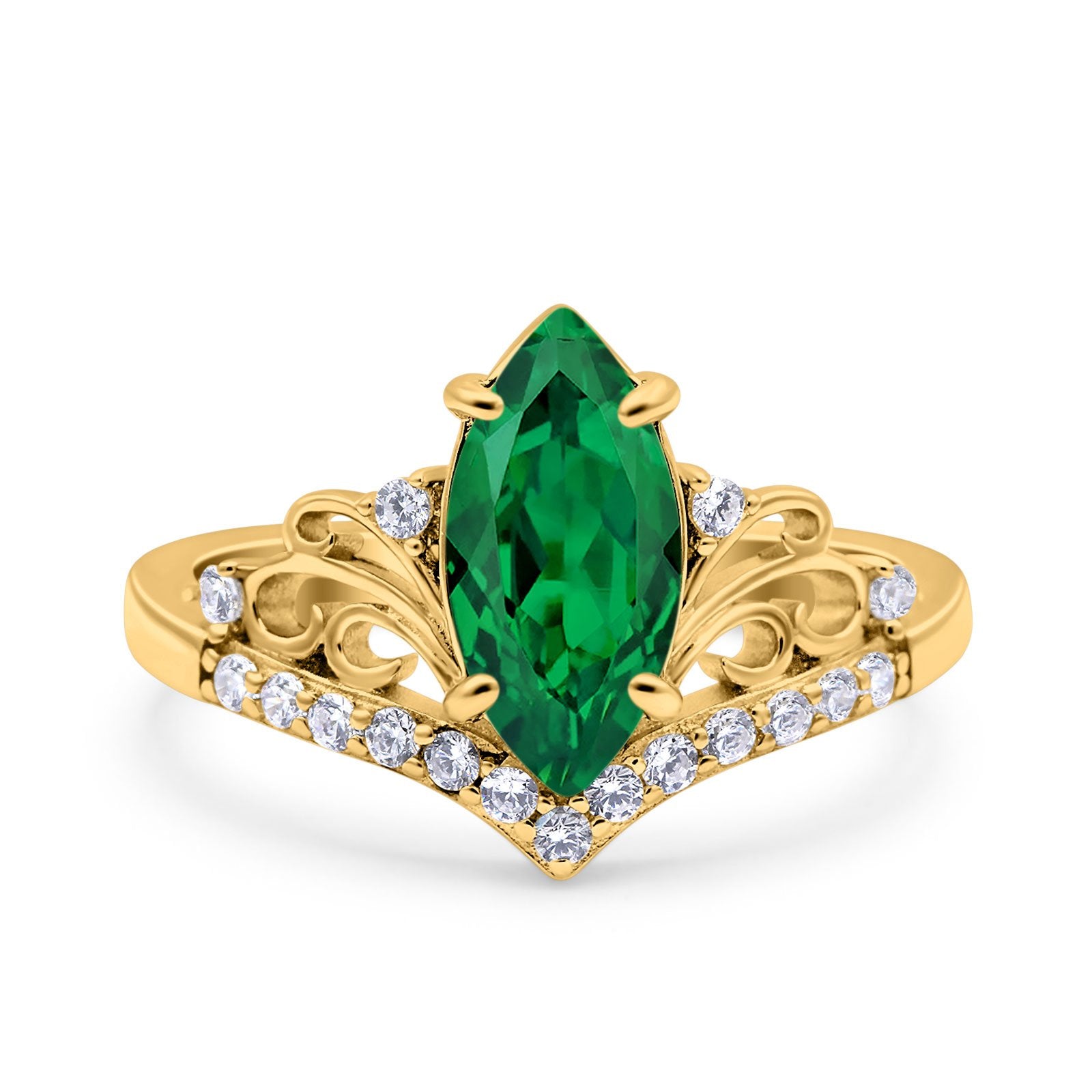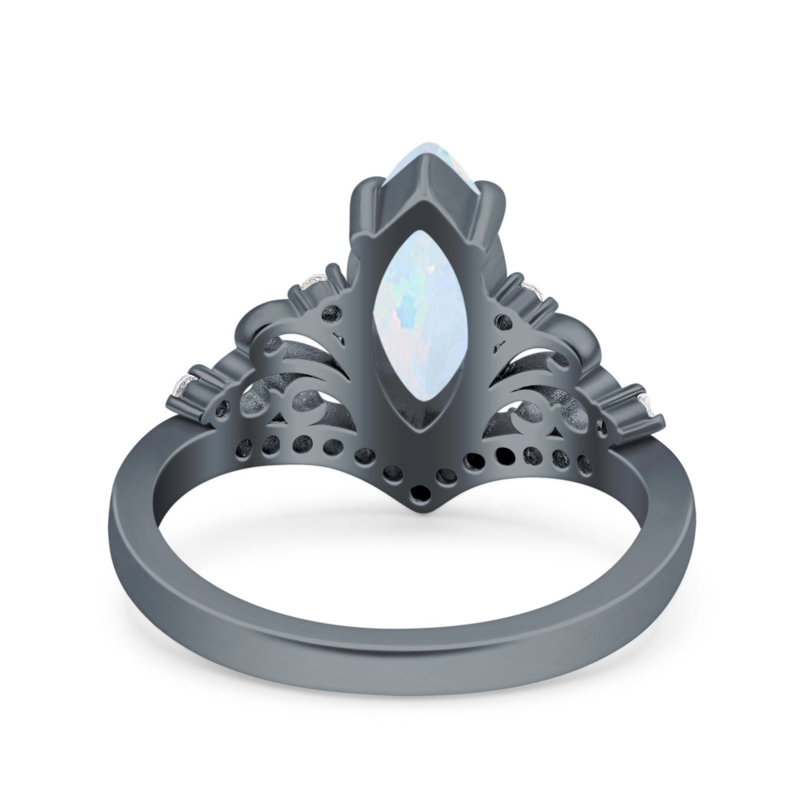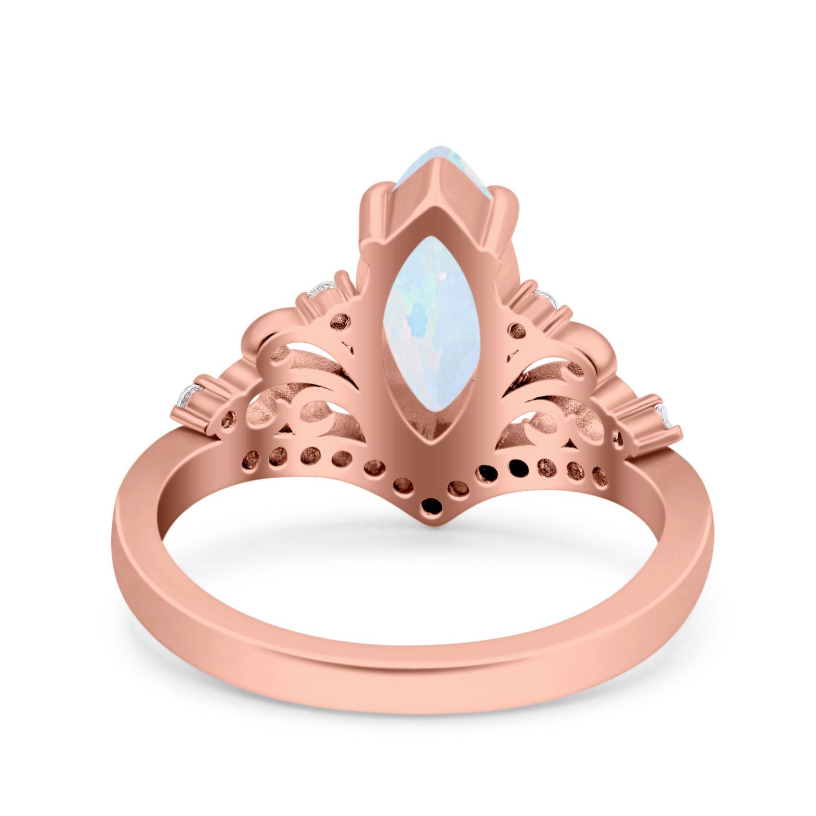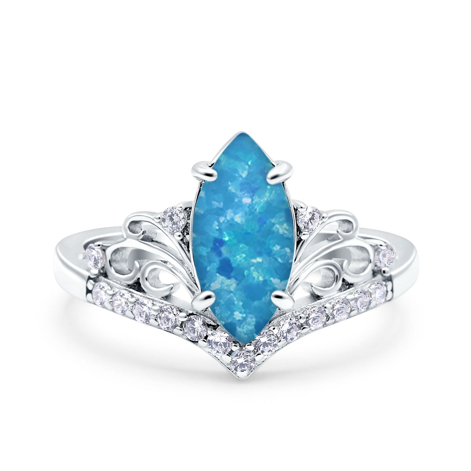 Marquise Art Deco Wedding Engagement Bridal Ring Round Simulated Cubic Zirconia 925 Sterling Silver