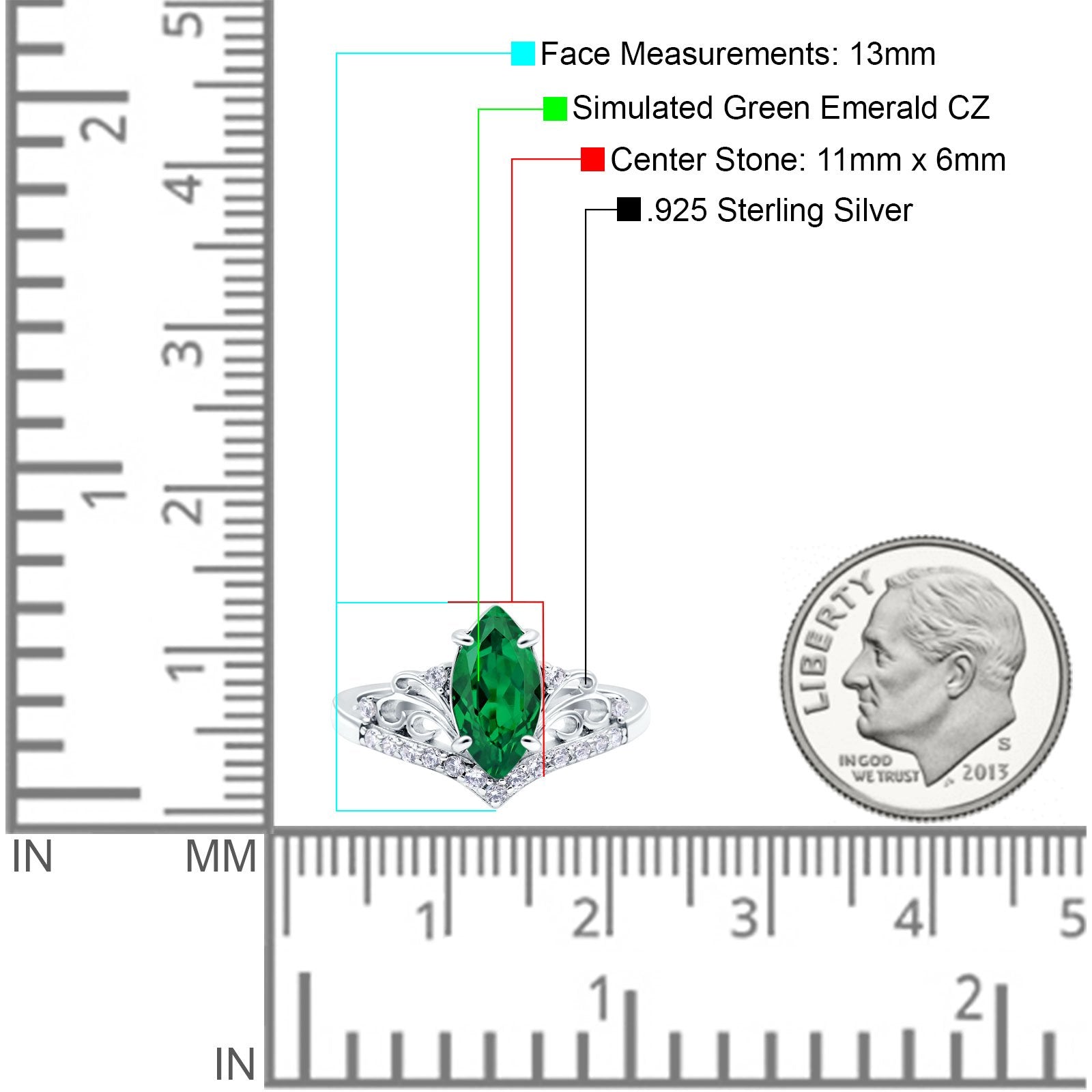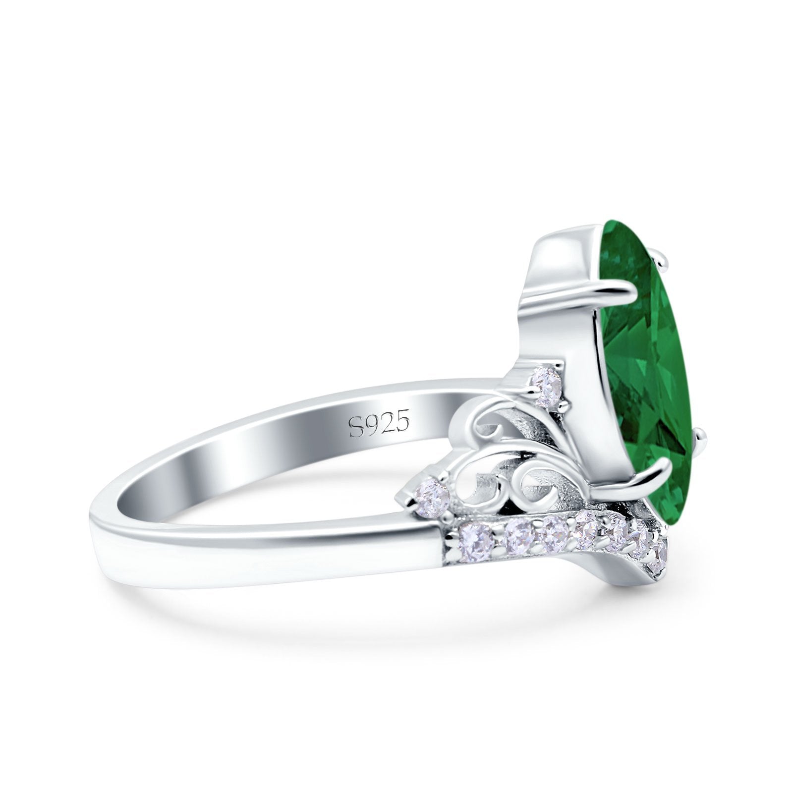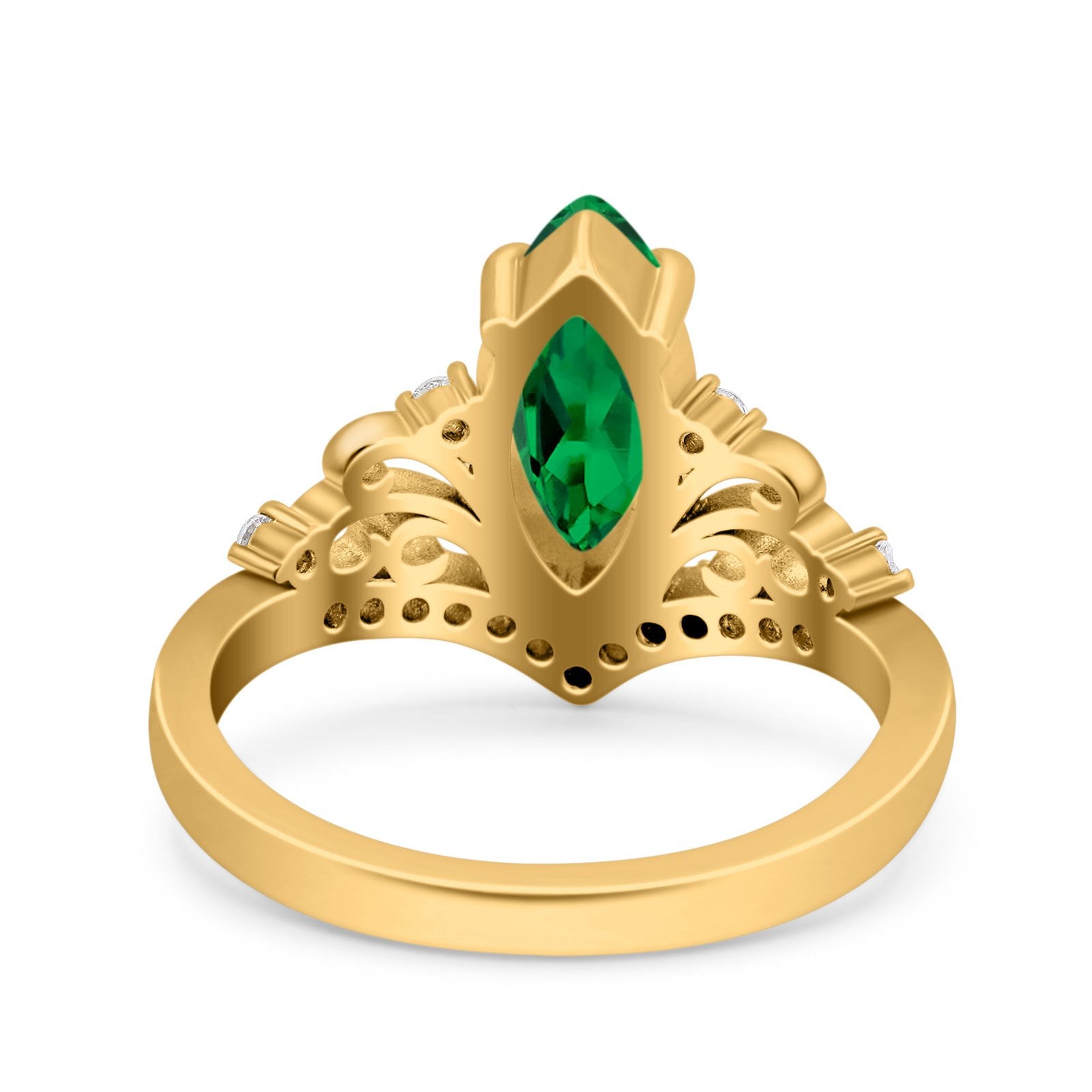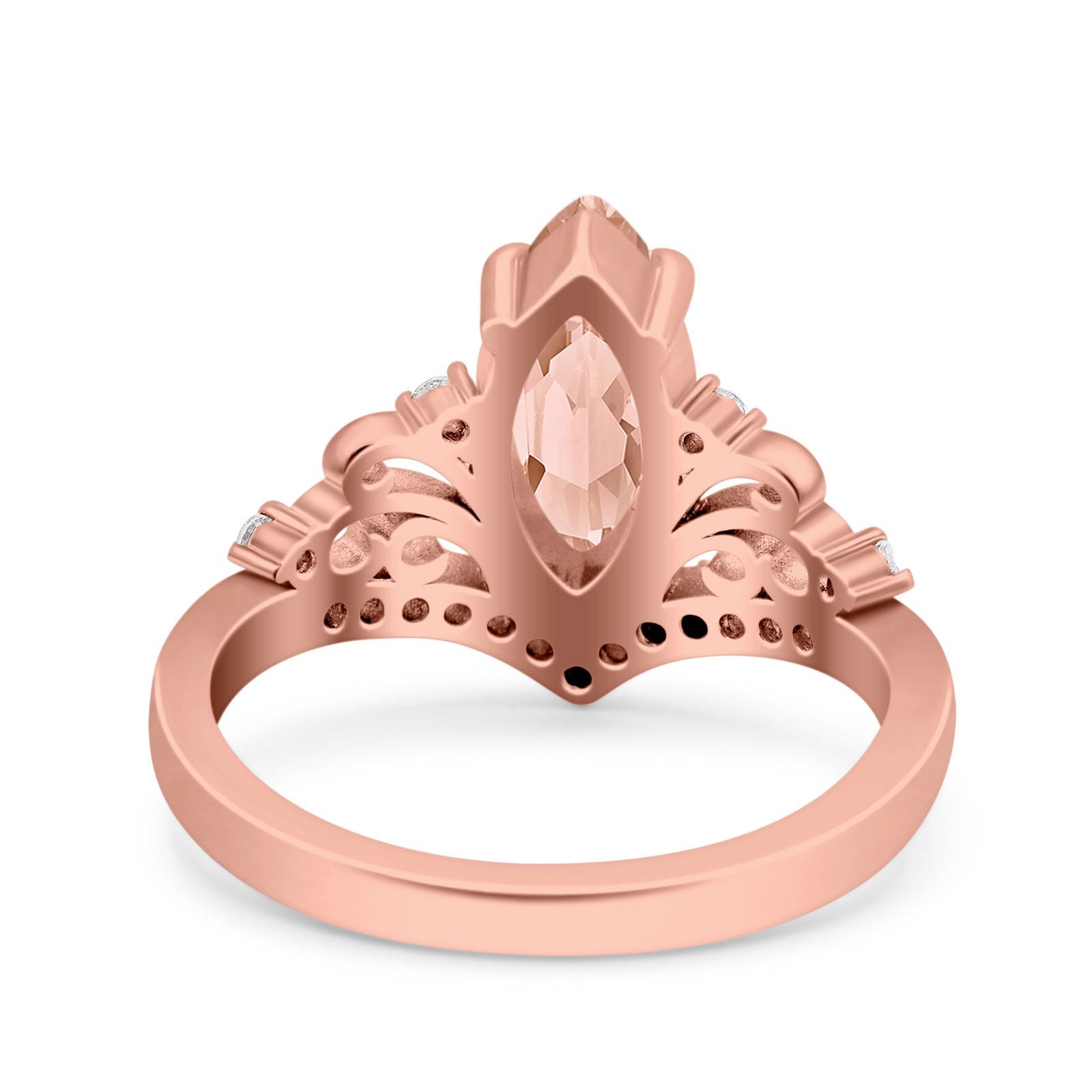 Marquise Art Deco Wedding Engagement Bridal Ring Round Simulated Cubic Zirconia 925 Sterling Silver