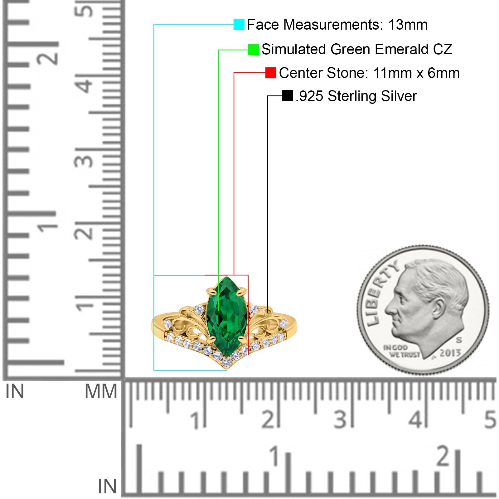 Yellow Tone, Simulated Green Emerald CZ