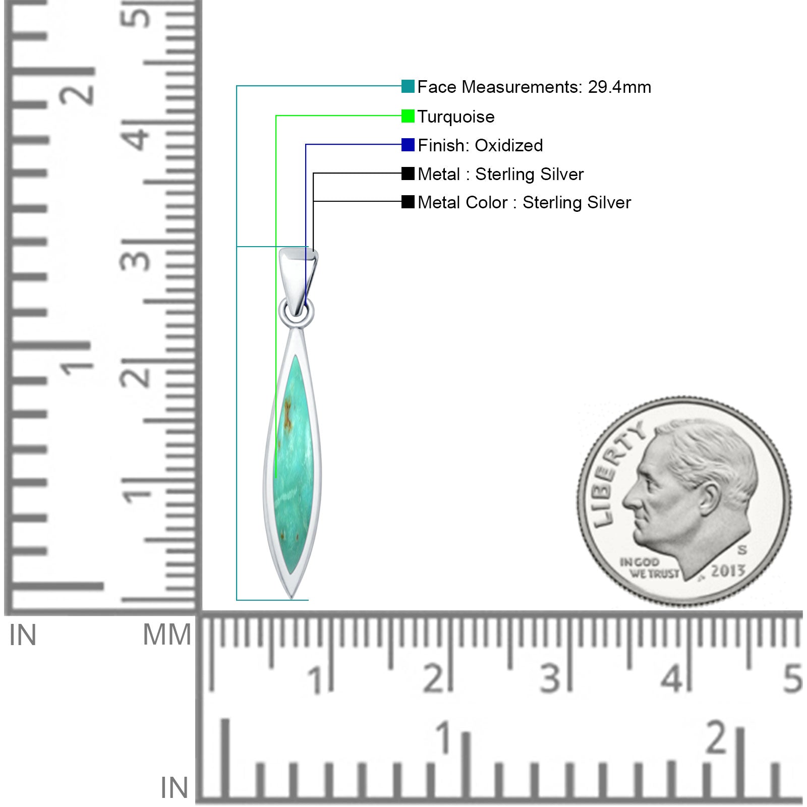 Pendant Length: 29.4mm(1.15 inch)