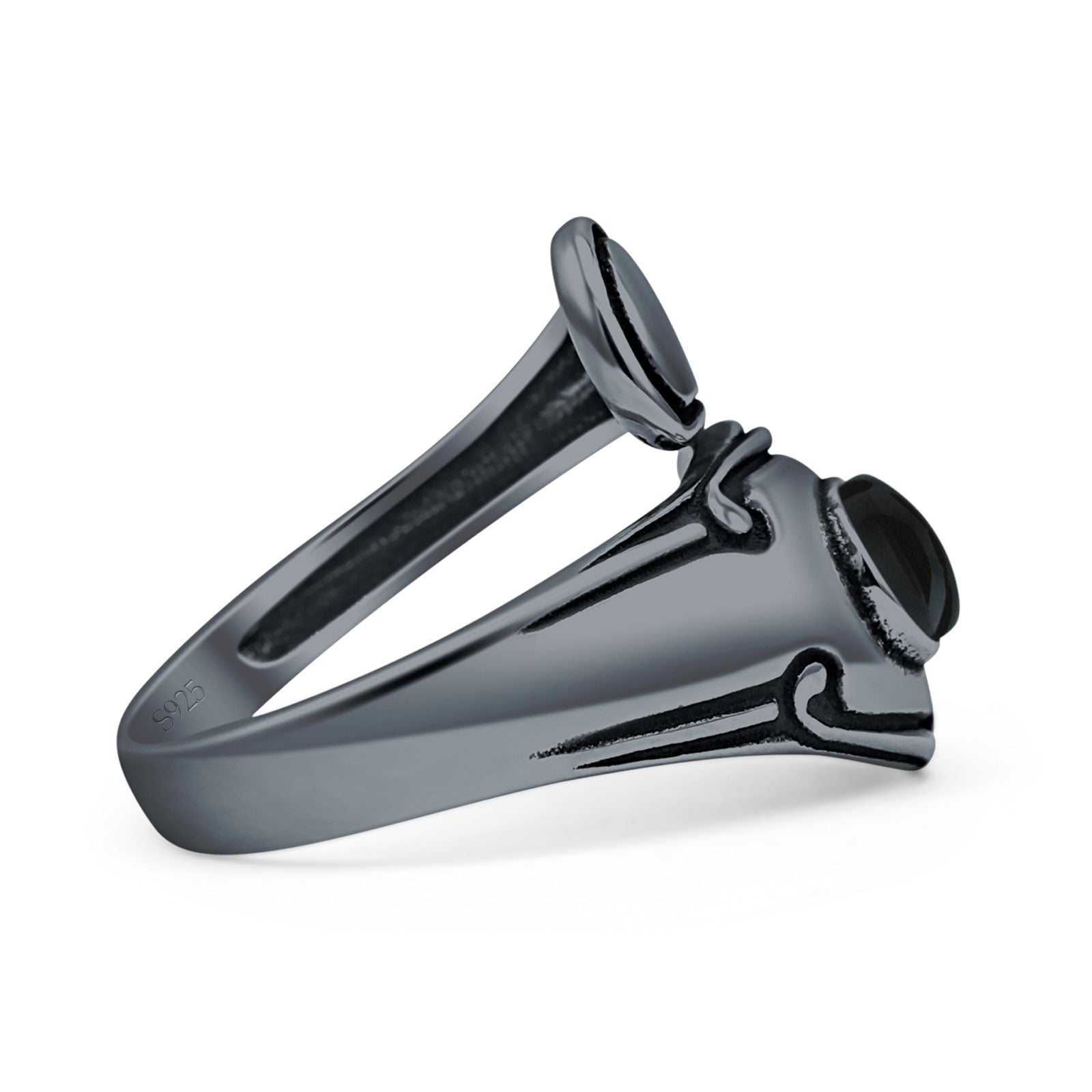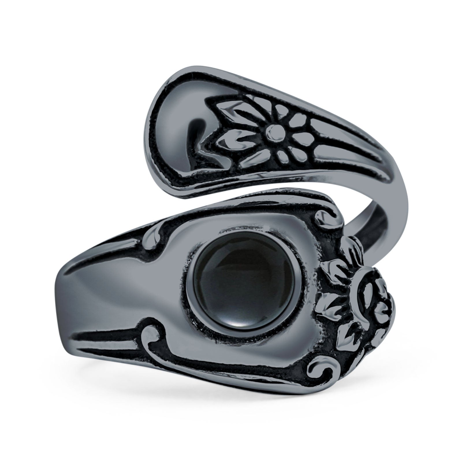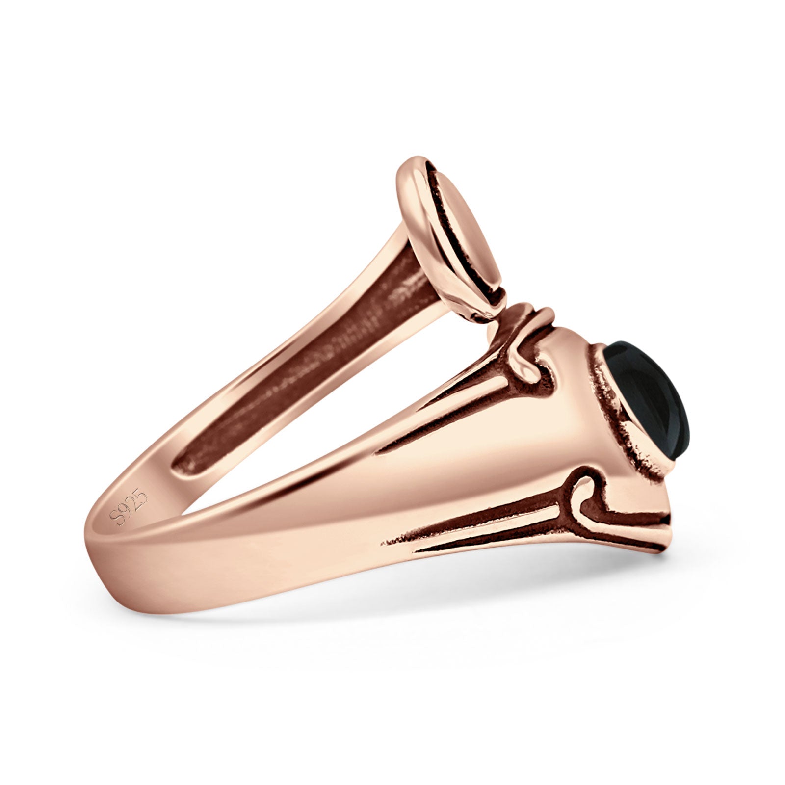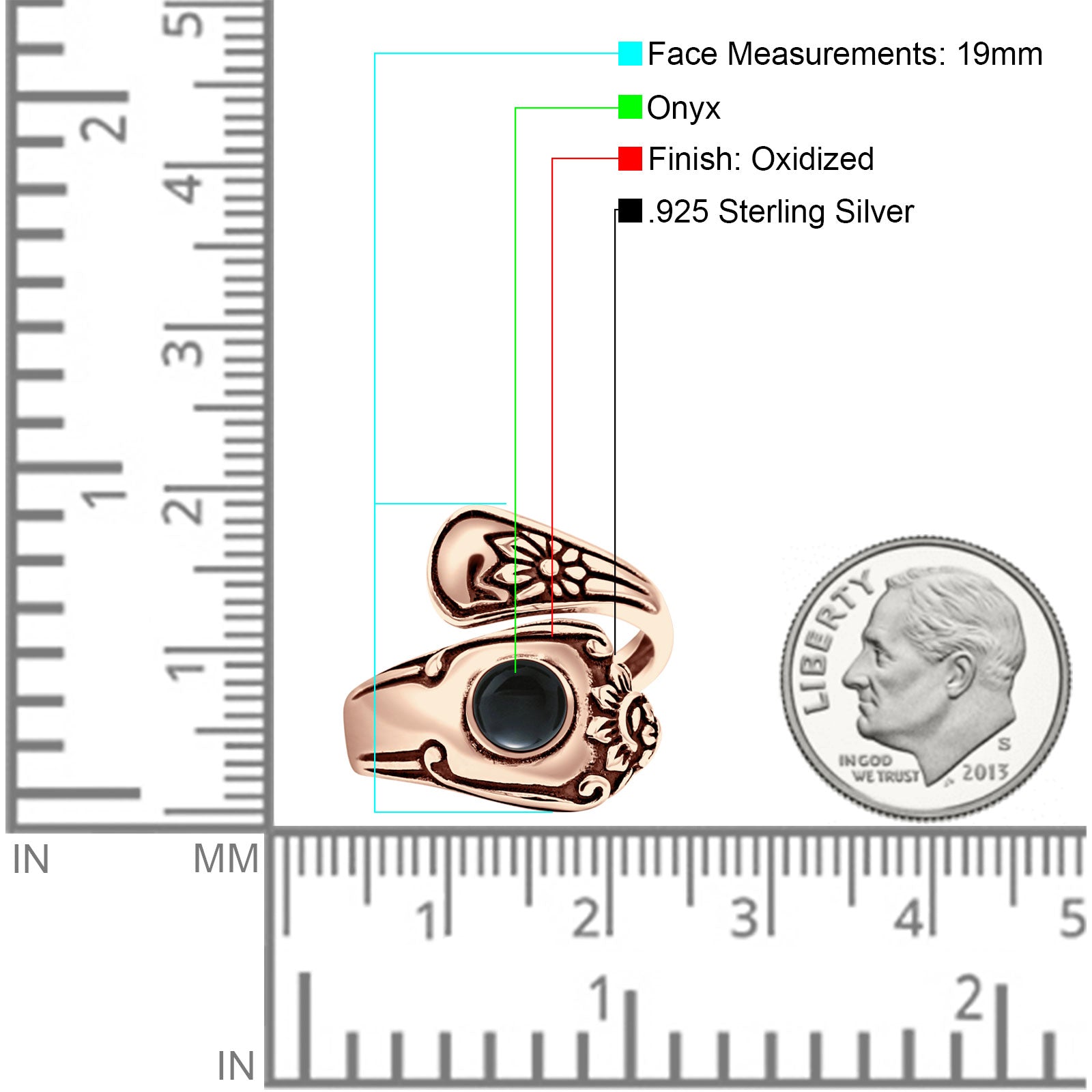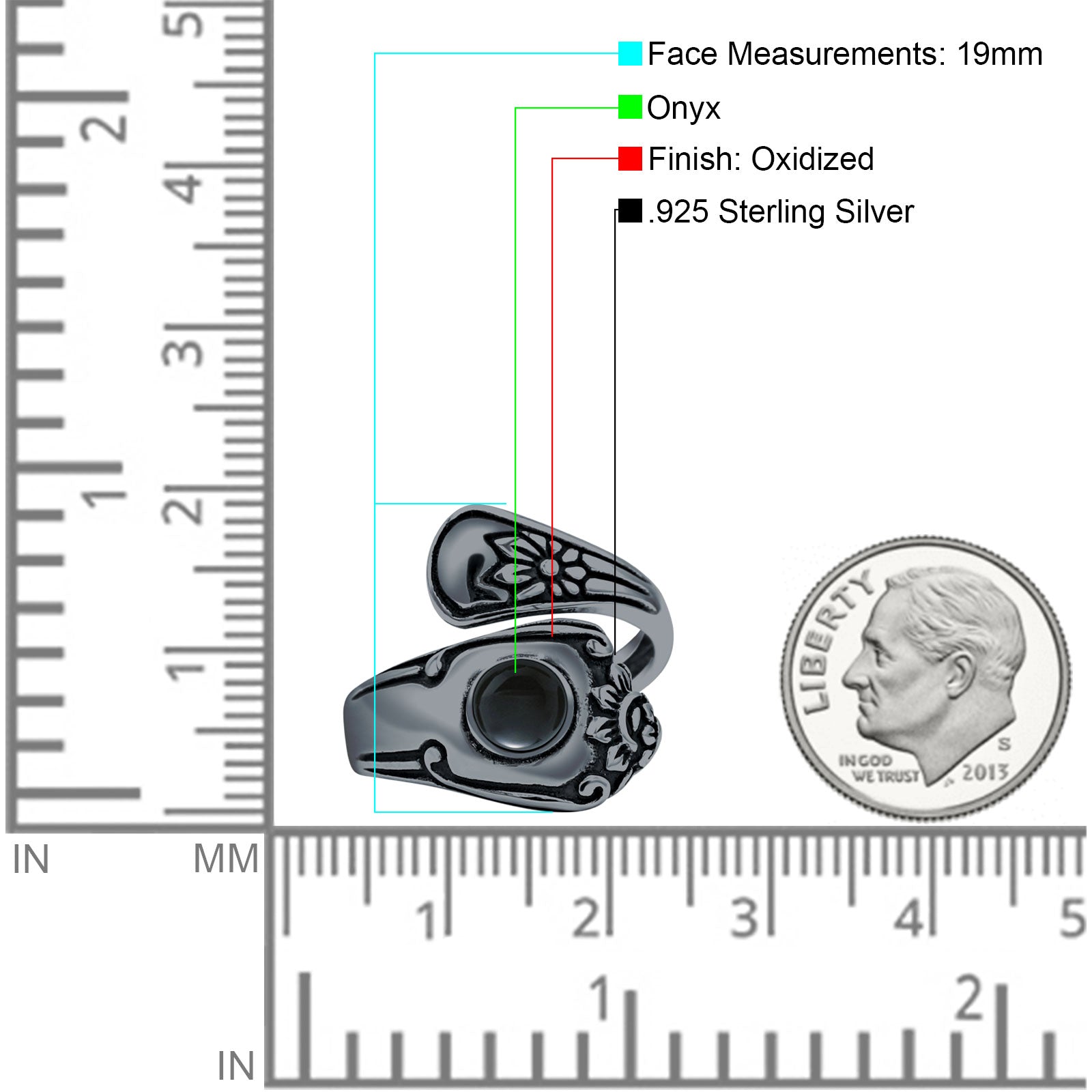 Minimalist 17mm Lab Created Blue Opal Flower & Bee Oxidized Ring 925 Sterling Silver