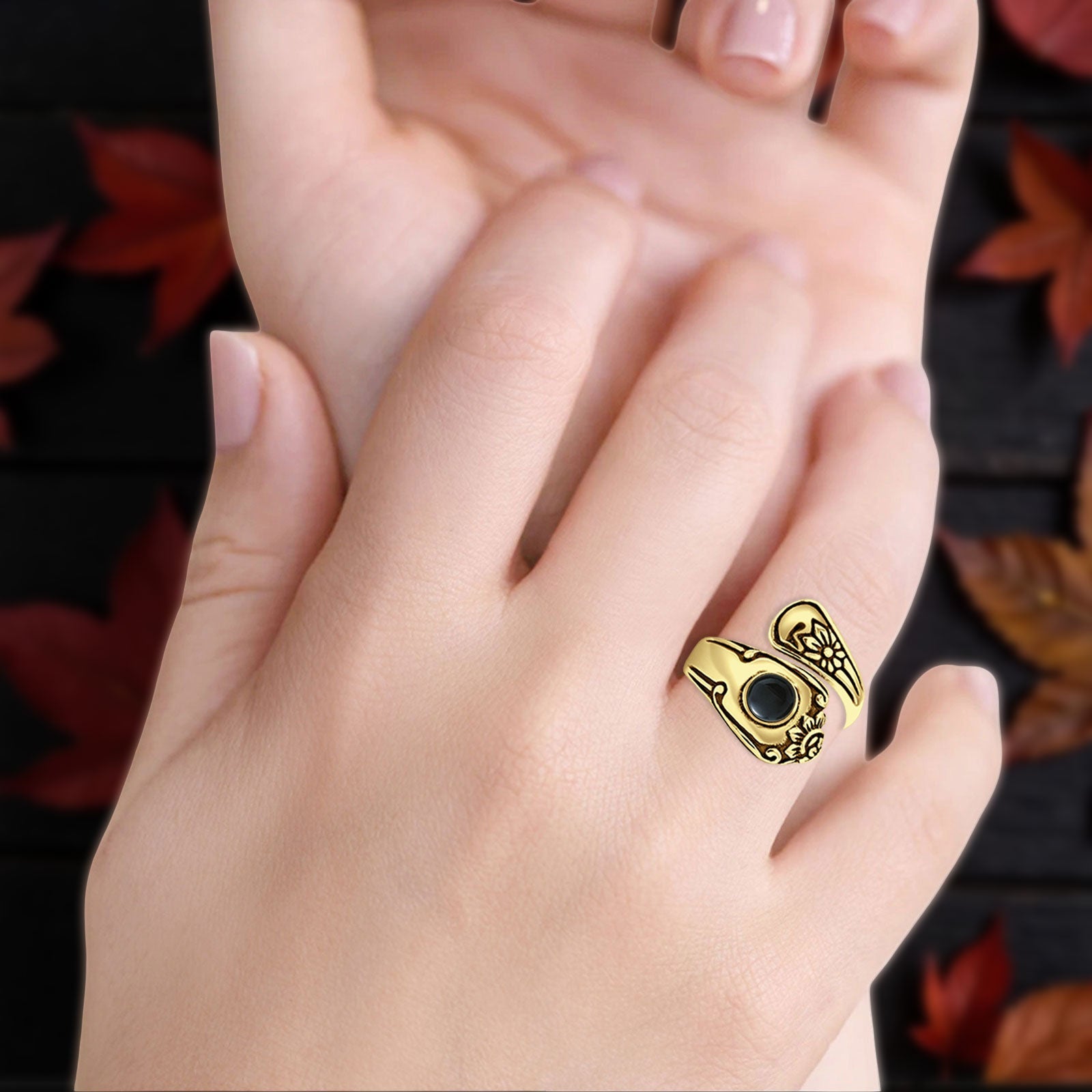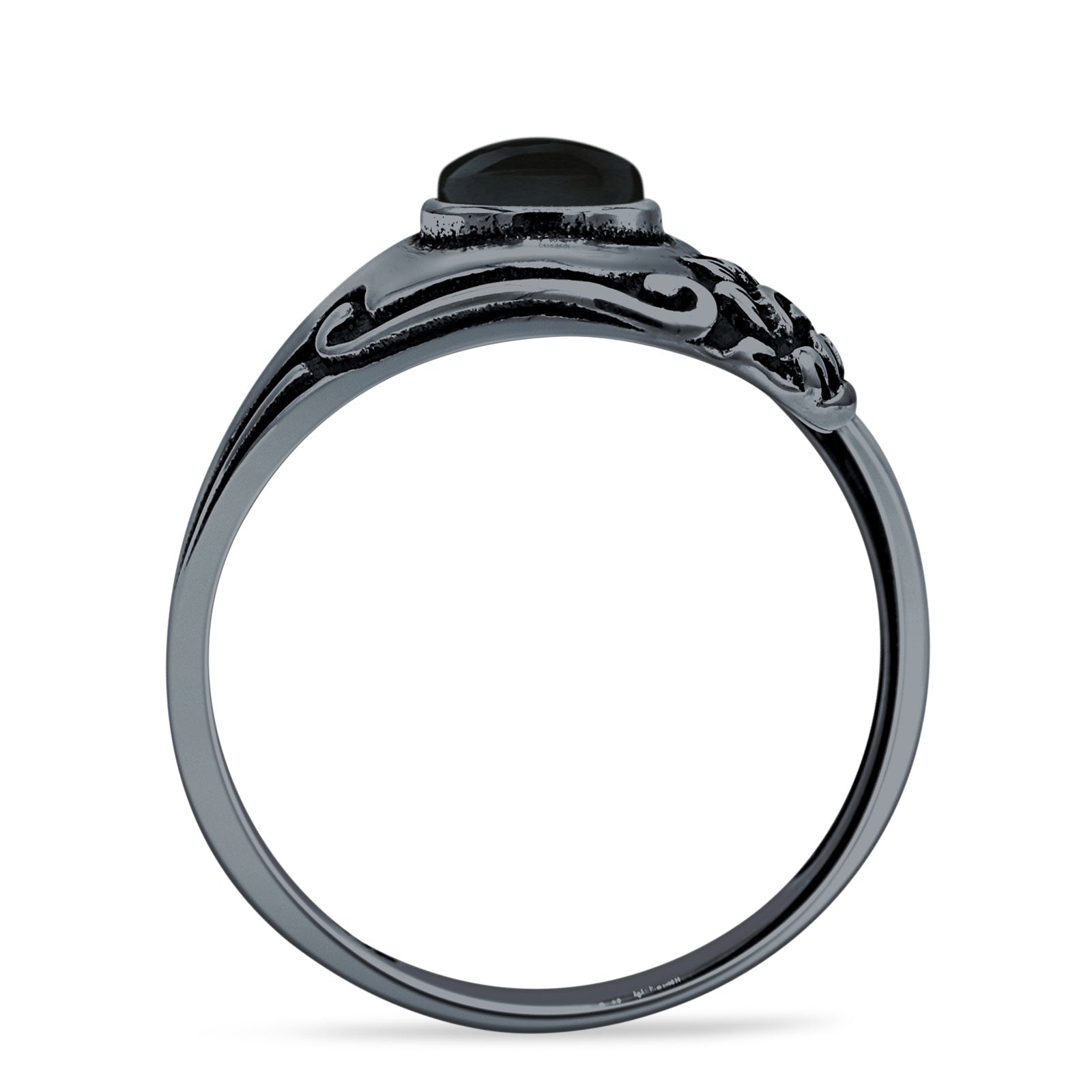 Minimalist 17mm Moonstone Flower & Bee Oxidized Ring 925 Sterling Silver