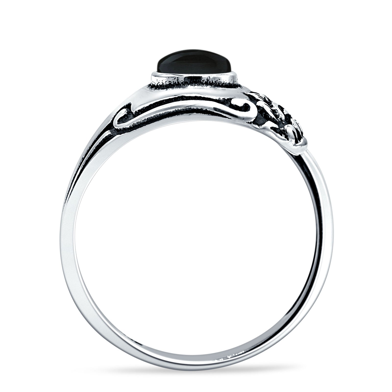 Minimalist 17mm Lab Created White Opal Flower & Bee Oxidized Ring 925 Sterling Silver
