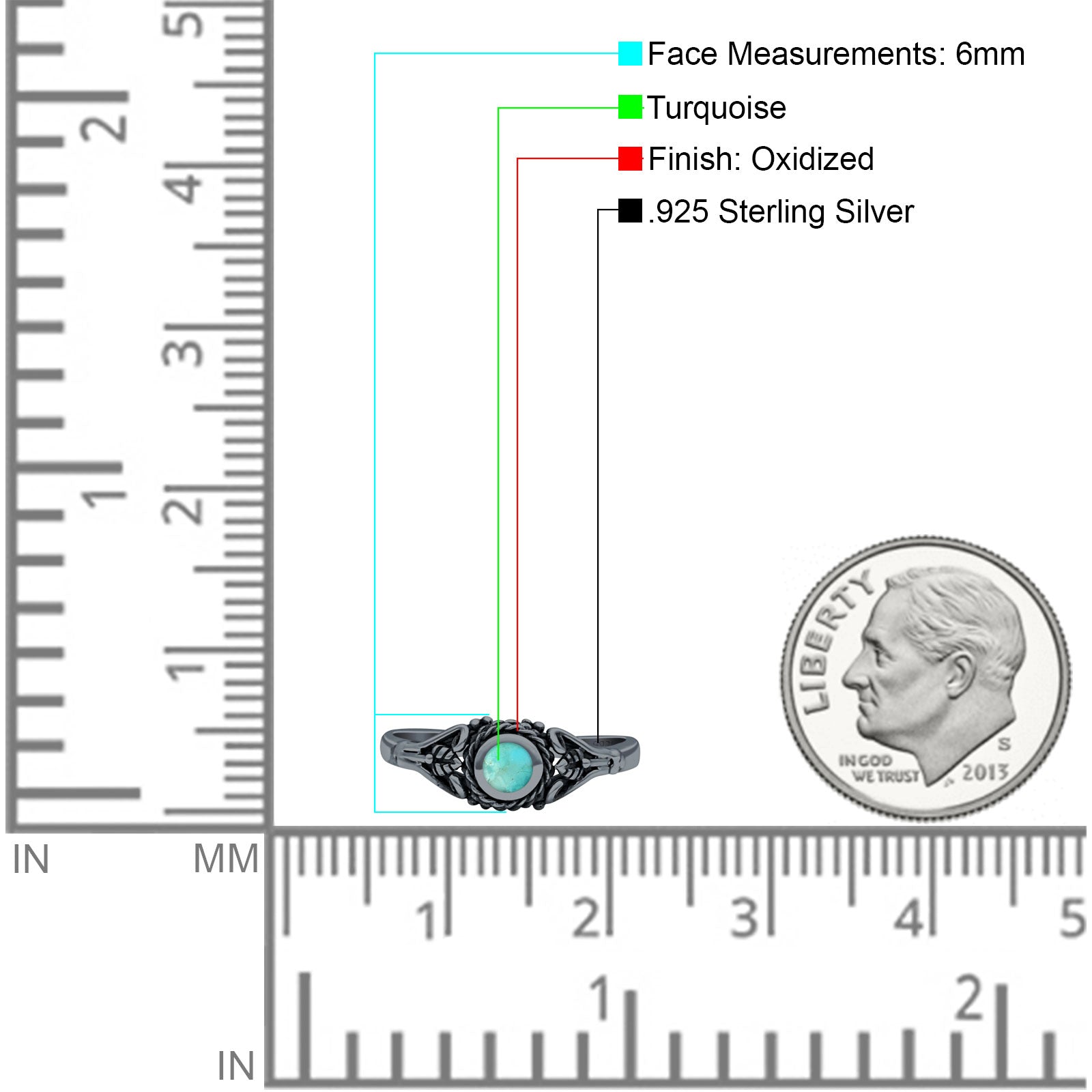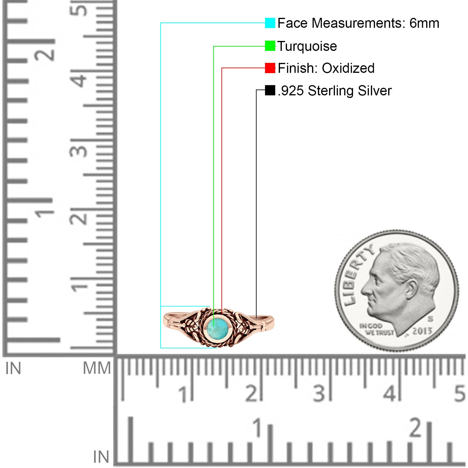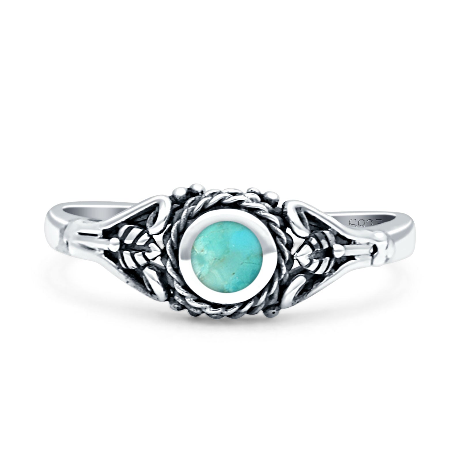 Minimalist 6mm Lab Created Blue Opal Twisted Rope & Leaf Oxidized Ring 925 Sterling Silver
