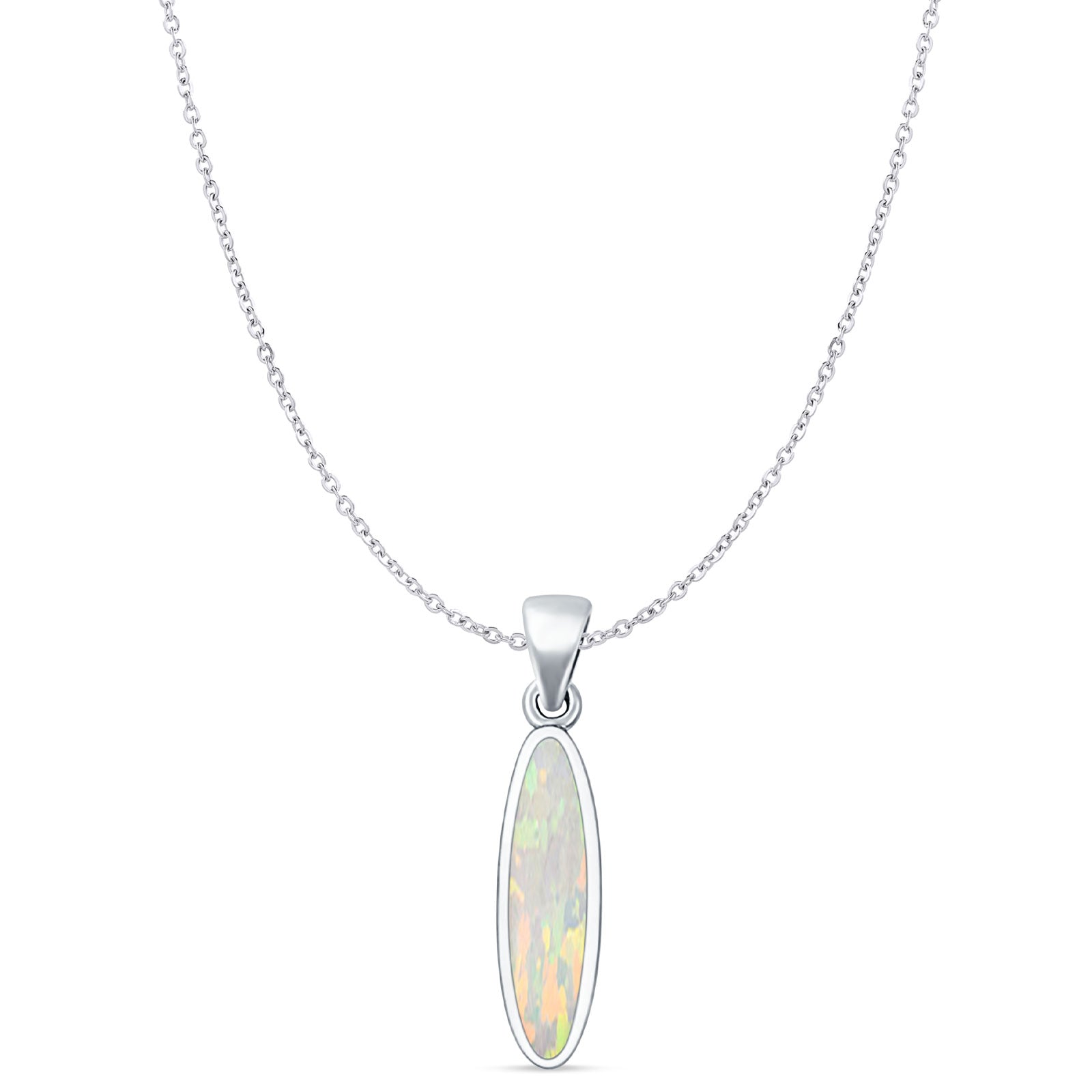 Style: Oval Lab Created White Opal Pendant Necklace