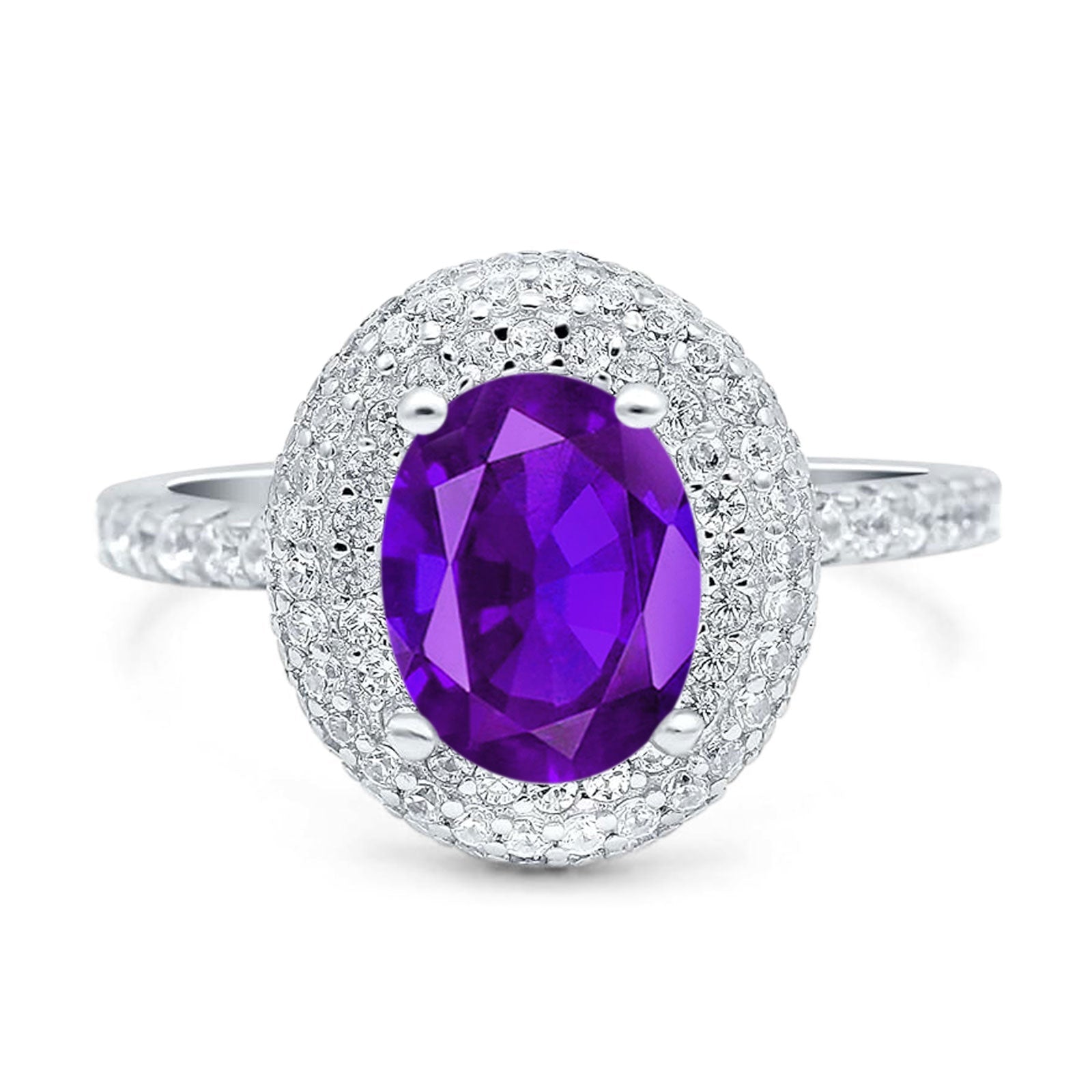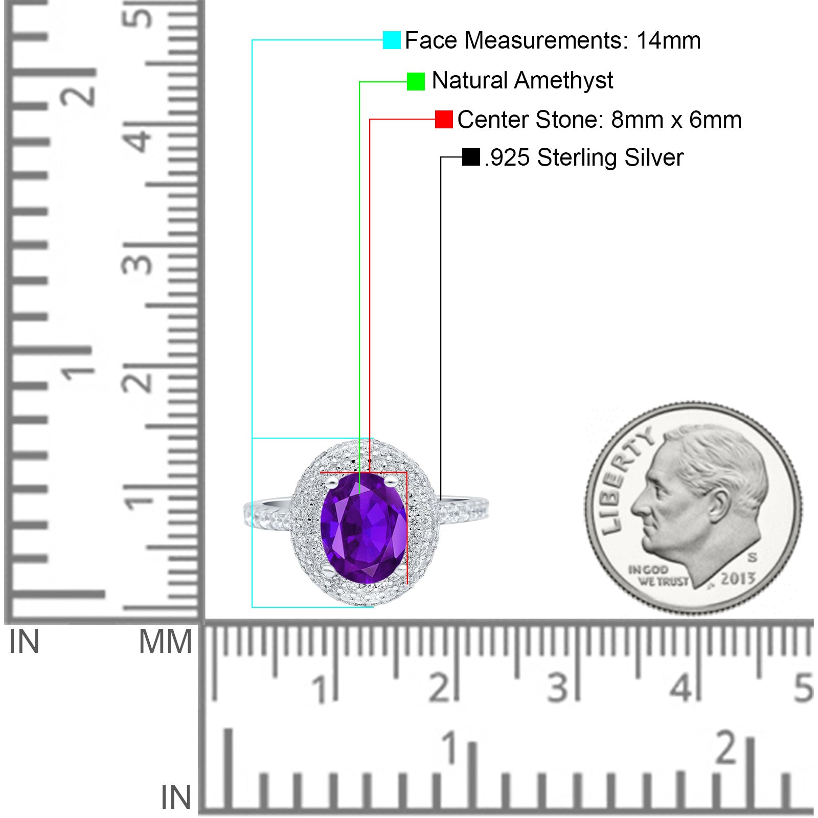Oval Natural Amethyst Double Halo CZ Ring 925 Sterling Silver