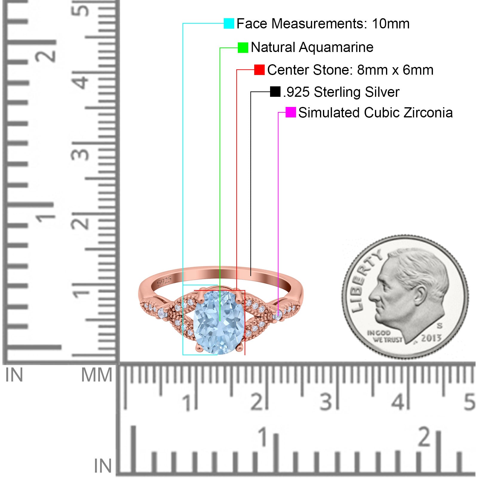 Side Stone: Cubic Zirconia (CZ).