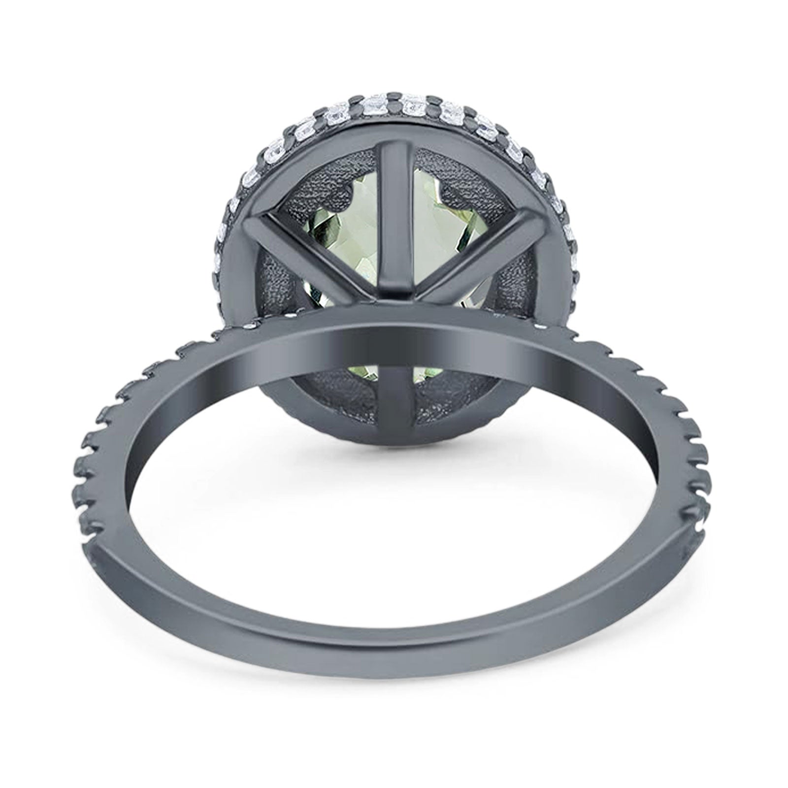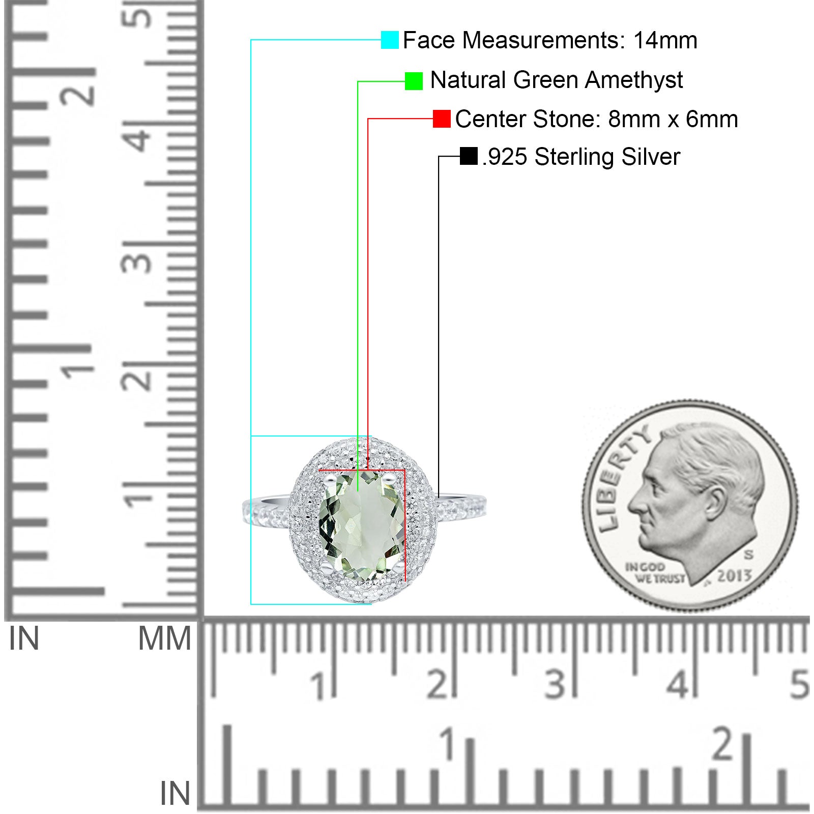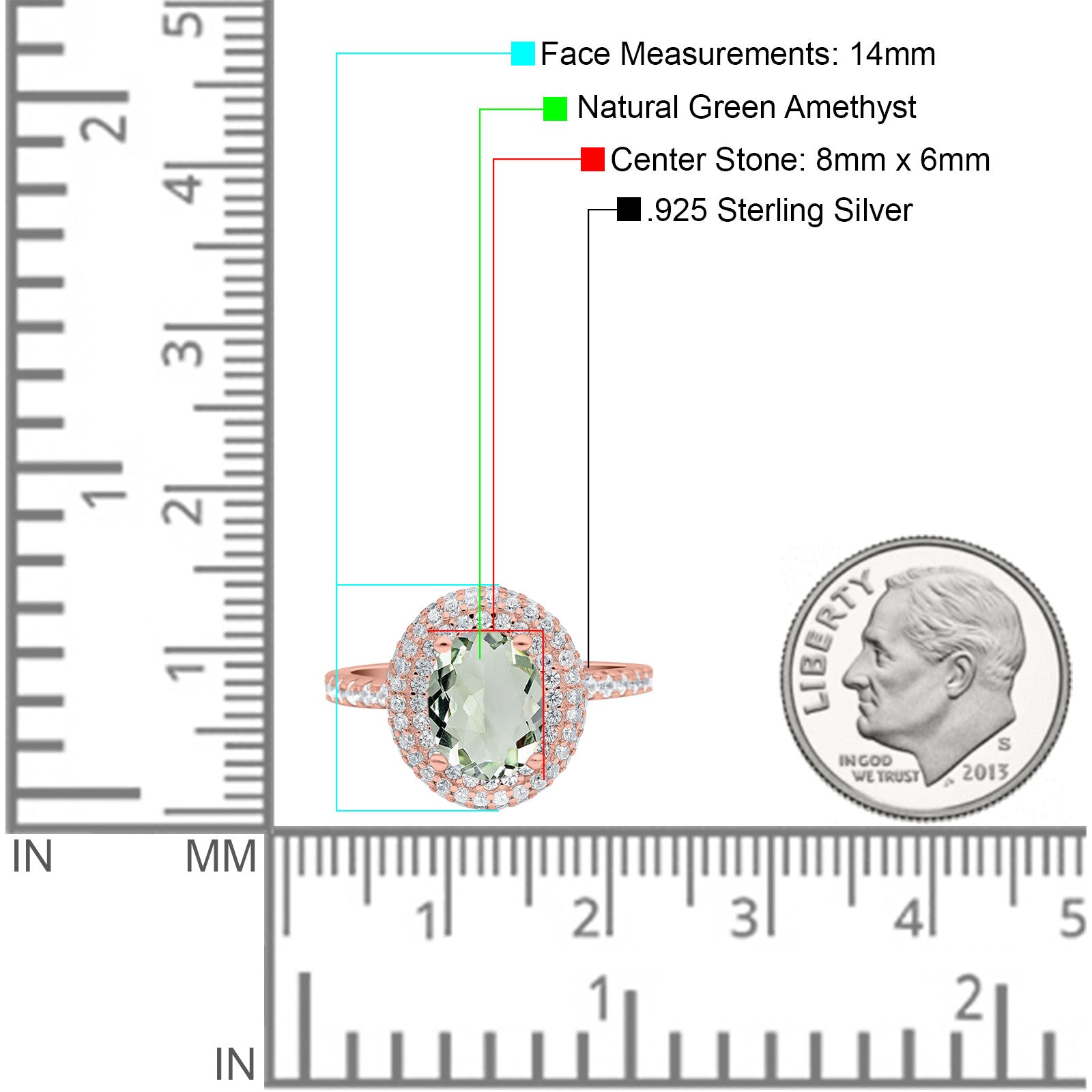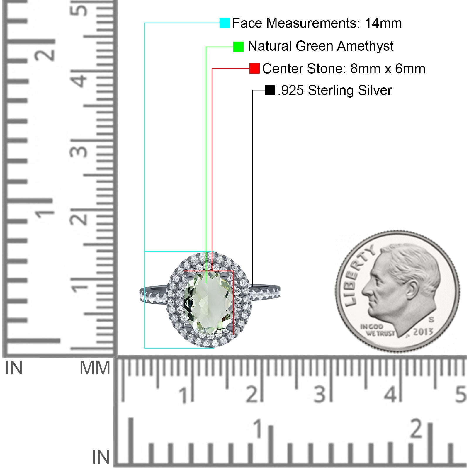 Oval Natural Green Amethyst Prasiolite Double Halo CZ Ring 925 Sterling Silver