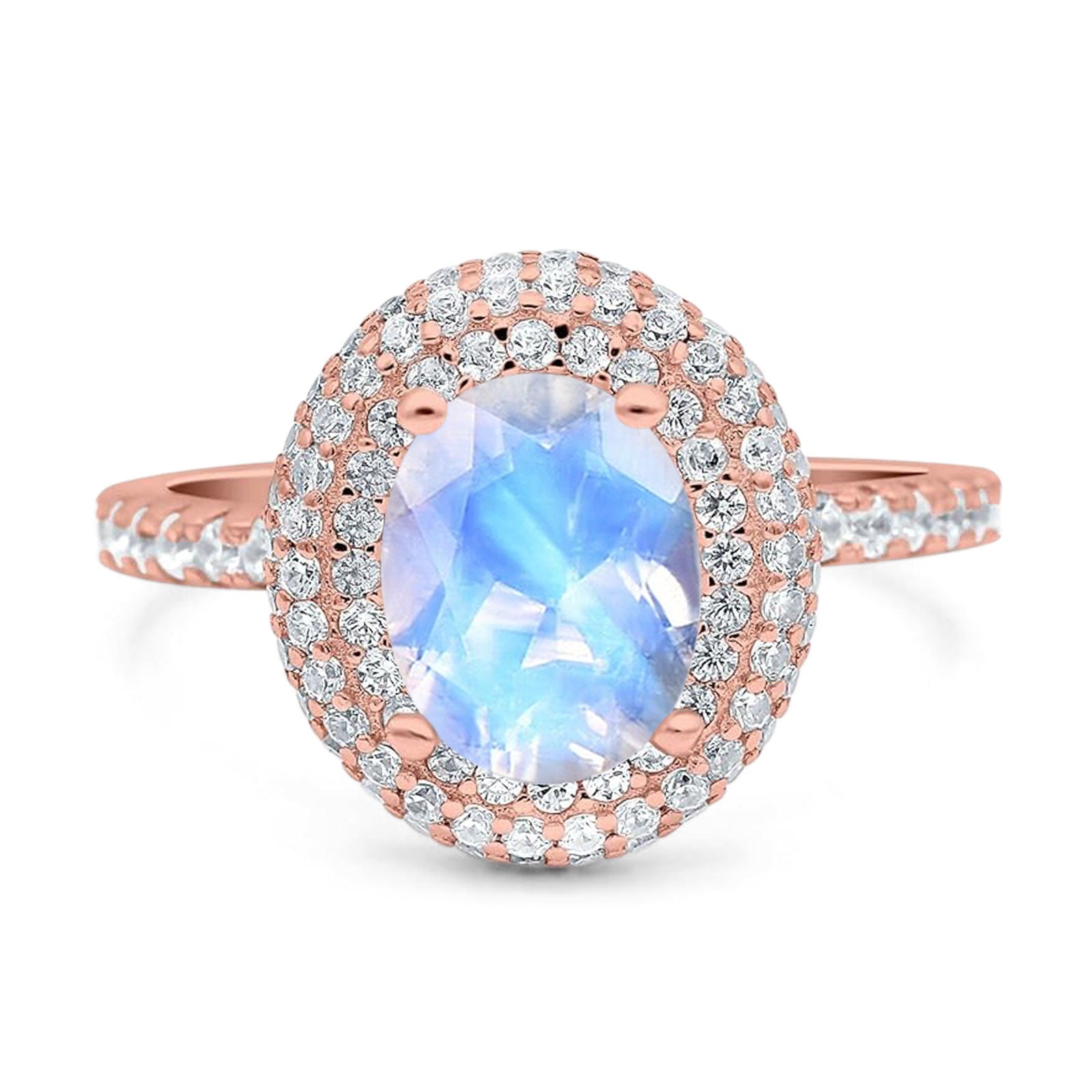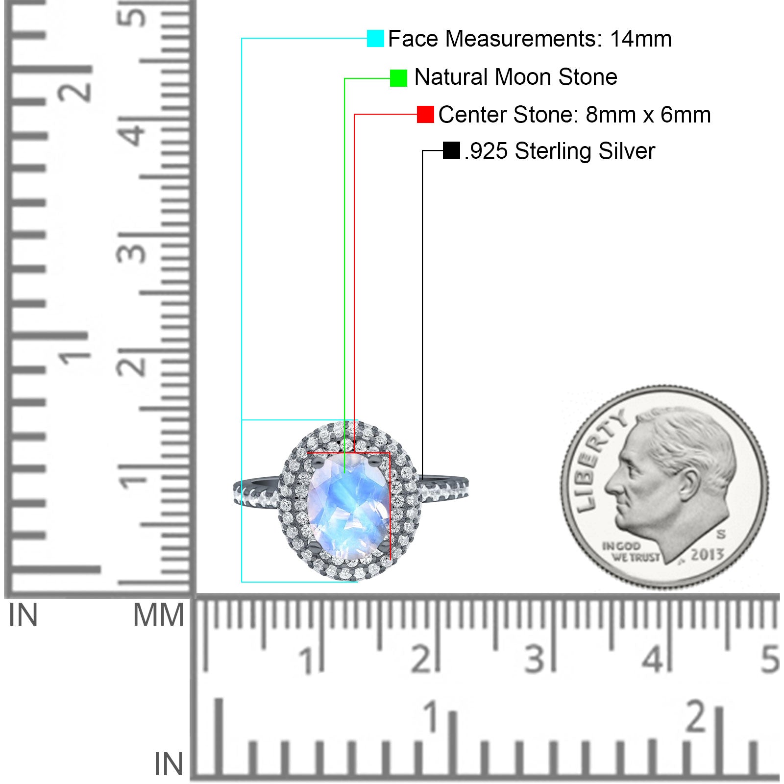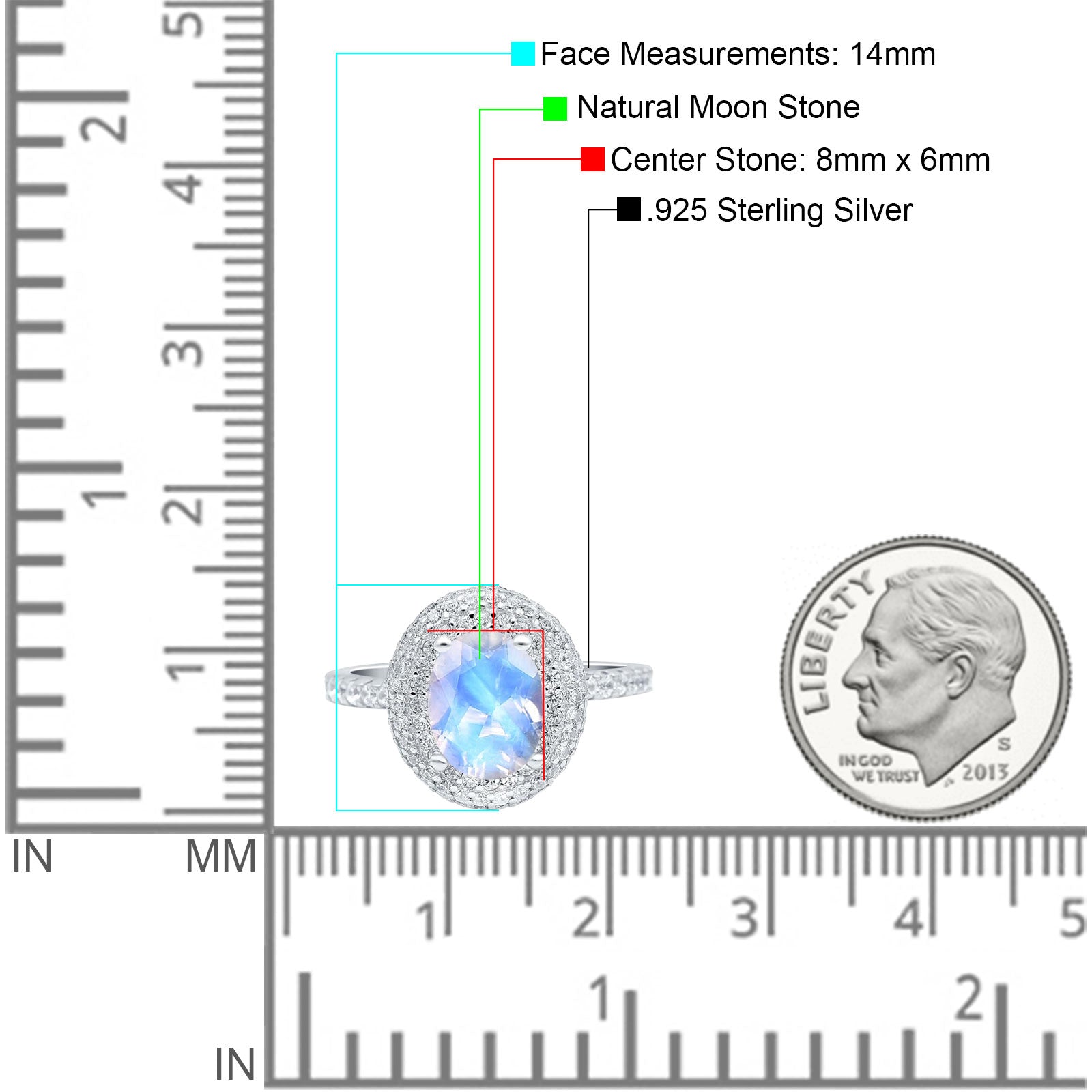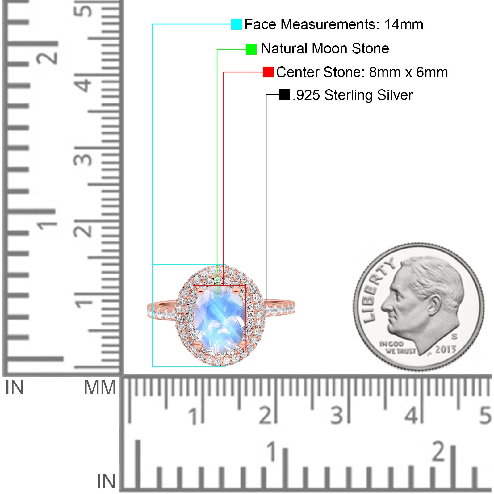 Oval Natural Moonstone Double Halo CZ Ring 925 Sterling Silver