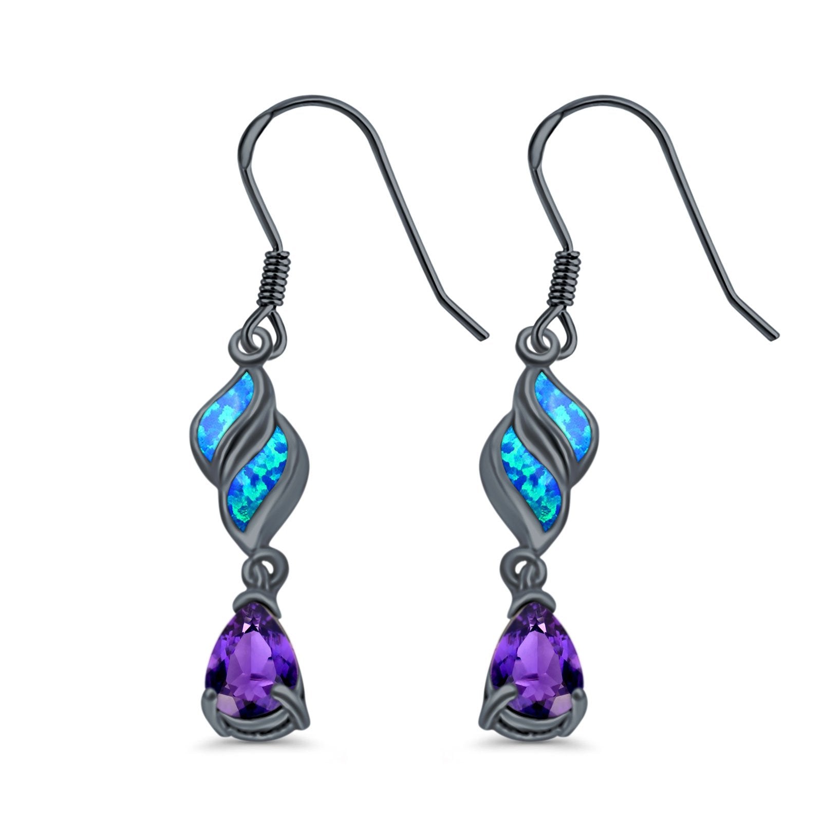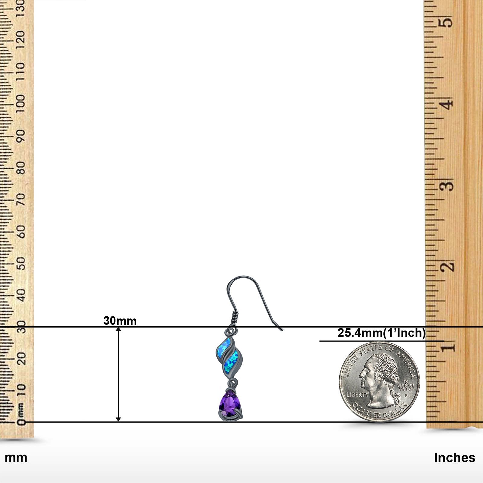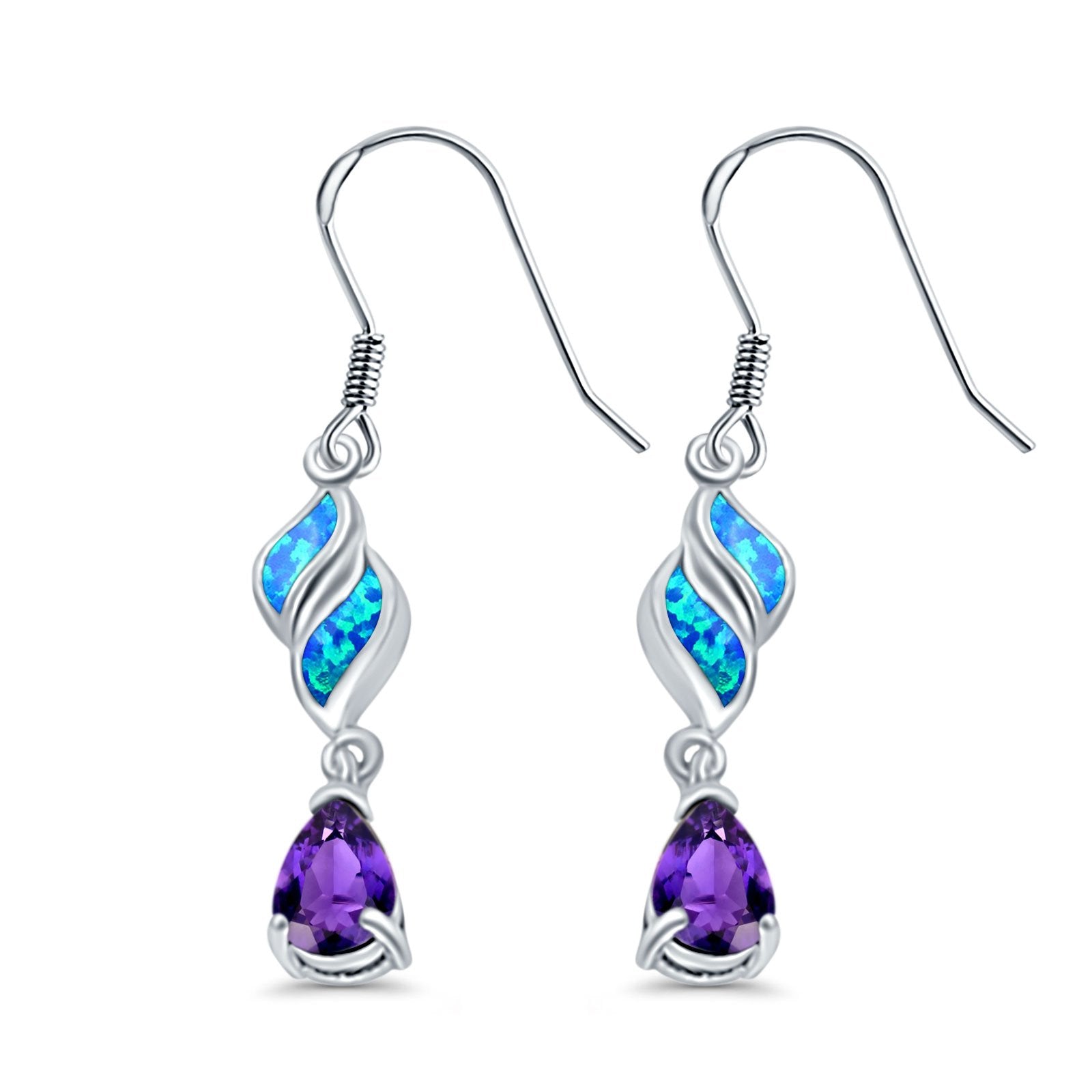Pear Amethyst Drop Dangle Earrings Created Opal Simulated CZ 925 Sterling Silver (30mm)