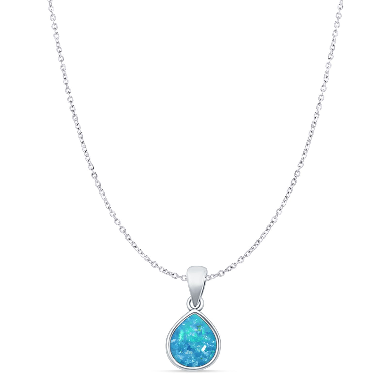 Style: Pear Lab Created Blue Opal Solitaire Pendant Necklace