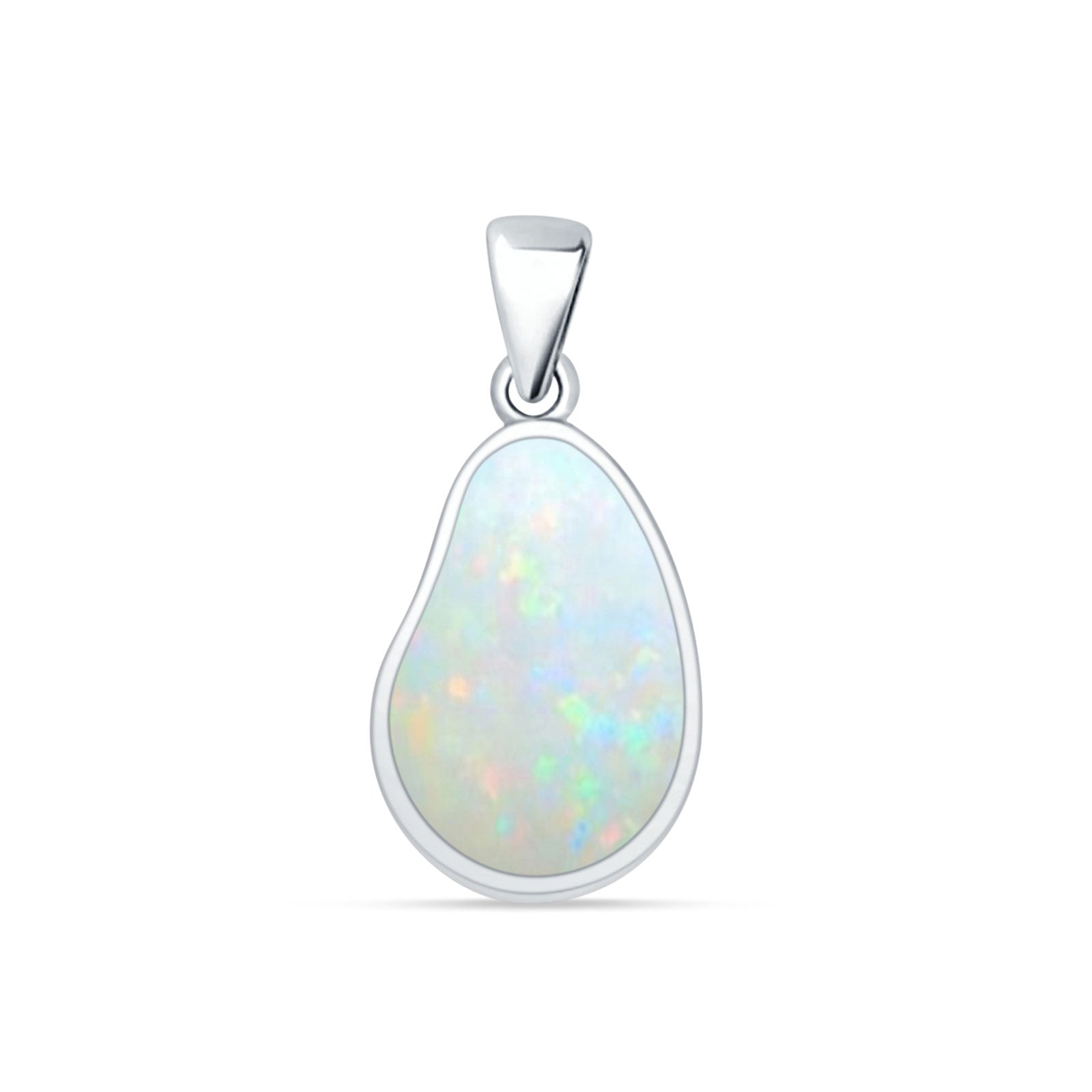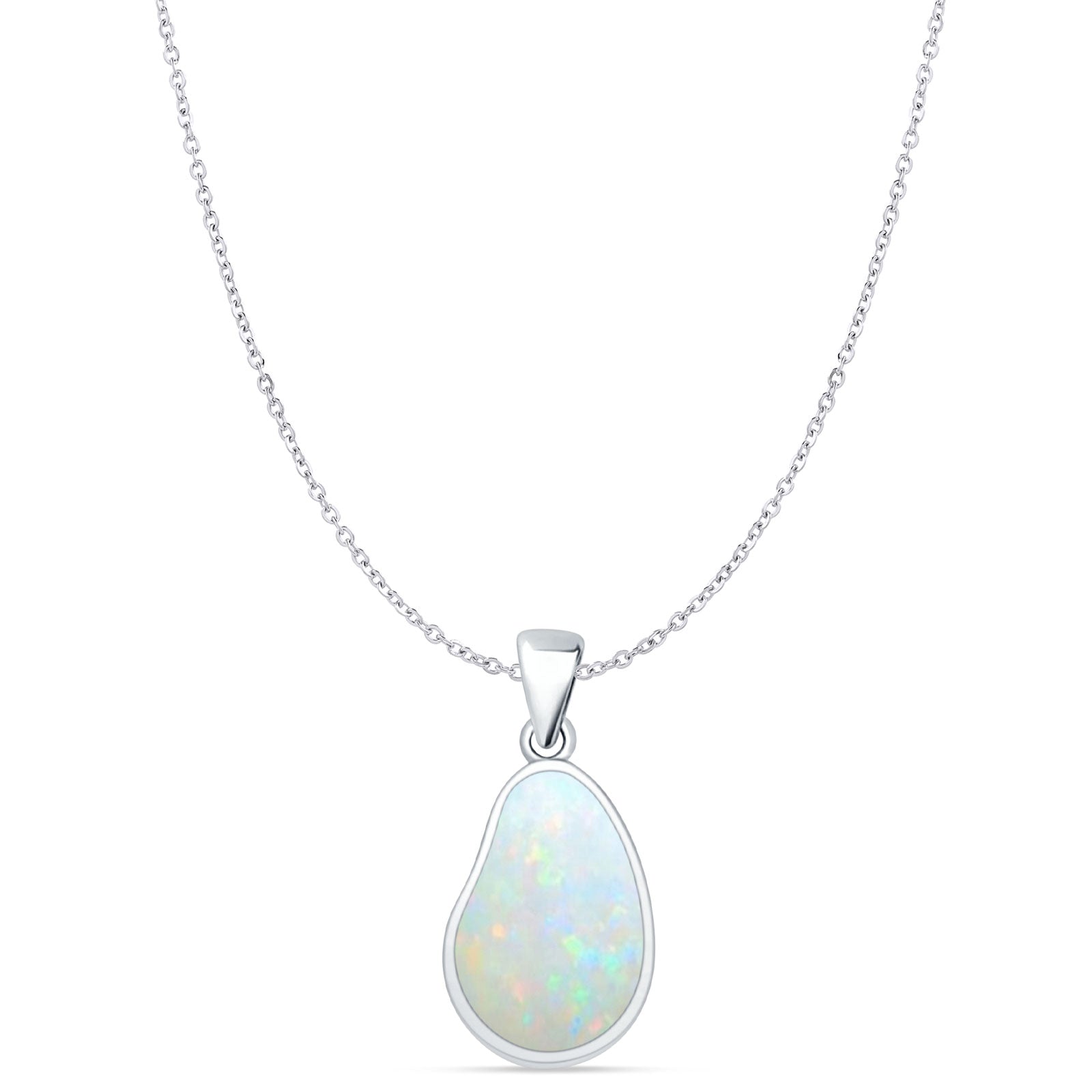 Style: Lab Created White Opal Solitaire Pendant Necklace