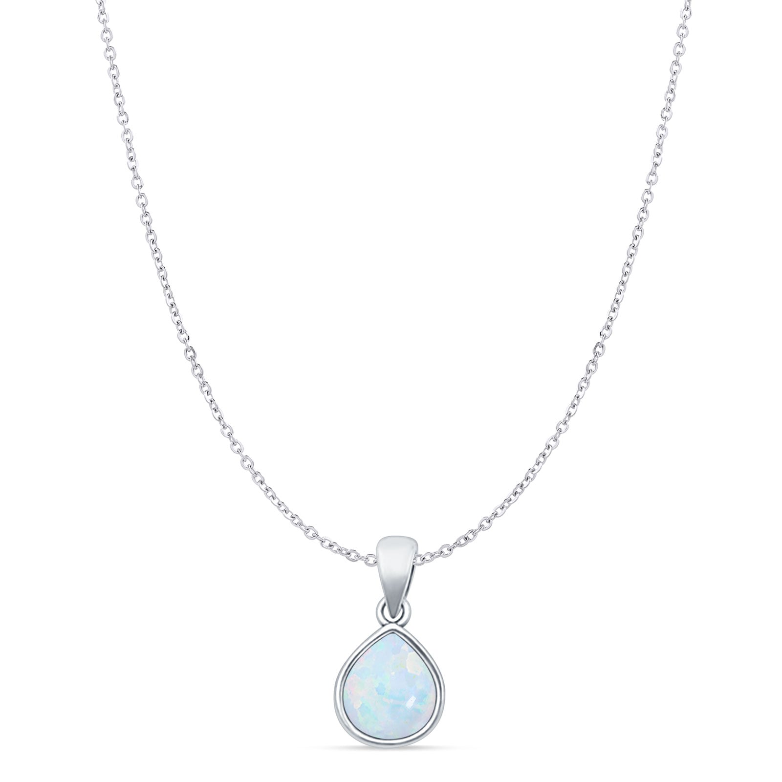 Style: Pear Lab Created White Opal Solitaire Pendant Necklace