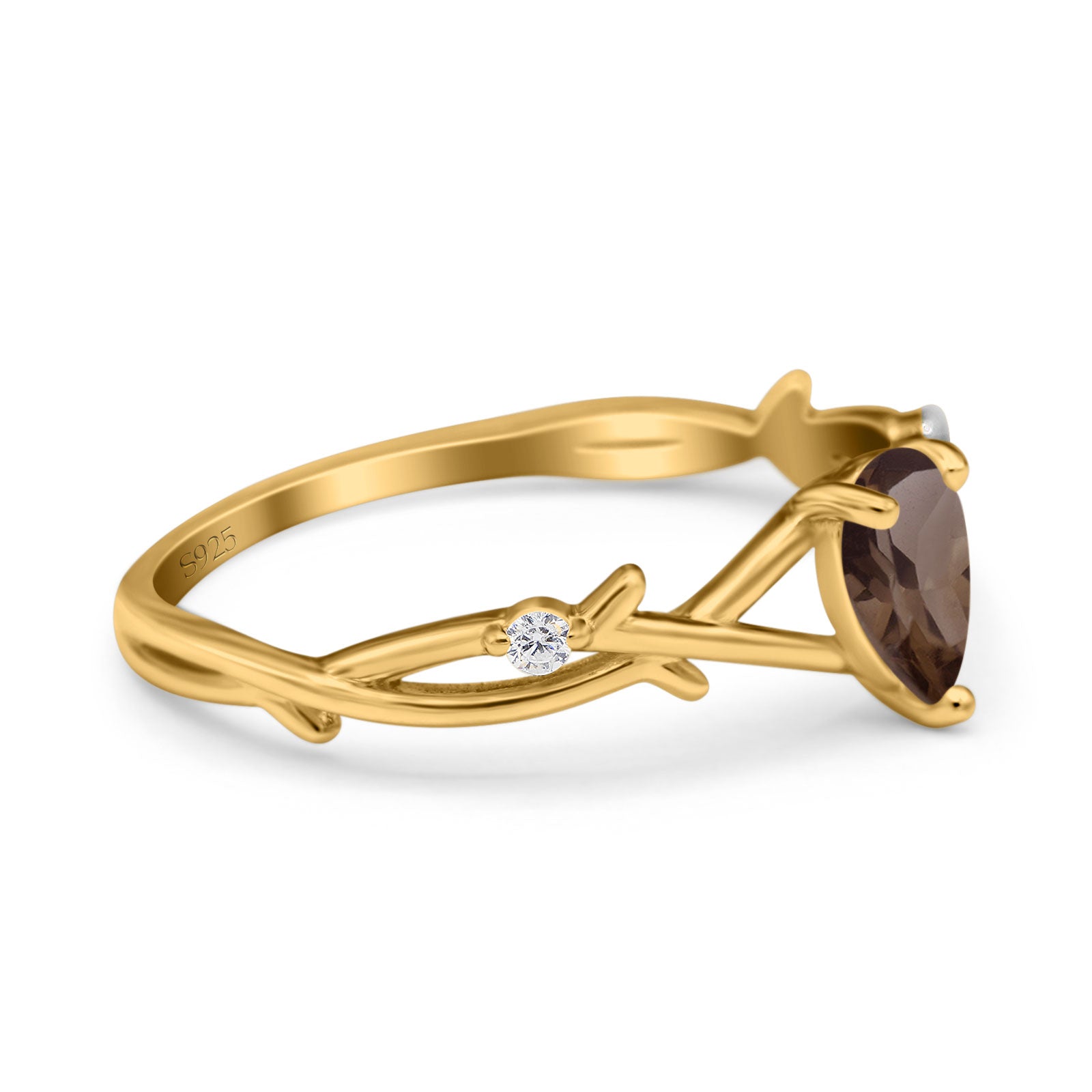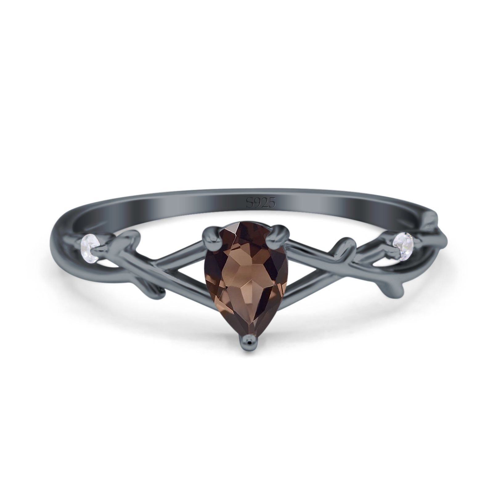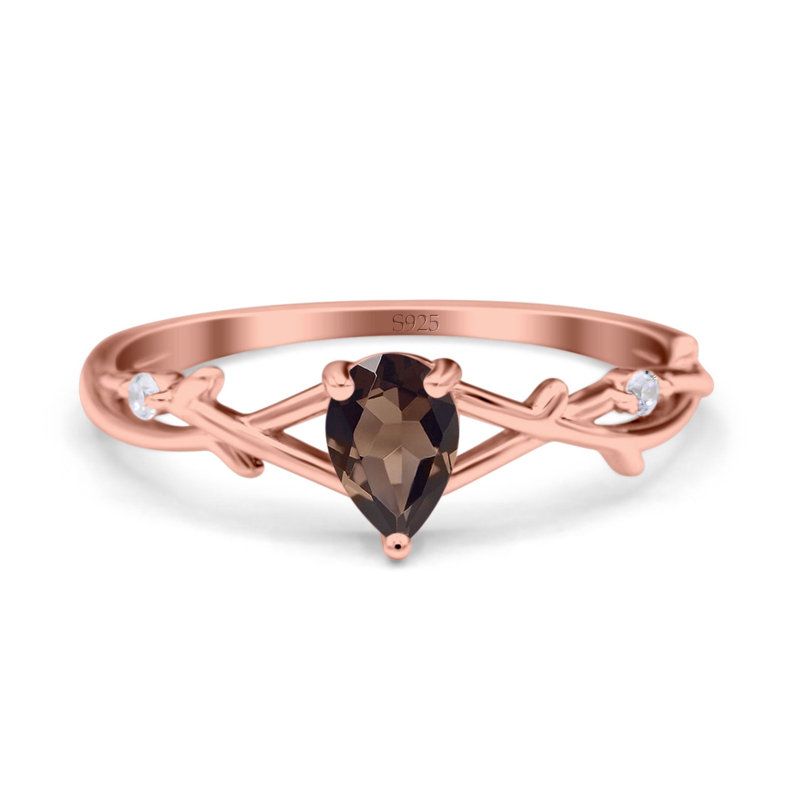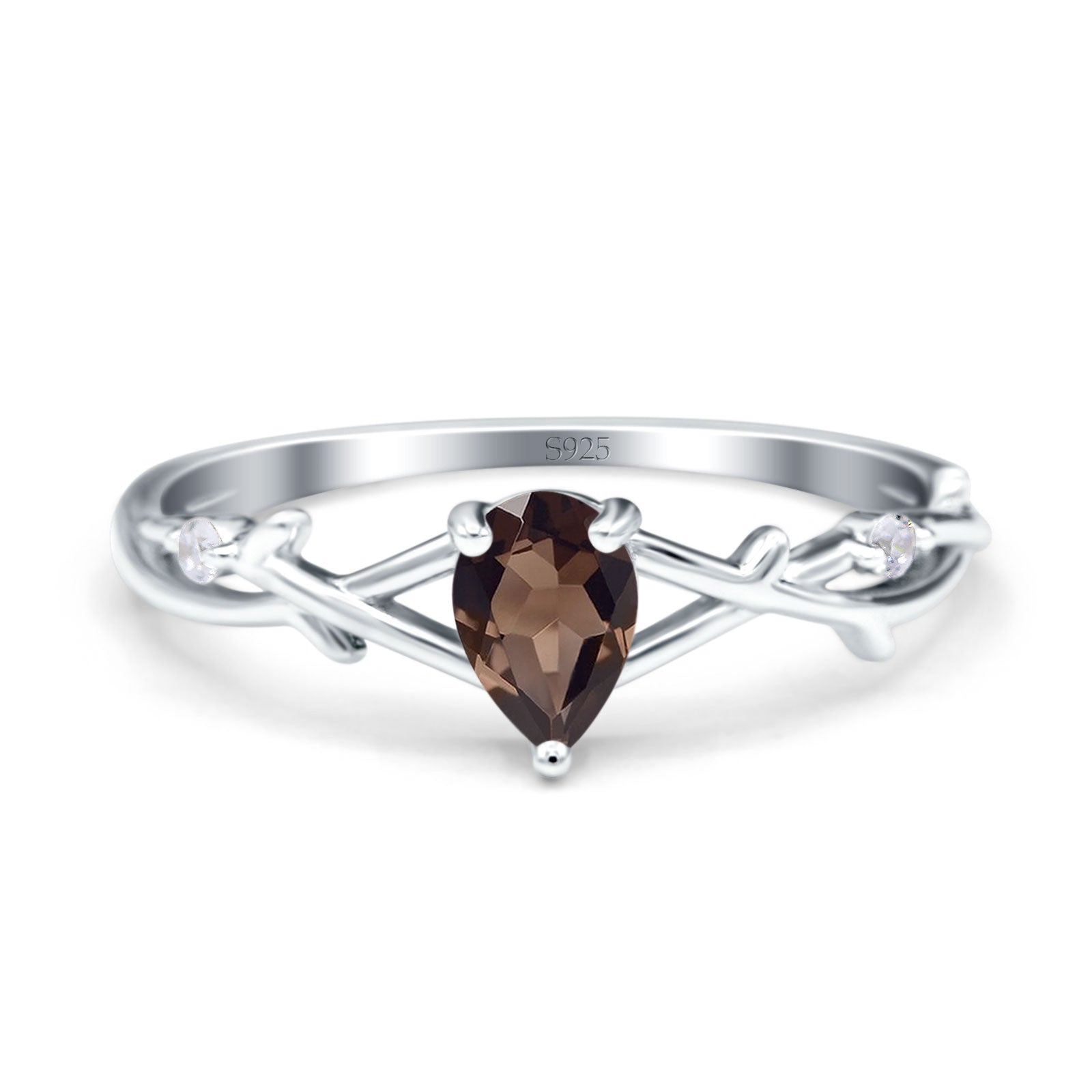 Pear Teardrop Natural Chocolate Smoky Quartz Infinity Shank Ring 925 Sterling Silver