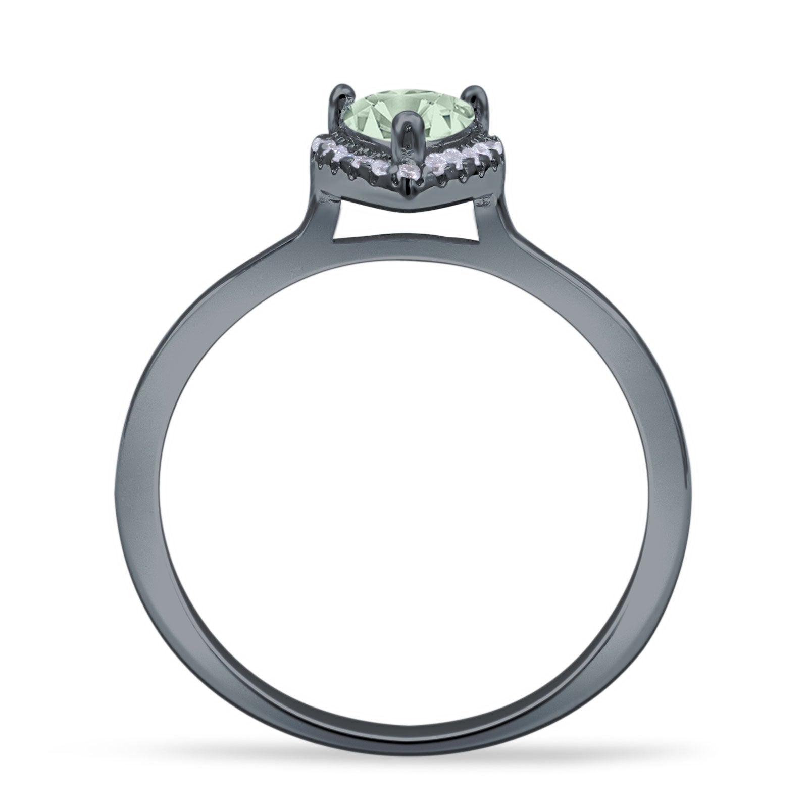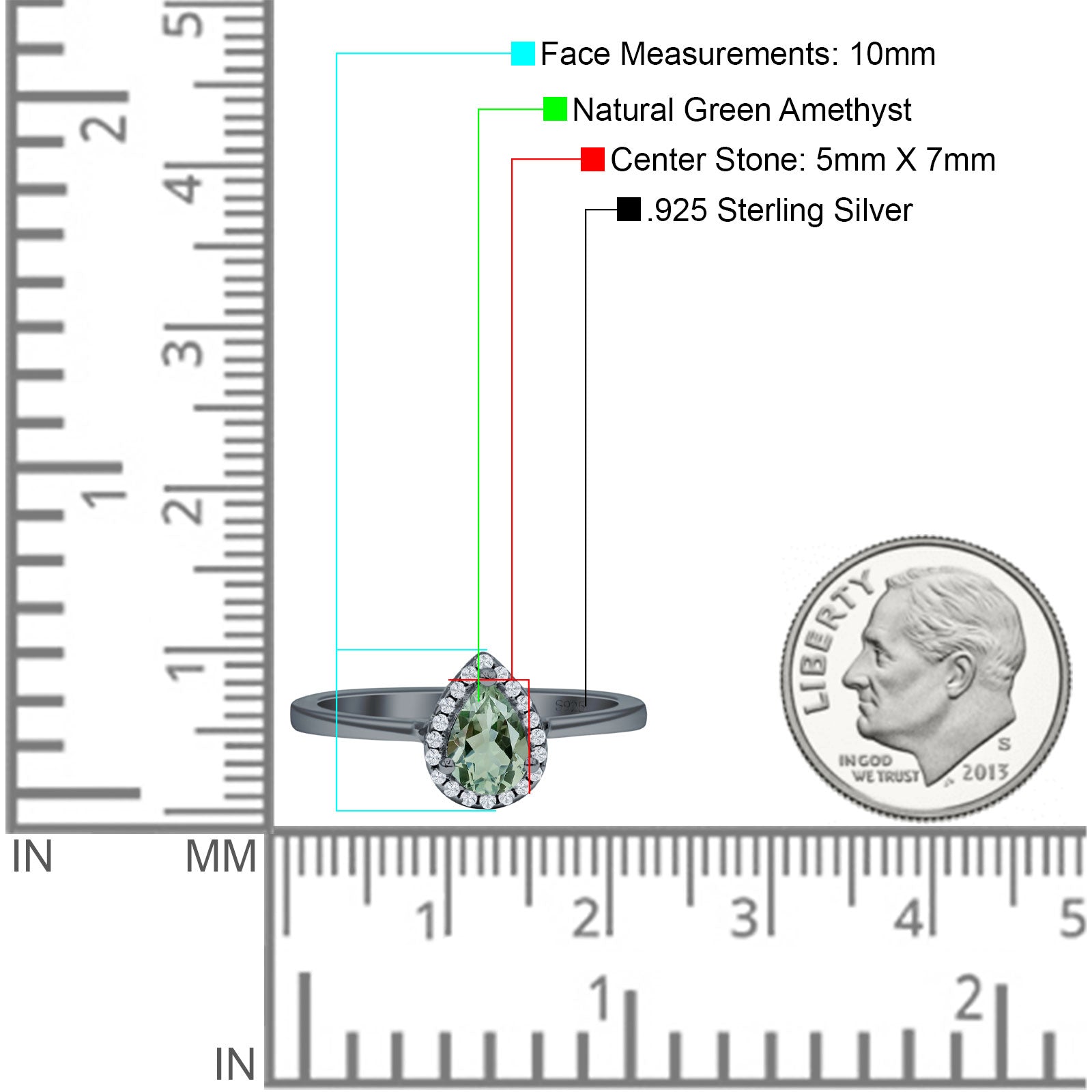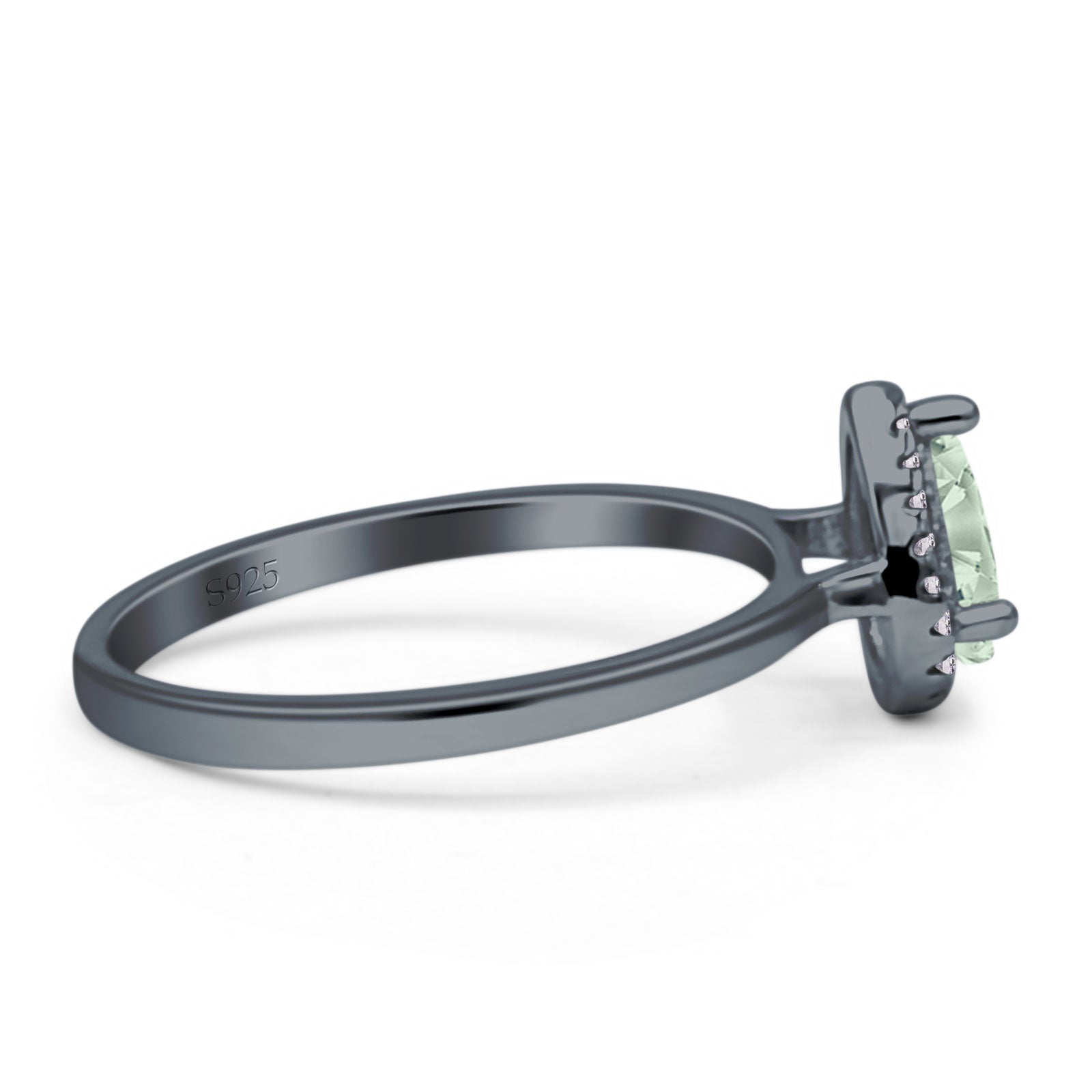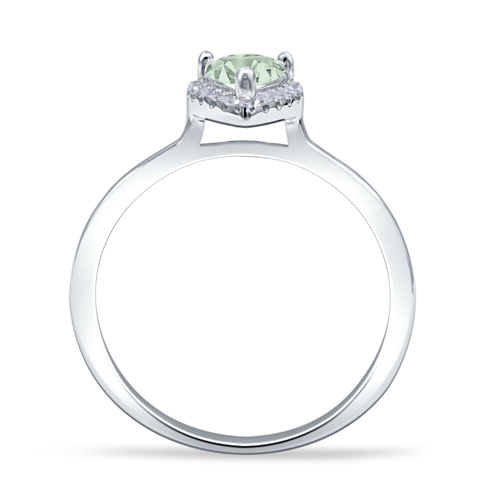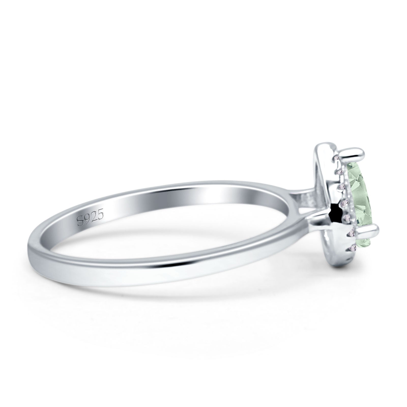 Pear Teardrop Natural Green Amethyst Prasiolite Halo Solitaire Ring 925 Sterling Silver