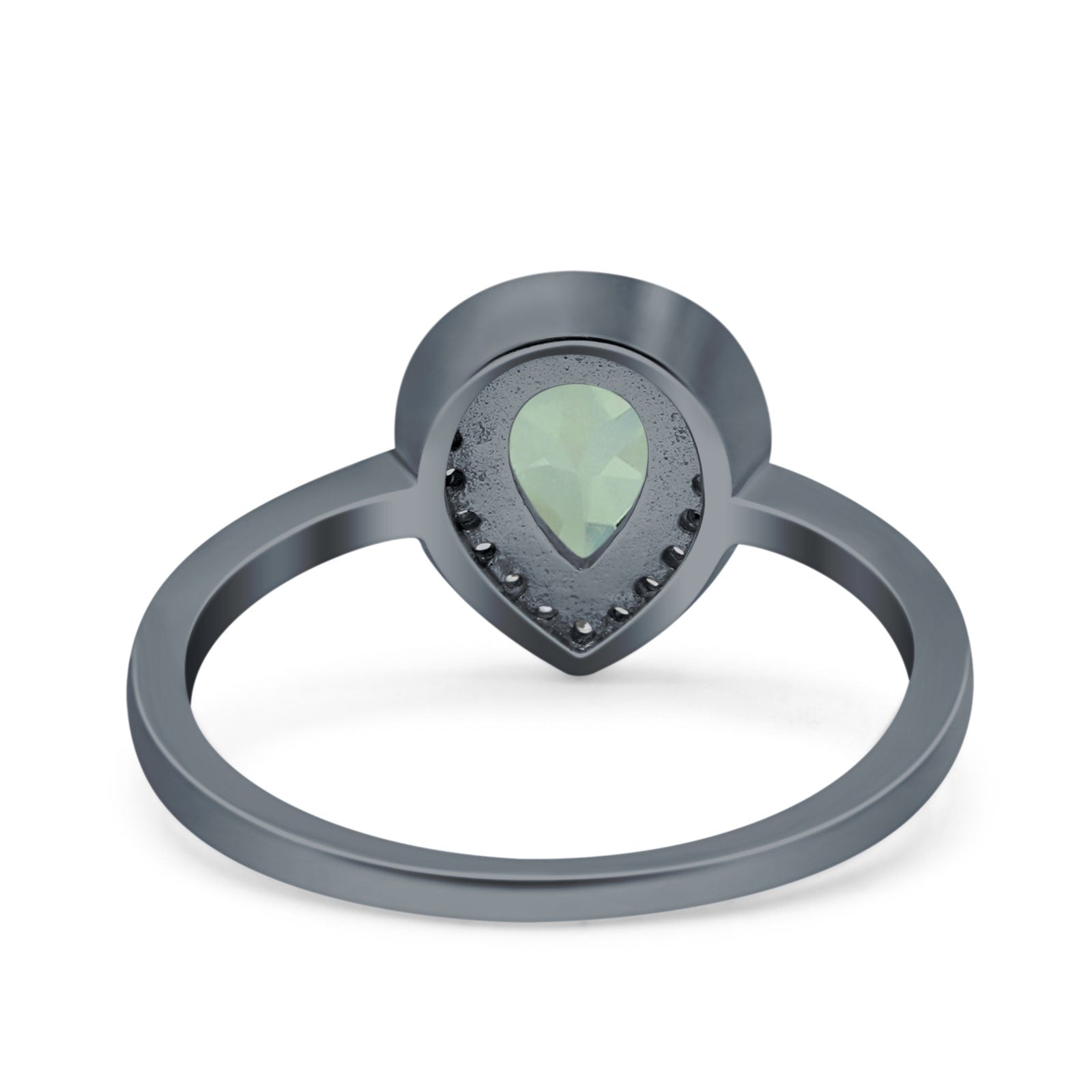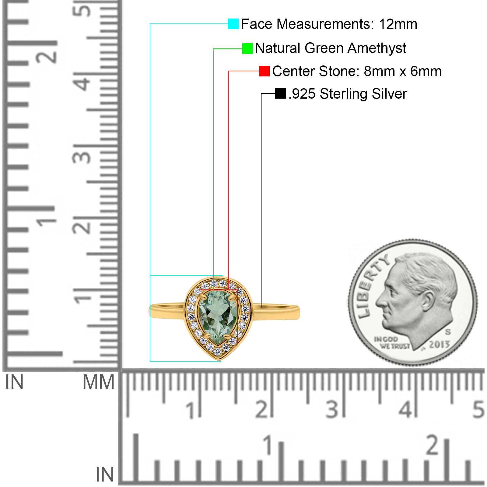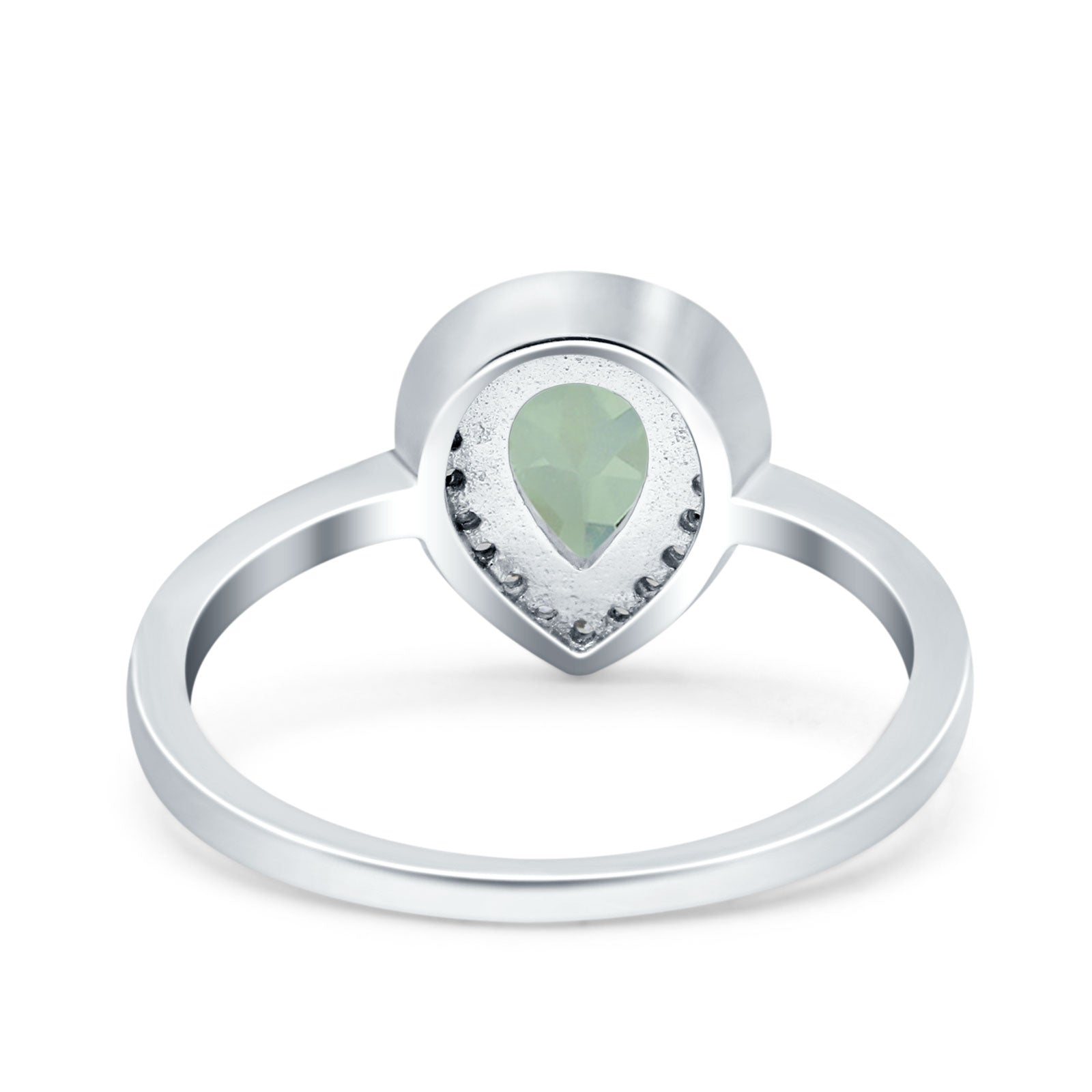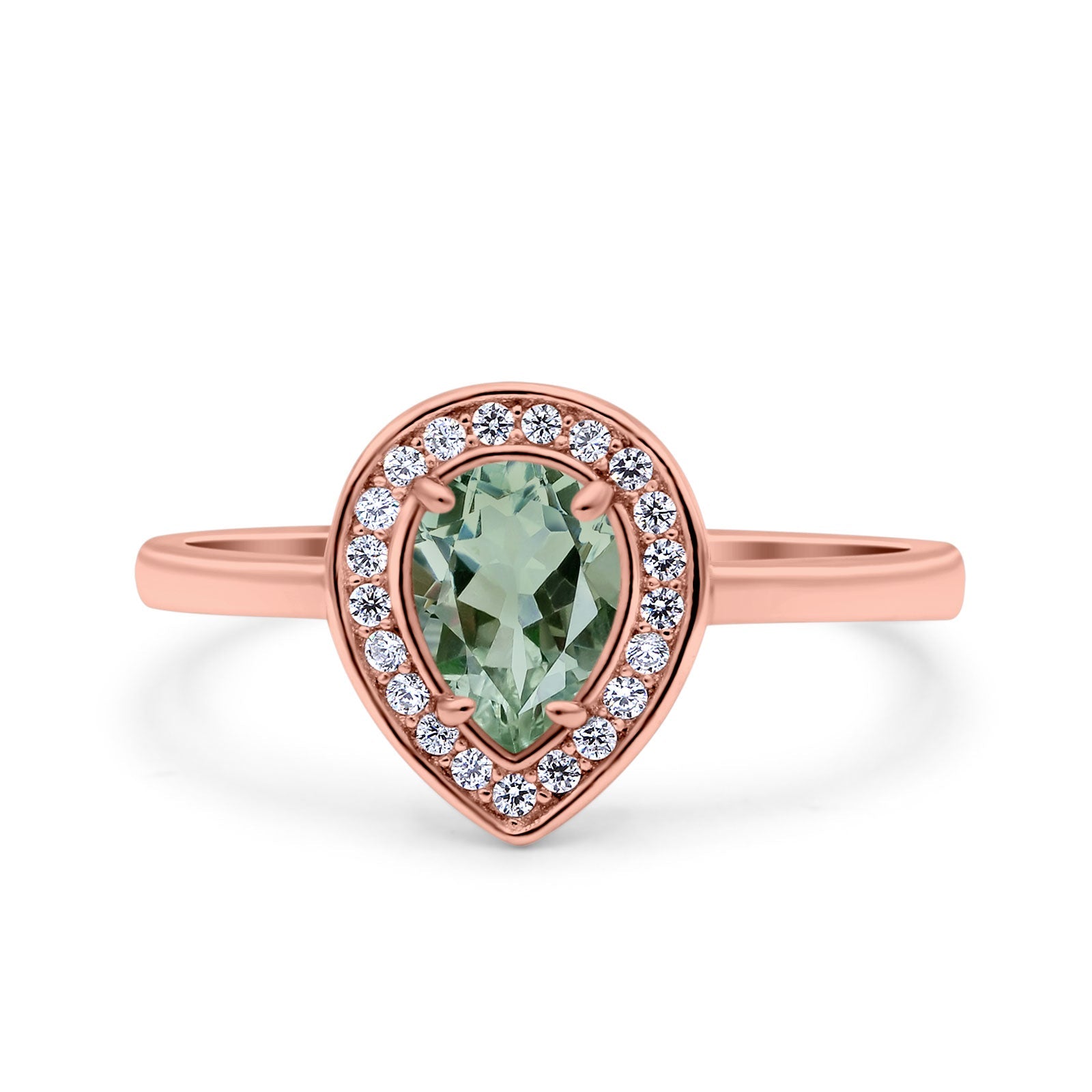 Pear Teardrop Natural Green Amethyst Prasiolite Halo Wedding Ring 925 Sterling Silver