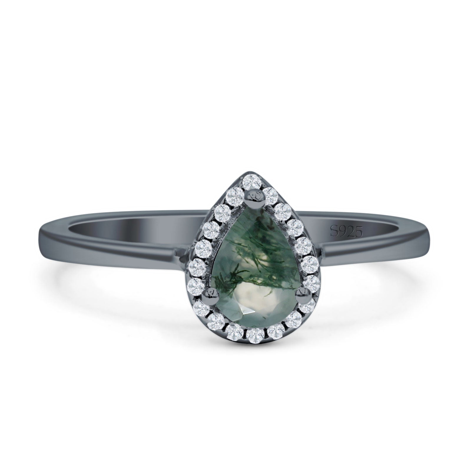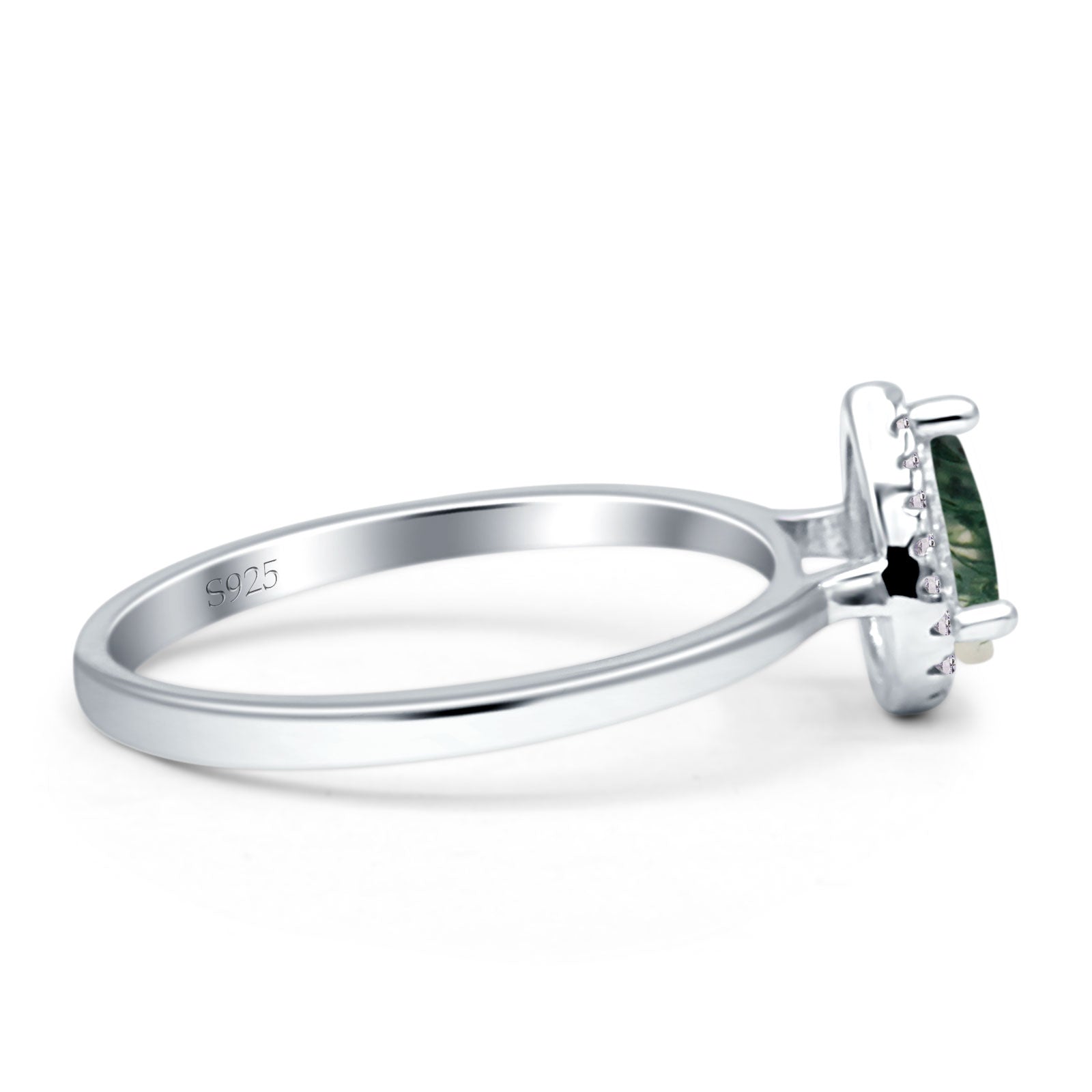 Product Description:Immerse yourself in the grace of bygone eras with our pear teardrop natural Green Moss Agate halo solitaire ring. Crafted from 925 sterling silver, this piece captures the romance of the art deco movement, featuring a luscious natural Green Moss Agate in a pear teardrop cut, embraced by a halo of delicately set accents.