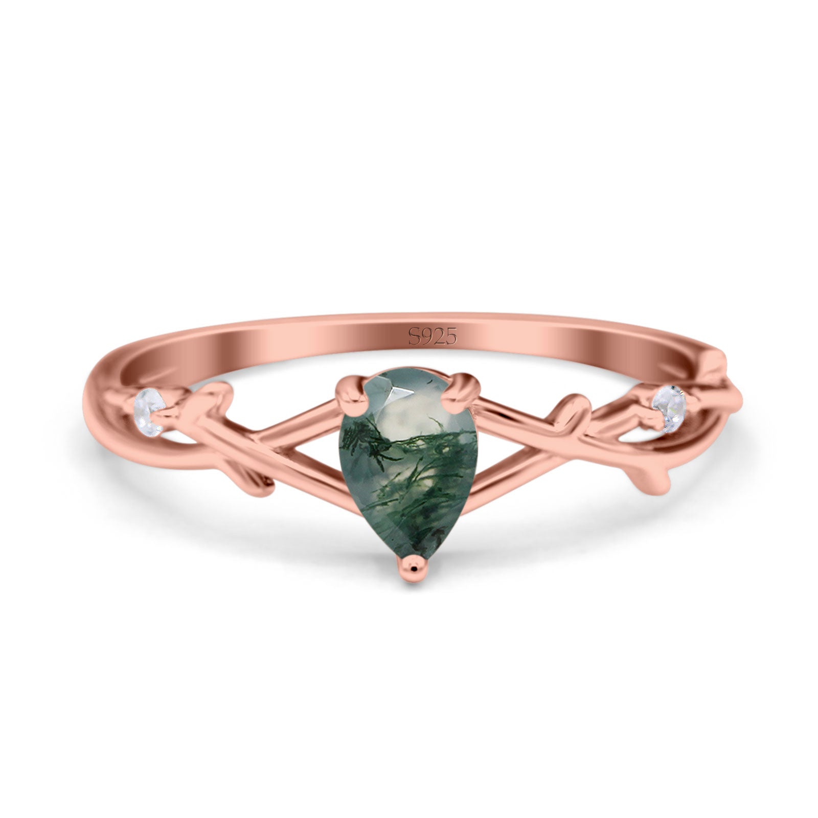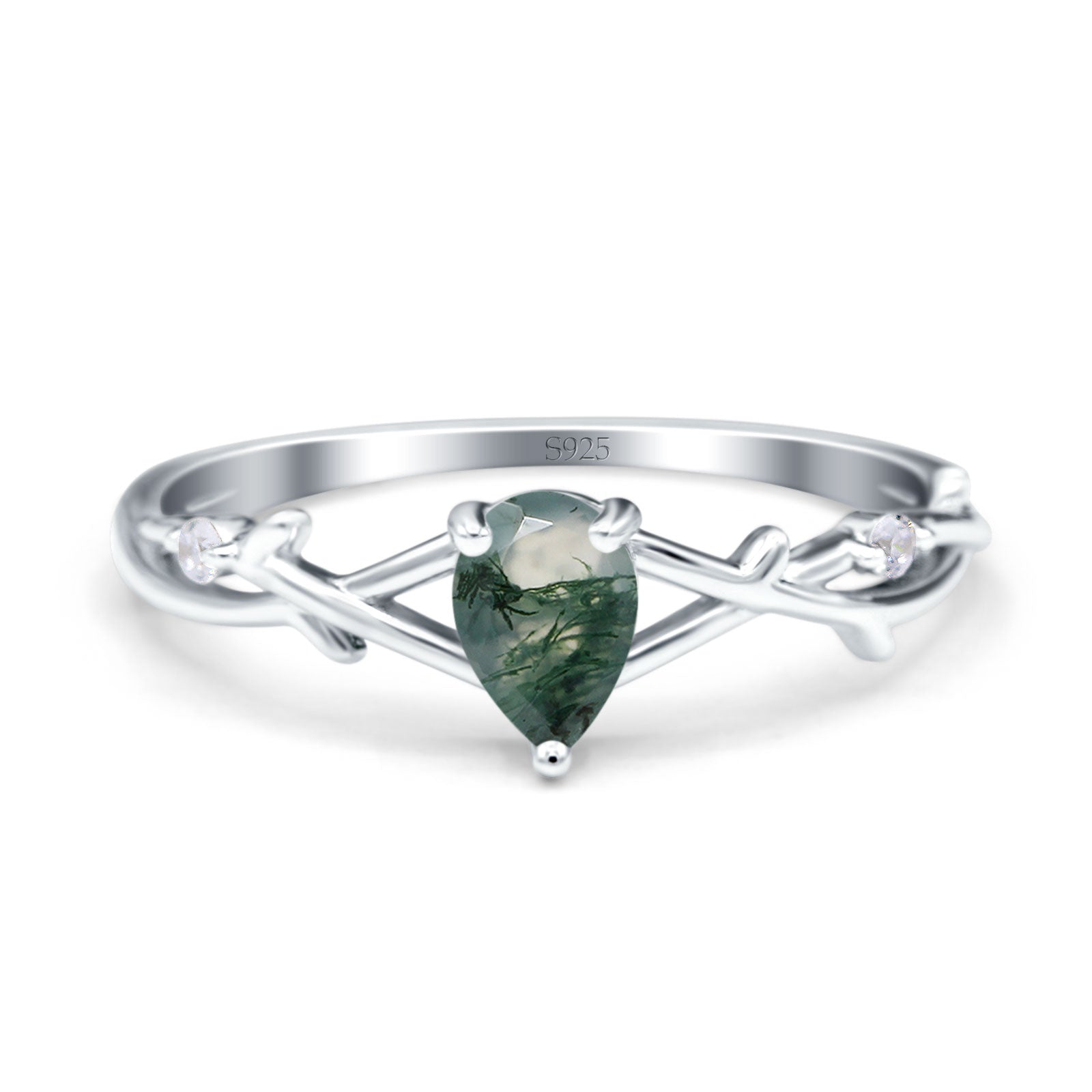 -Pear Teardrop Natural Green Moss Agate Gemstone.