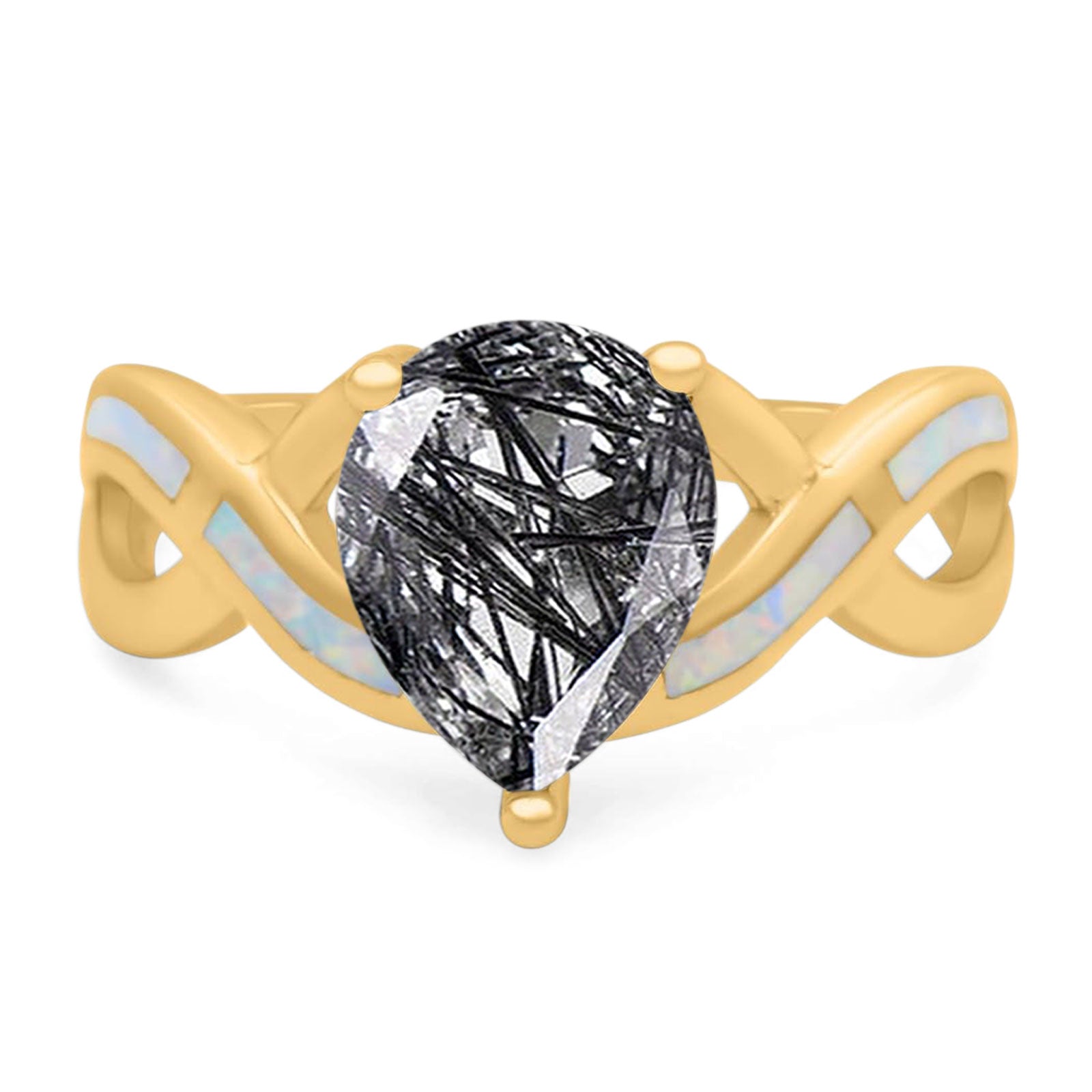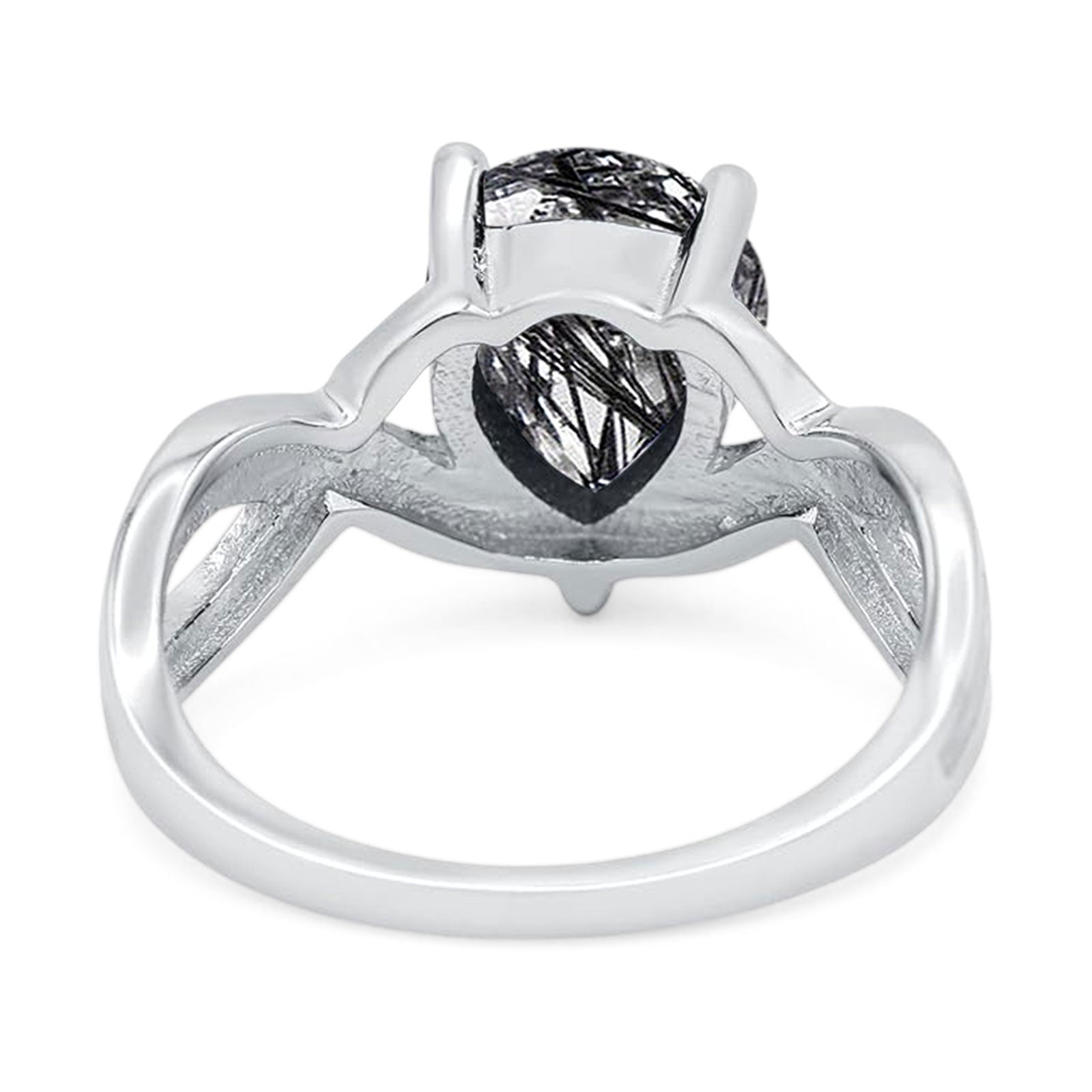 Pear Teardrop Natural Rutilated Quartz Infinity Twisted Ring 925 Sterling Silver