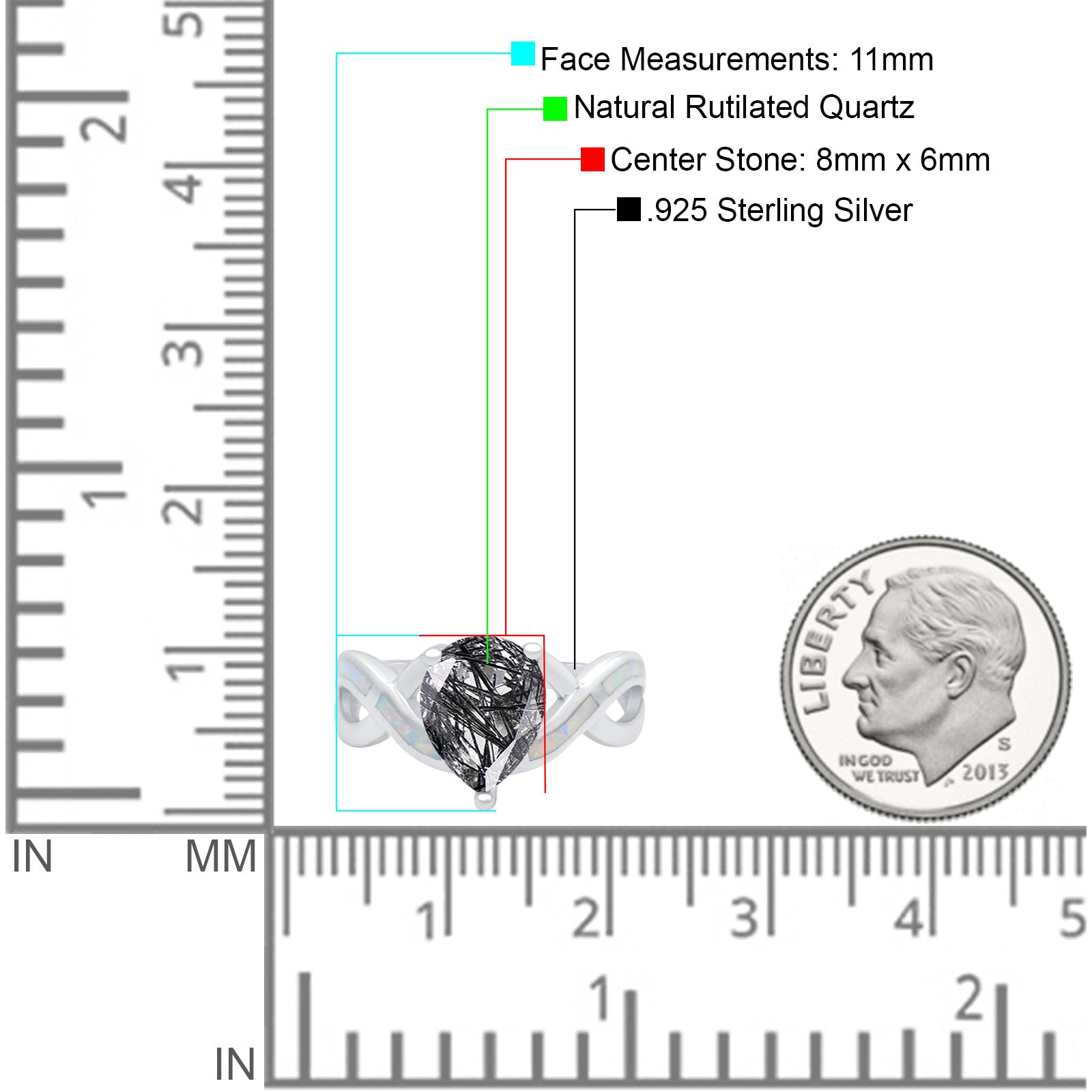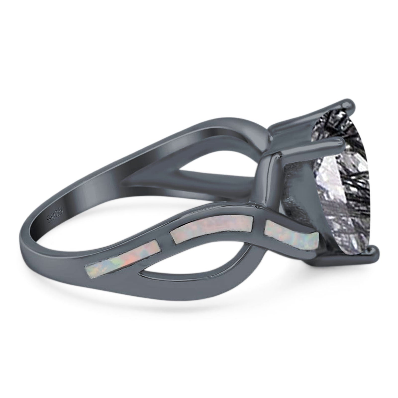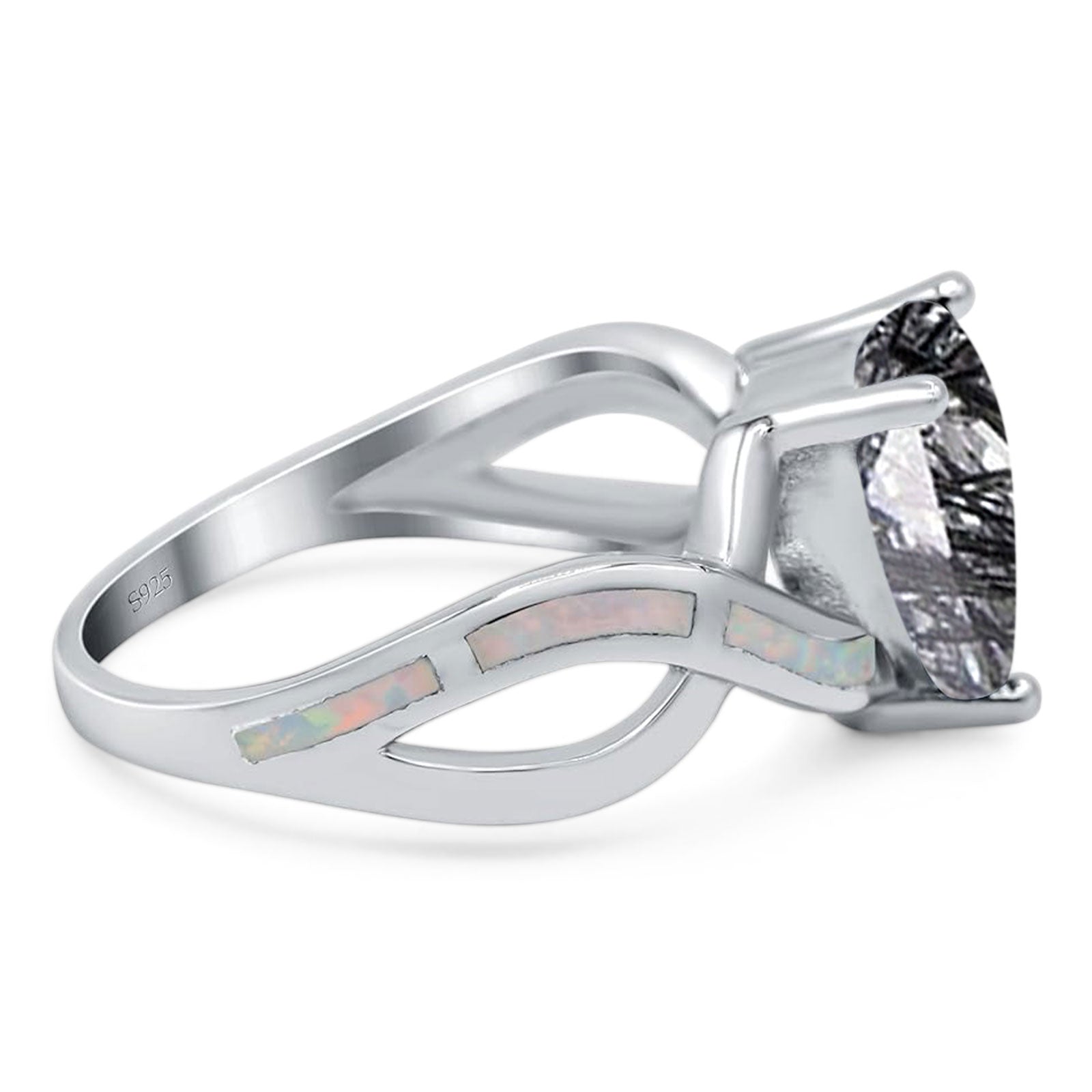 Side Stone: Lab Created White Opal.