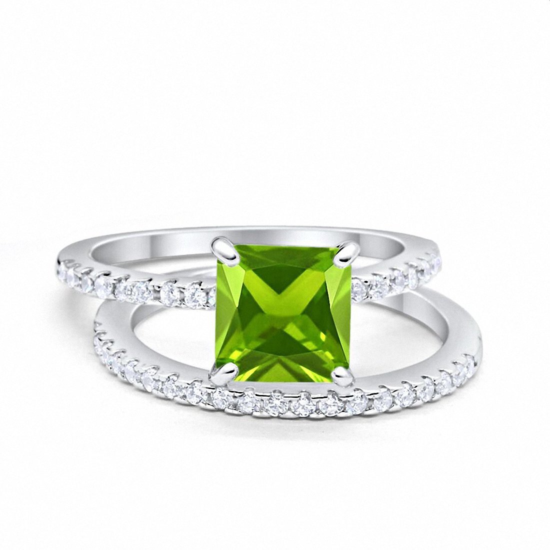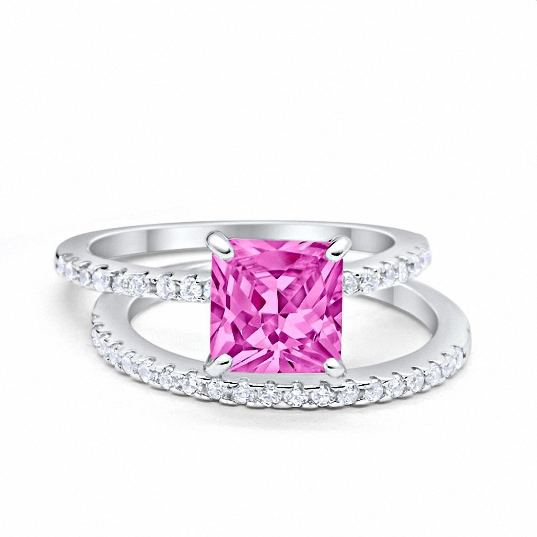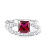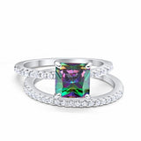 Two Piece Wedding Engagement Ring Band Asscher Cut Simulated Cubic Zirconia 925 Sterling Silver Choose Color
