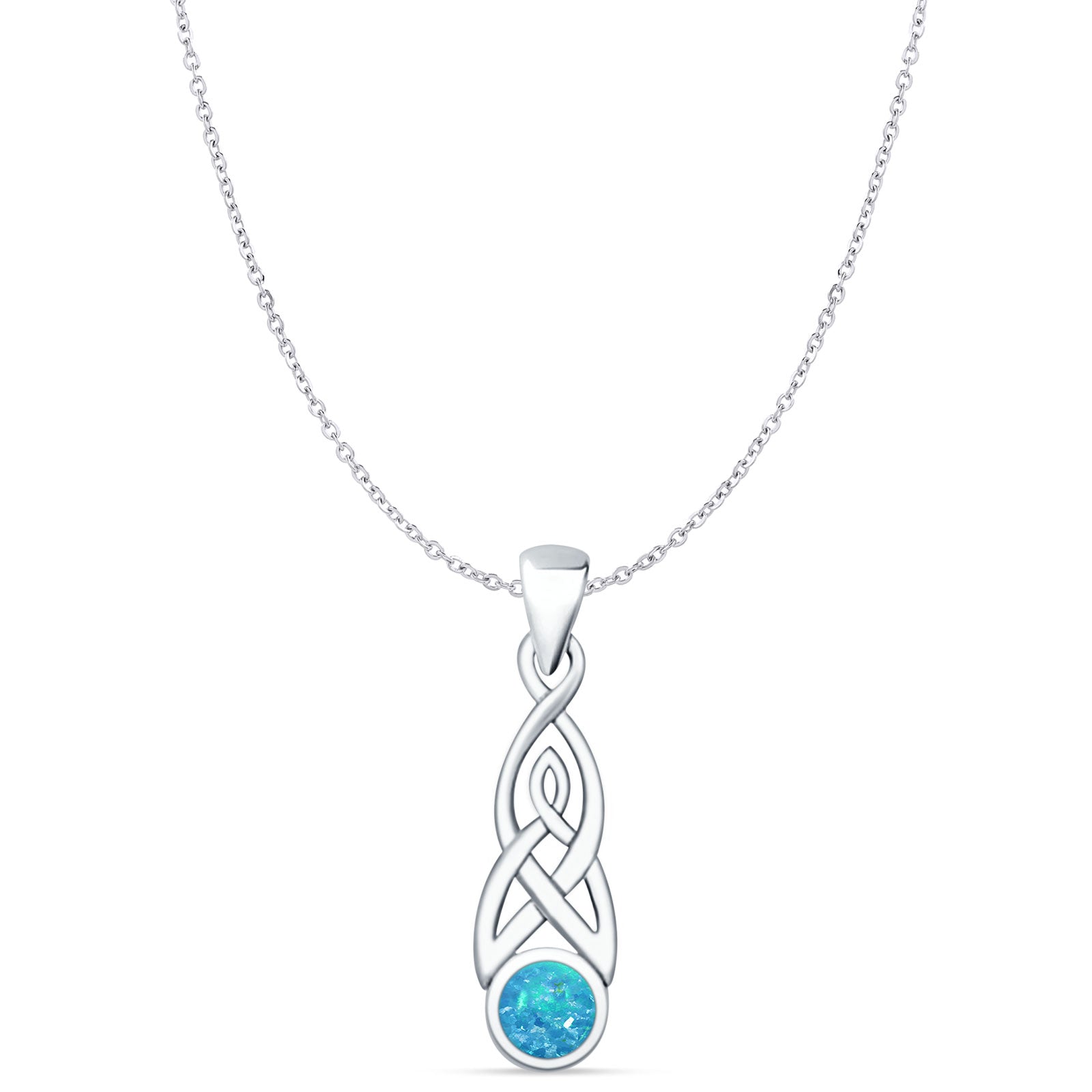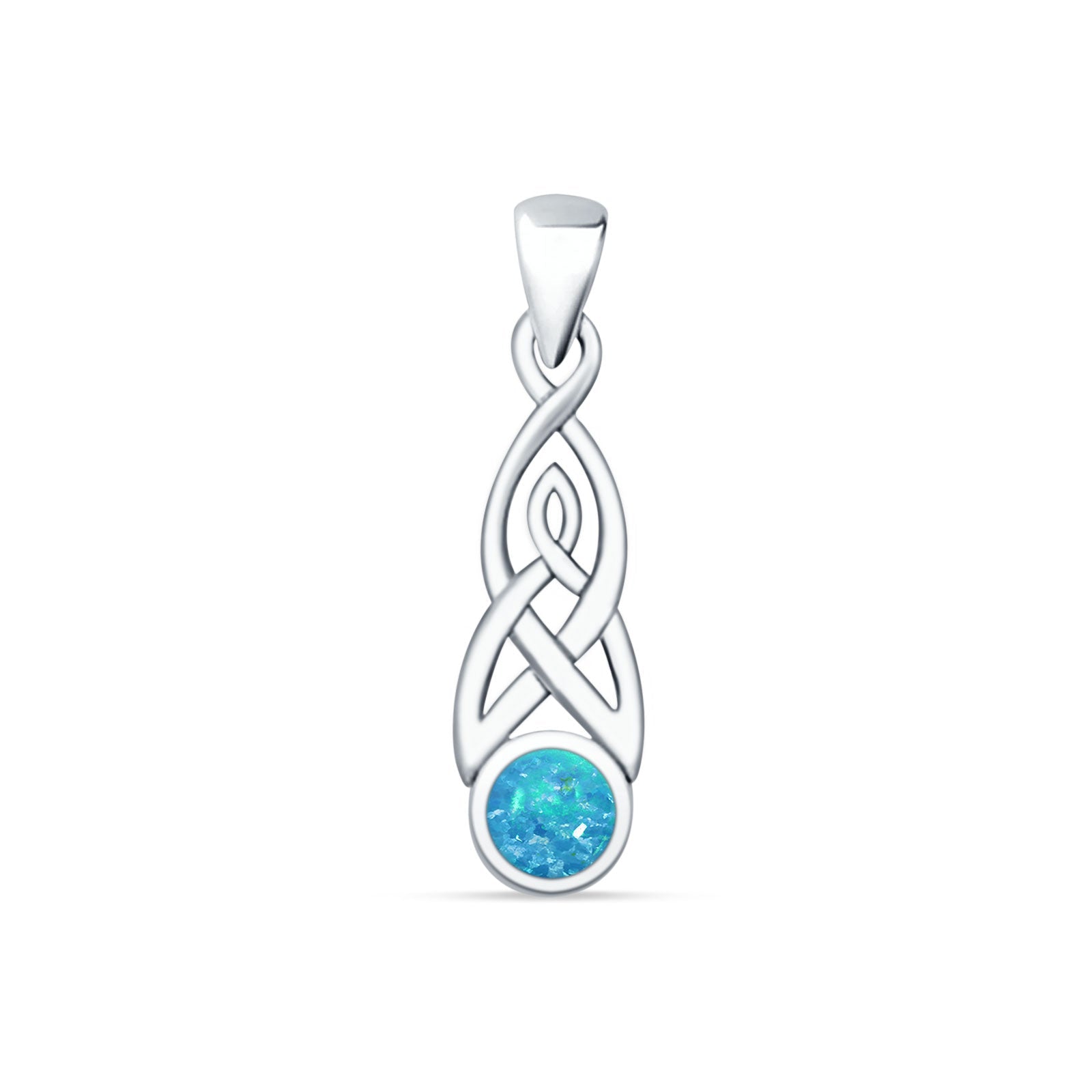 Style: Oxidized Lab Created Blue Opal Celtic Style Pendant Necklace