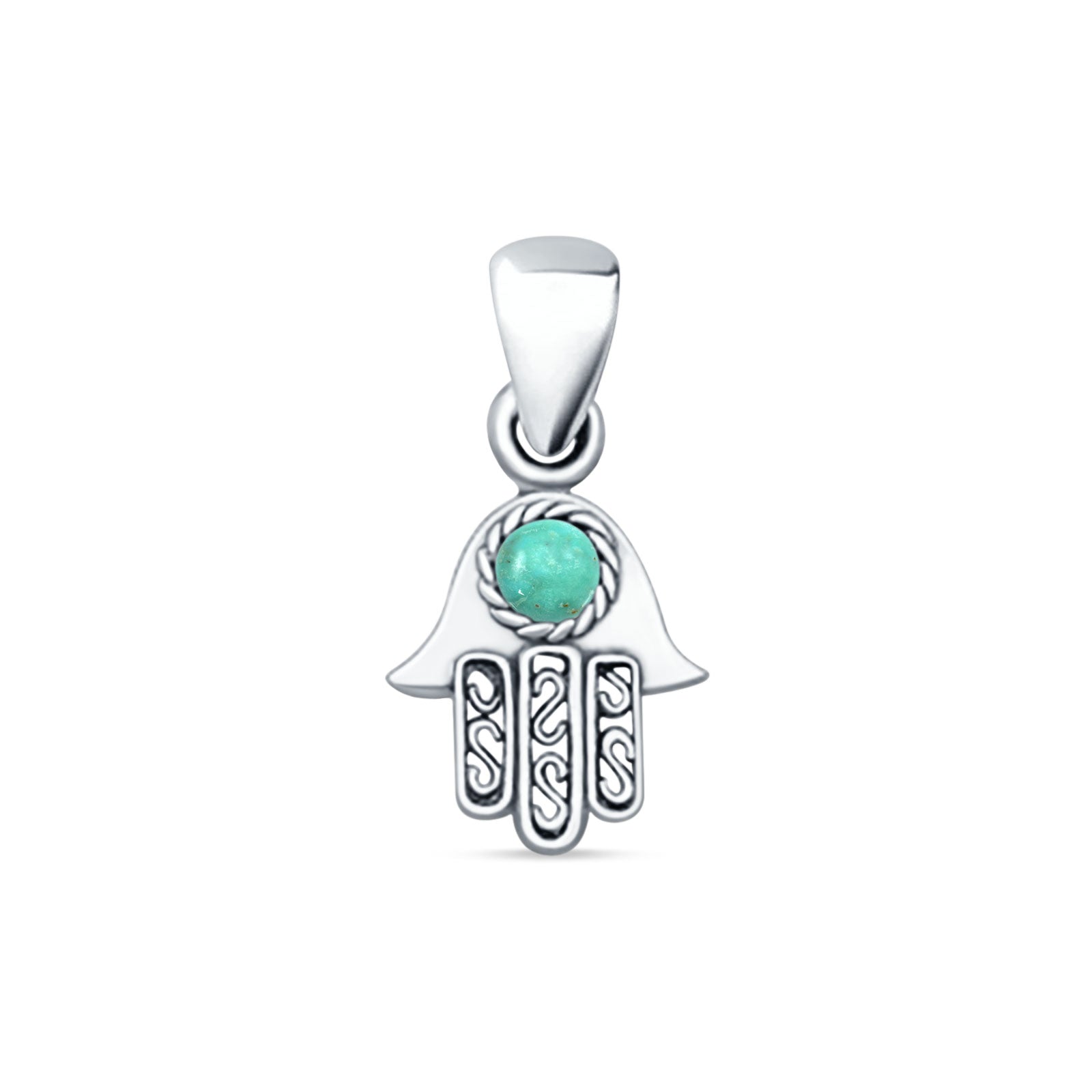 Round Turquoise Hand Of Hamsa Pendant 925 Sterling Silver