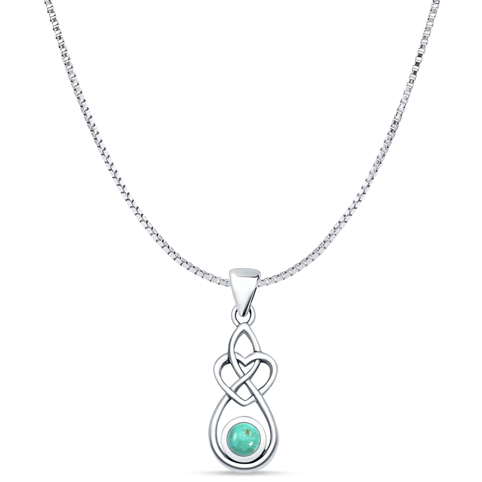 Round Turquoise Twisted Heart Pendant Box Chain Necklace Oxidized 925 Sterling Silver