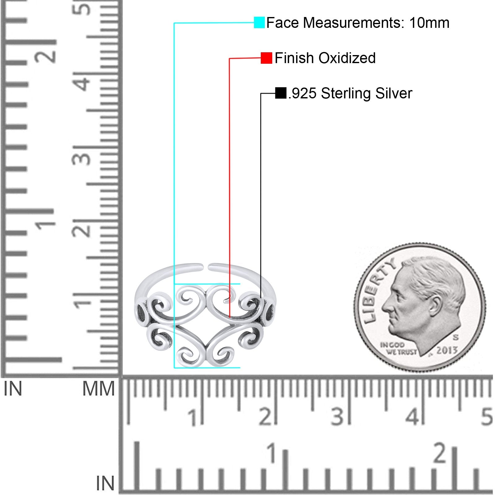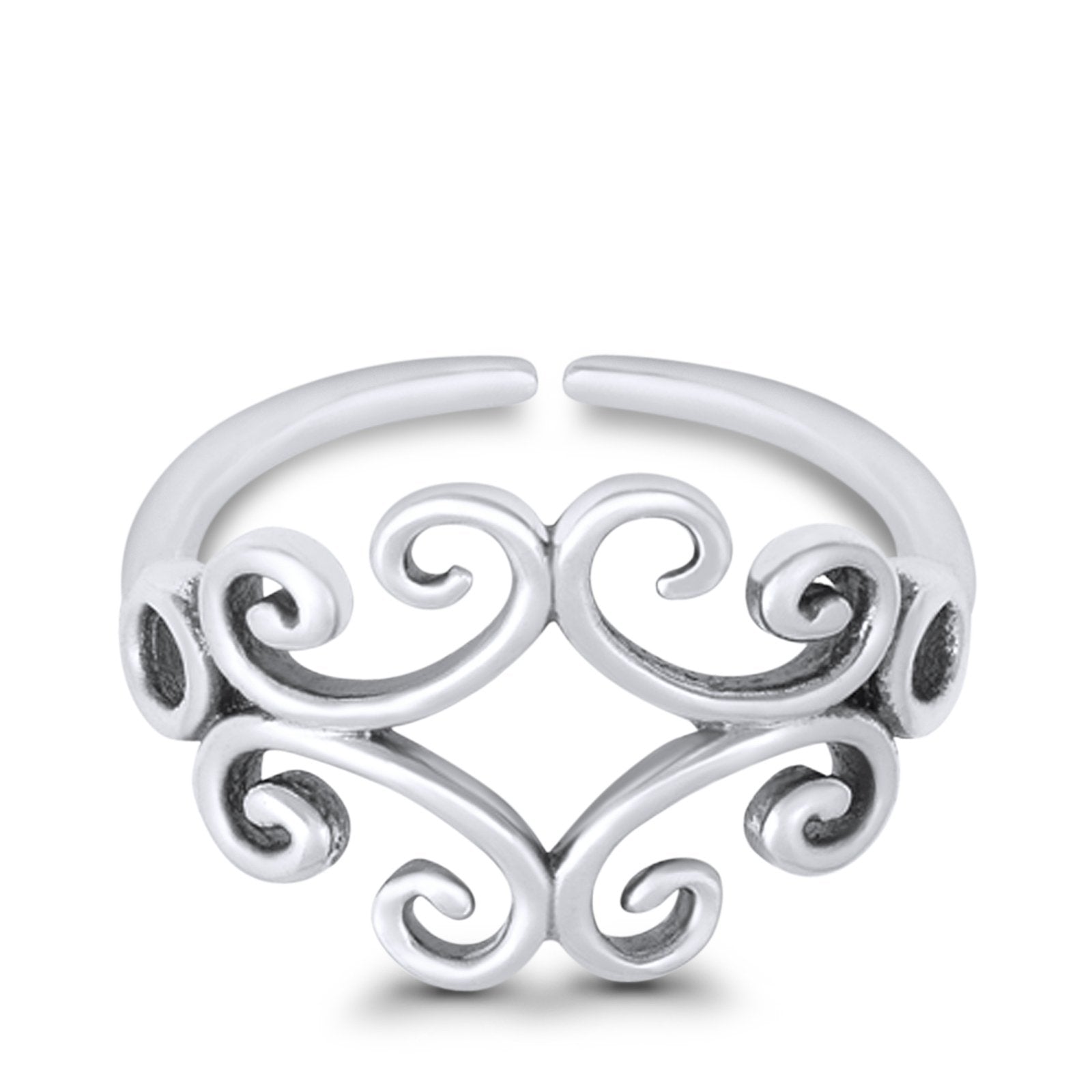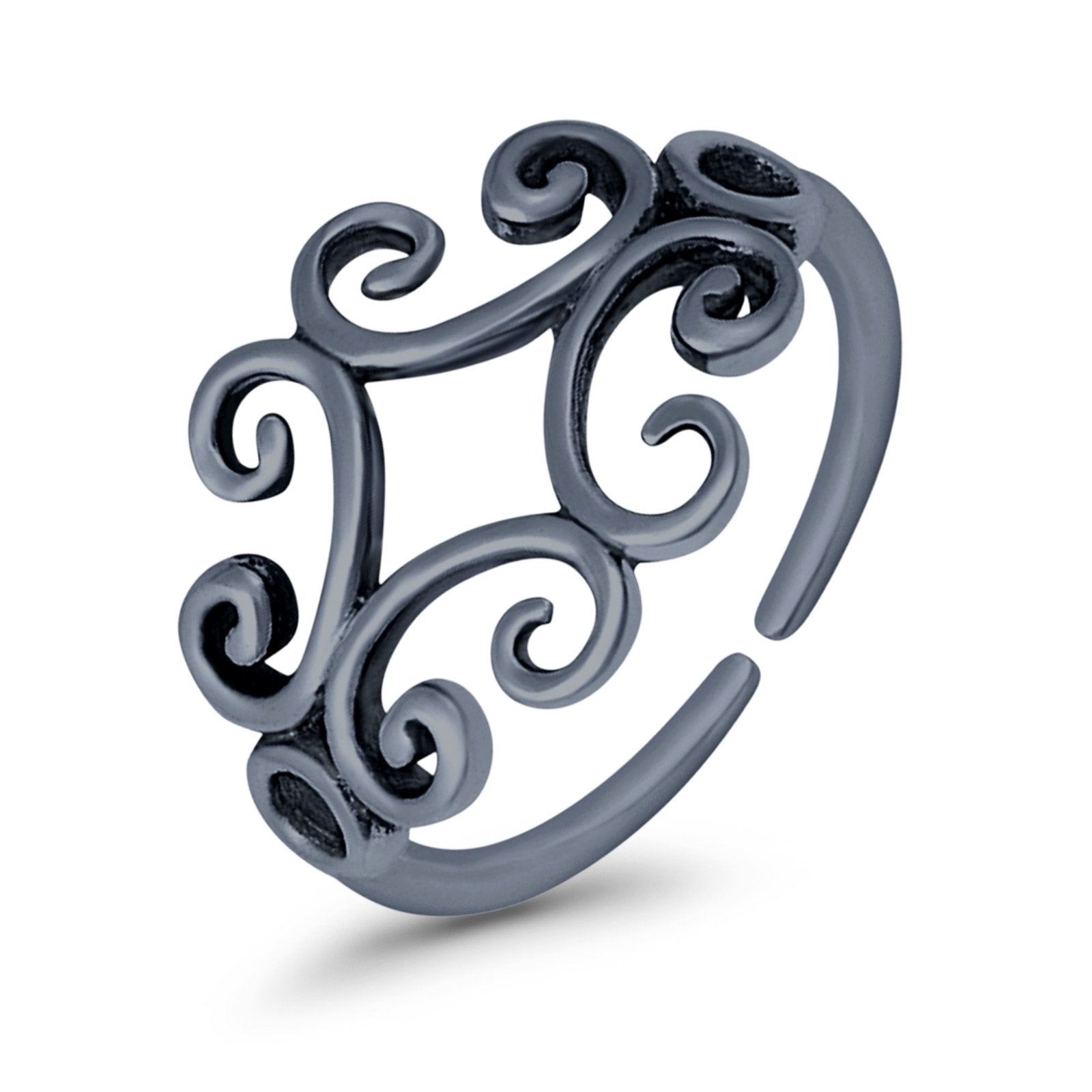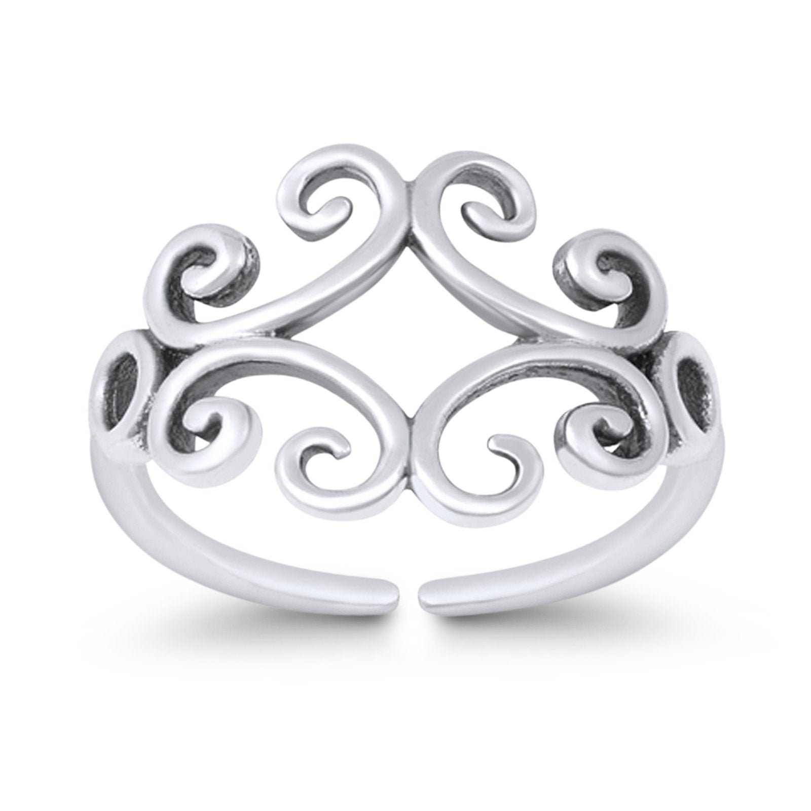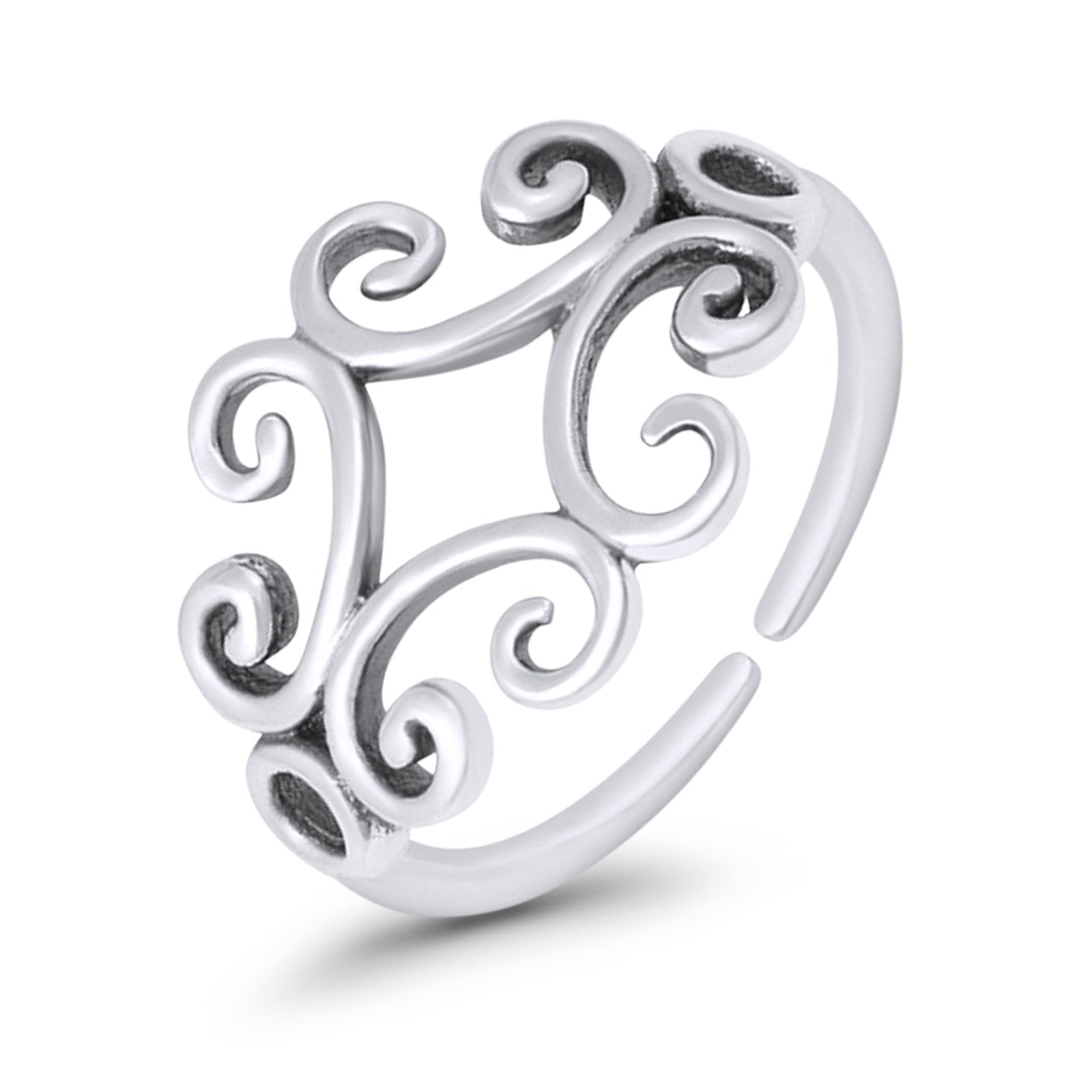 Wave Toe Ring Adjustable Band 925 Sterling Silver (5mm)