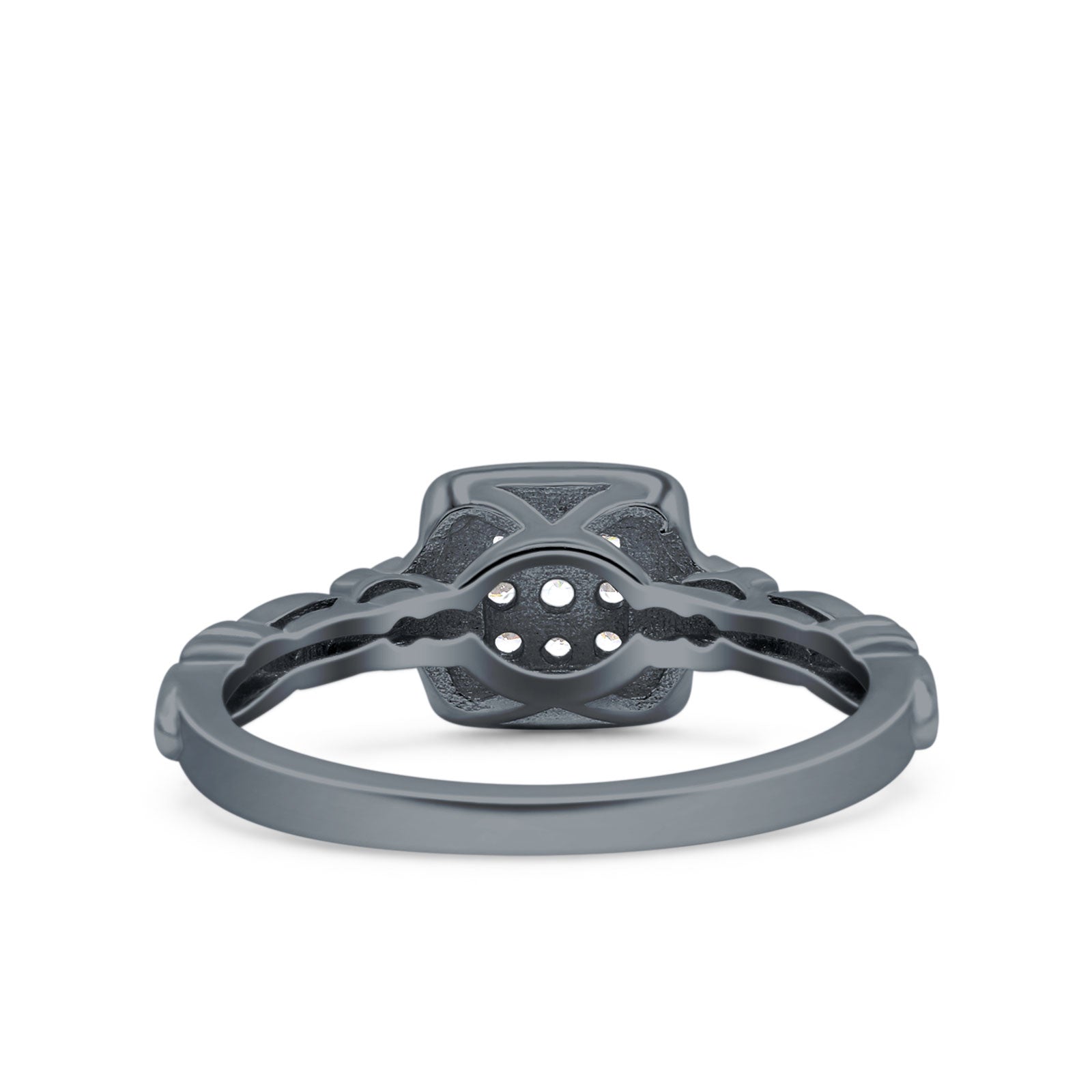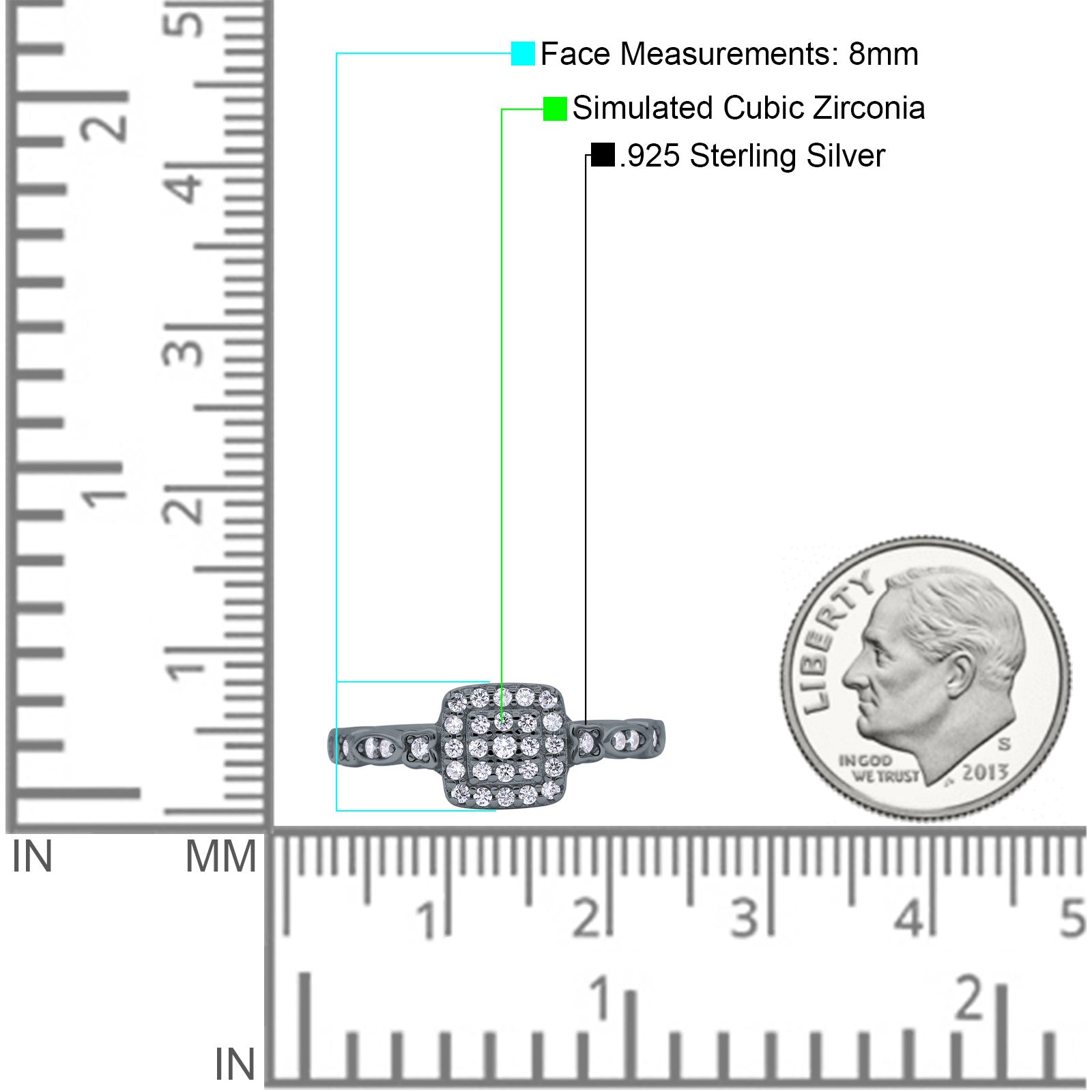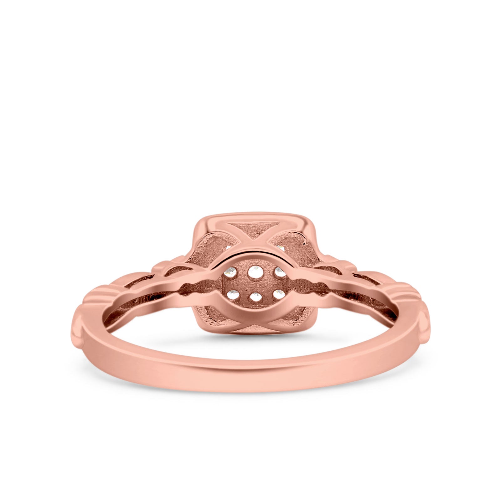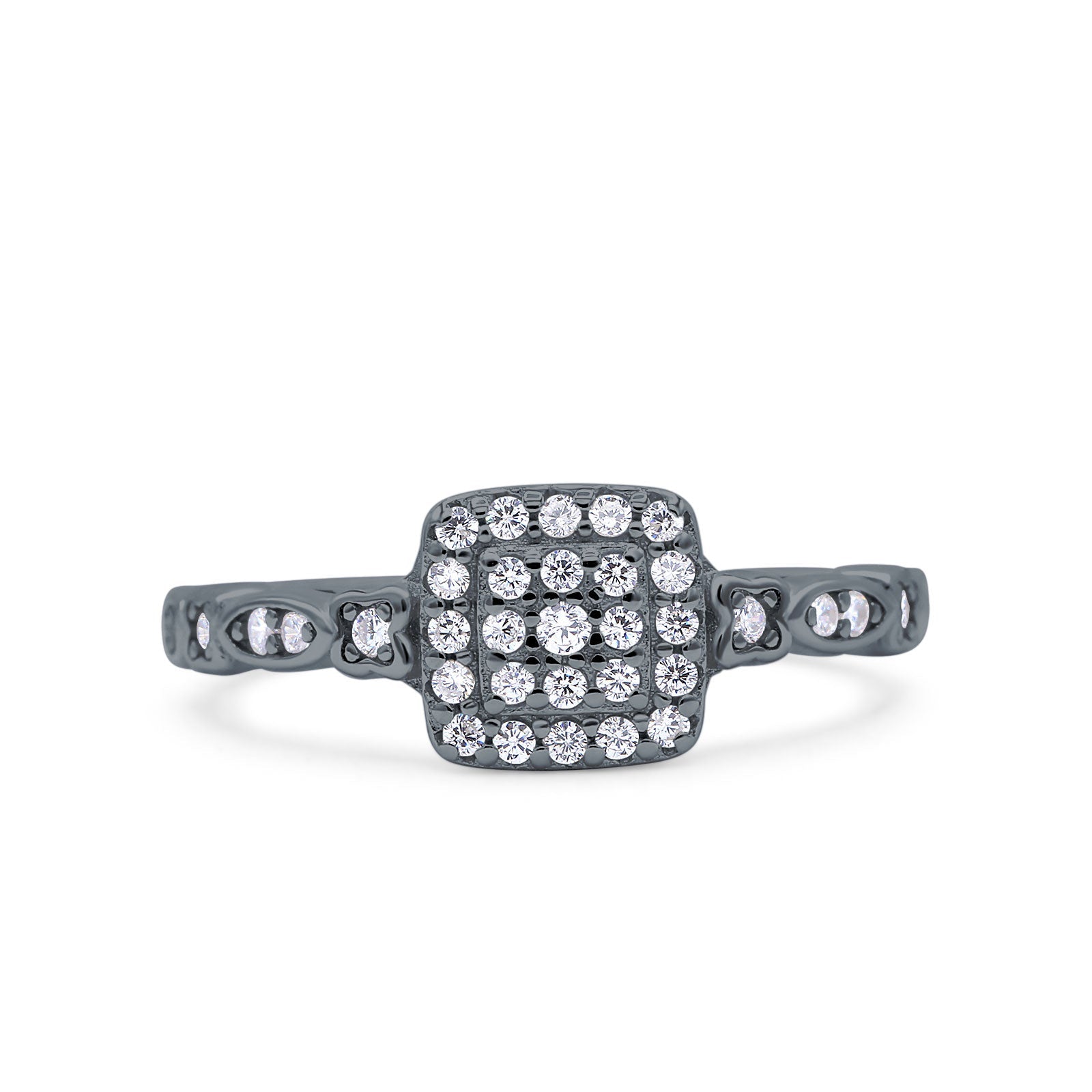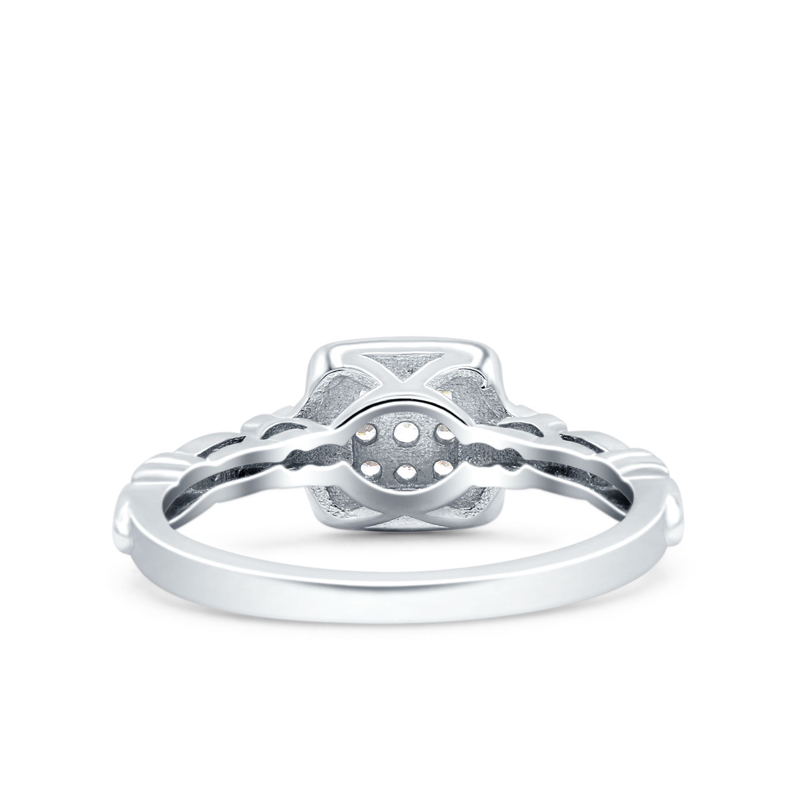 Square Halo Art Deco Wedding Engagement Bridal Ring Round Simulated Cubic Zirconia 925 Sterling Silver