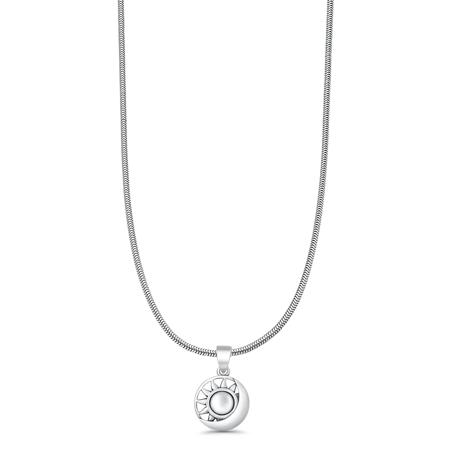 Sun & Moon Pendant Snake Chain Necklace Oxidized 925 Sterling Silver