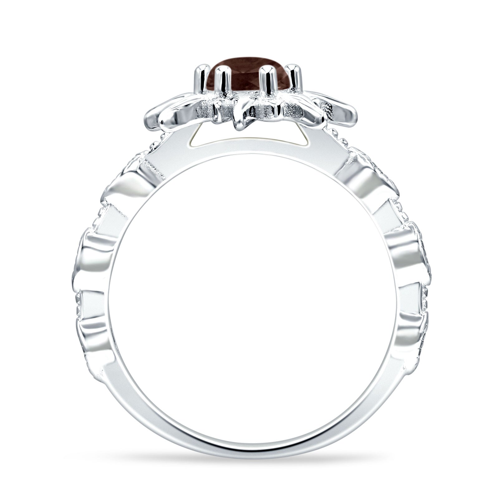 CZ & Blue Sapphire CZ Rose Tone Silver